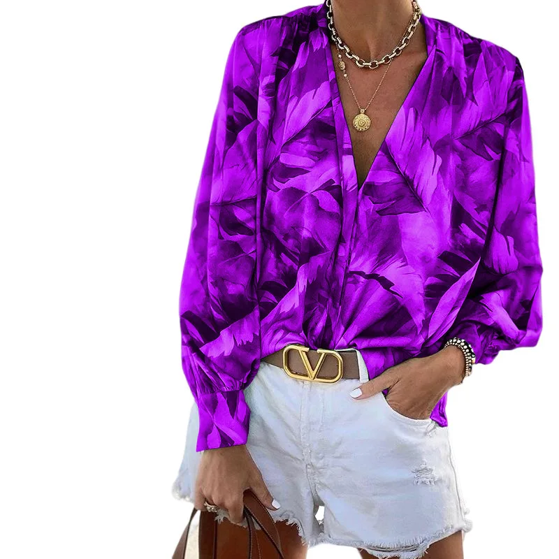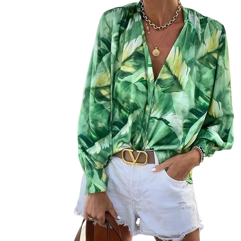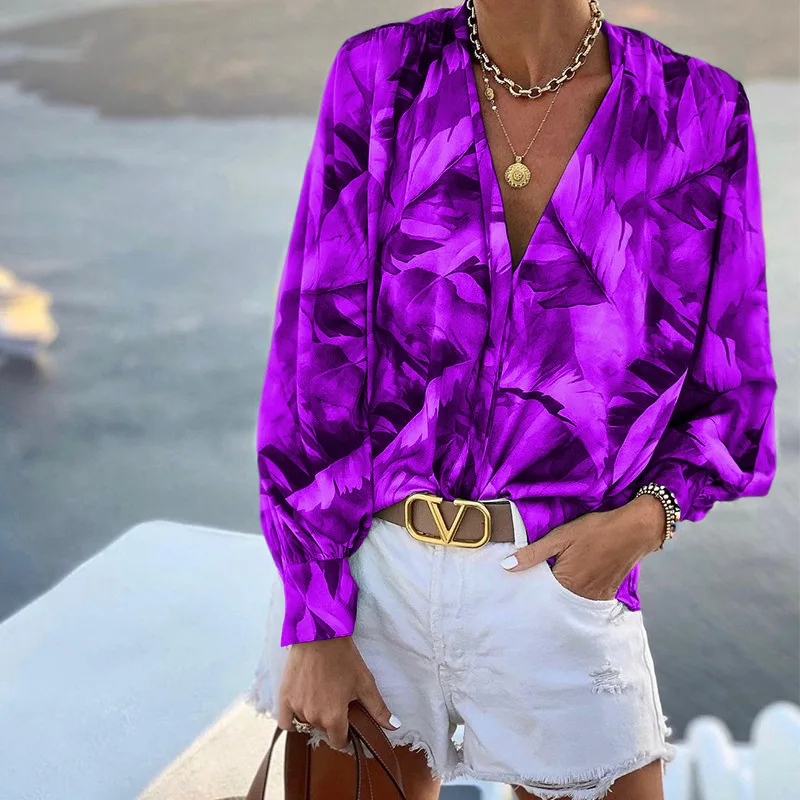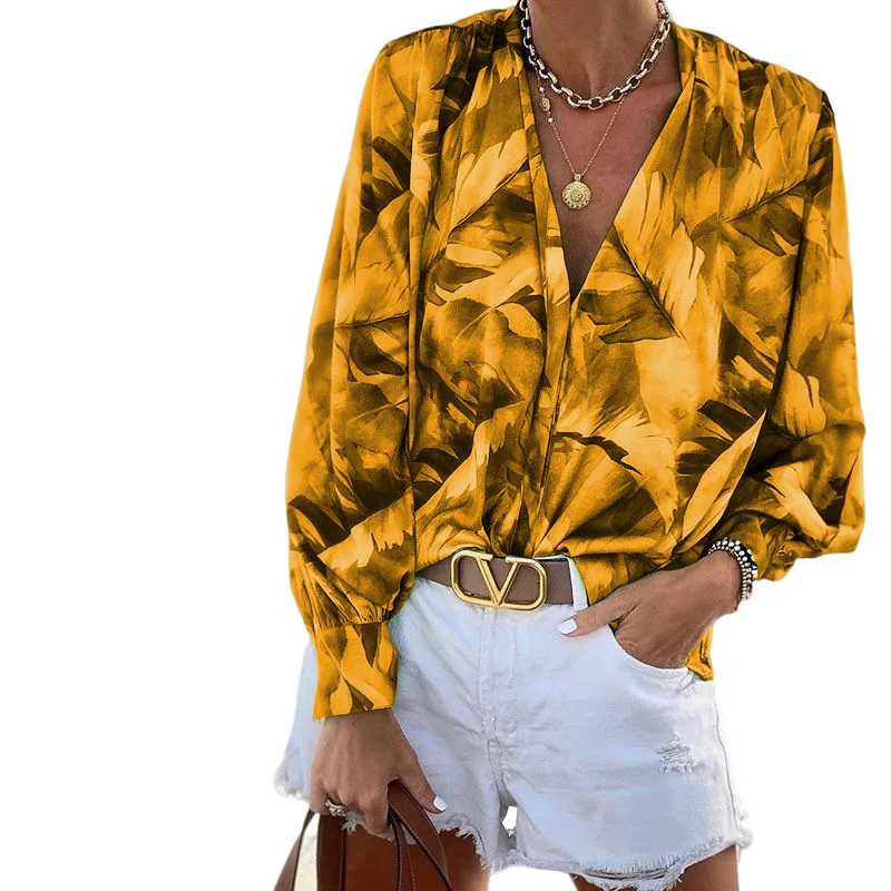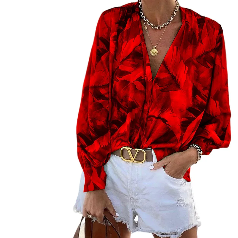 2022 Autumn Winter Women's New Printed V-neck Long-sleeved Bohemian Long-sleeved Top women tops fashion loose pullover blouse