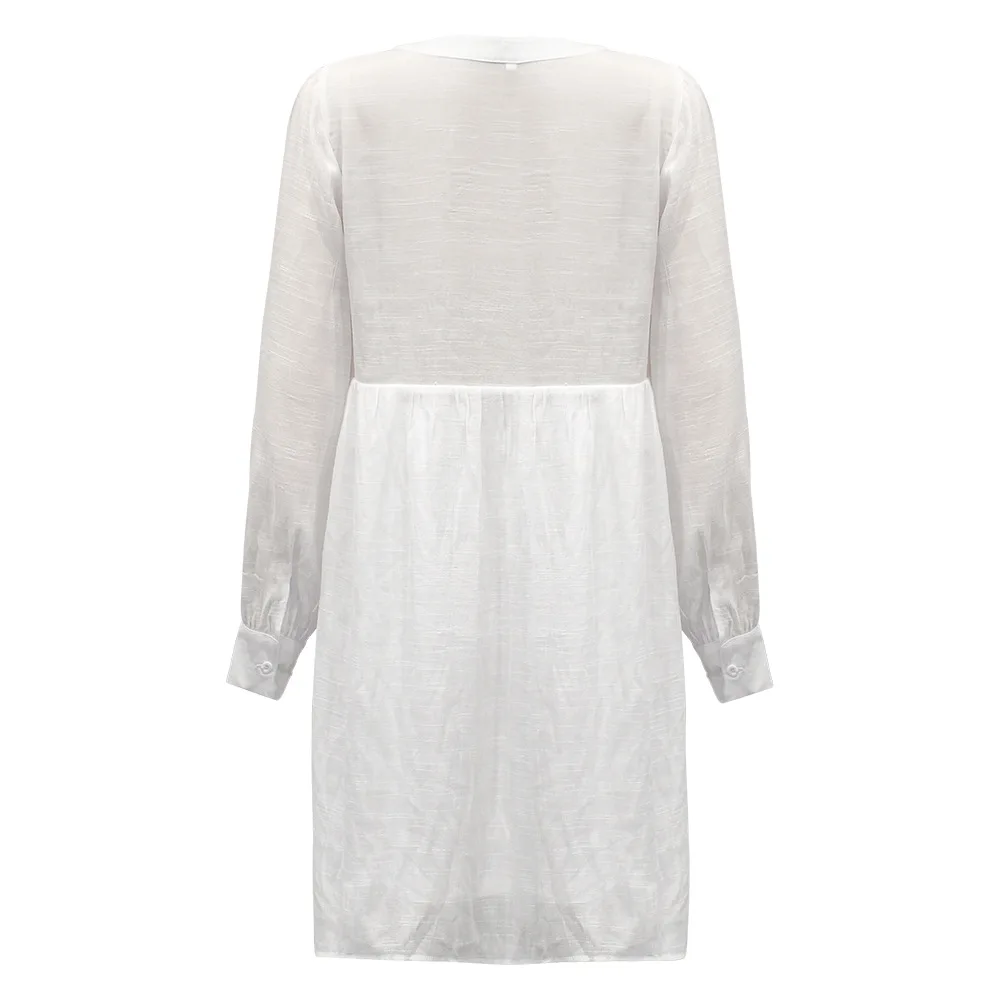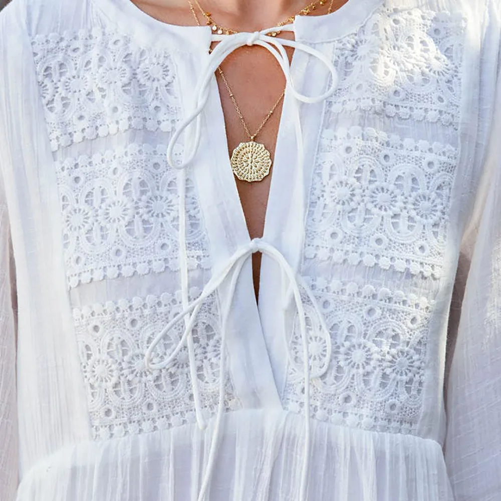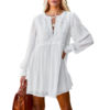 Women Spring Casual Dress, Lace Patchwork Tied V Neck Long Lantern Sleeve Loose Dresses for Ladies