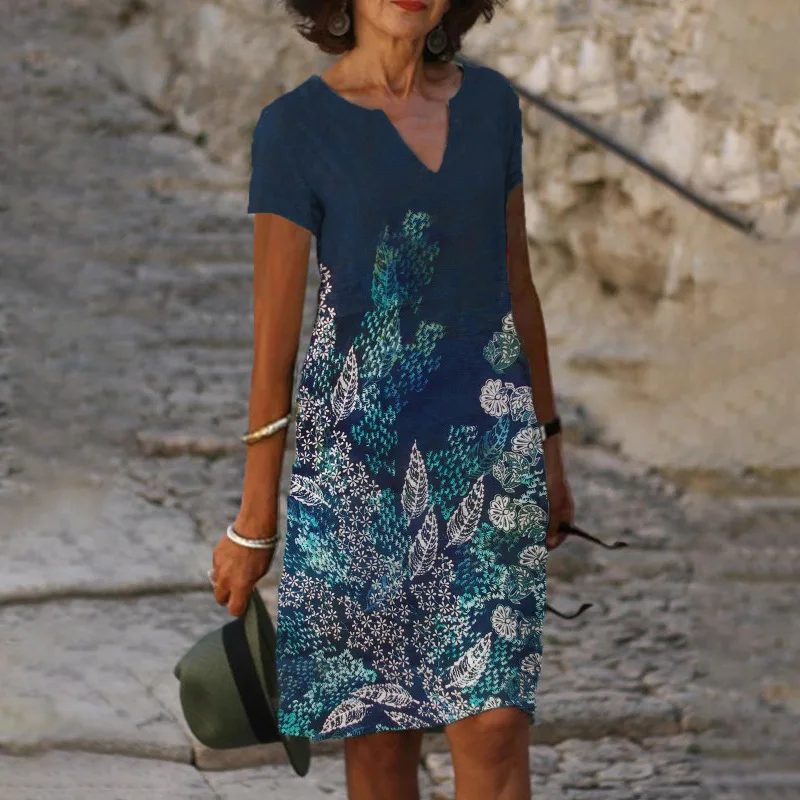 2022 Casual Women DressesPrintingV-Neck Knee-Length Short Sleeve Summer Vintage Dress A-LINE Elegent Vestidos