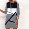 2022 Elegant Round Neck Geometric Printing Long Sleeve A-line Skirt Autumn Winter New Fashion Patchwork Slim Mini Dress Women