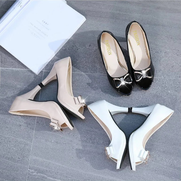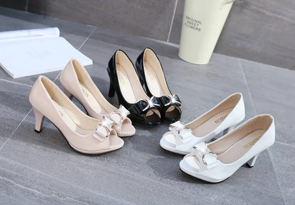 2022 Female Stiletto High Heel Shoes Woman Pumps Sexy Open Toe Fish Mouth Shoes Woman Bowknot Party Sandals Ladies Summer Shoes