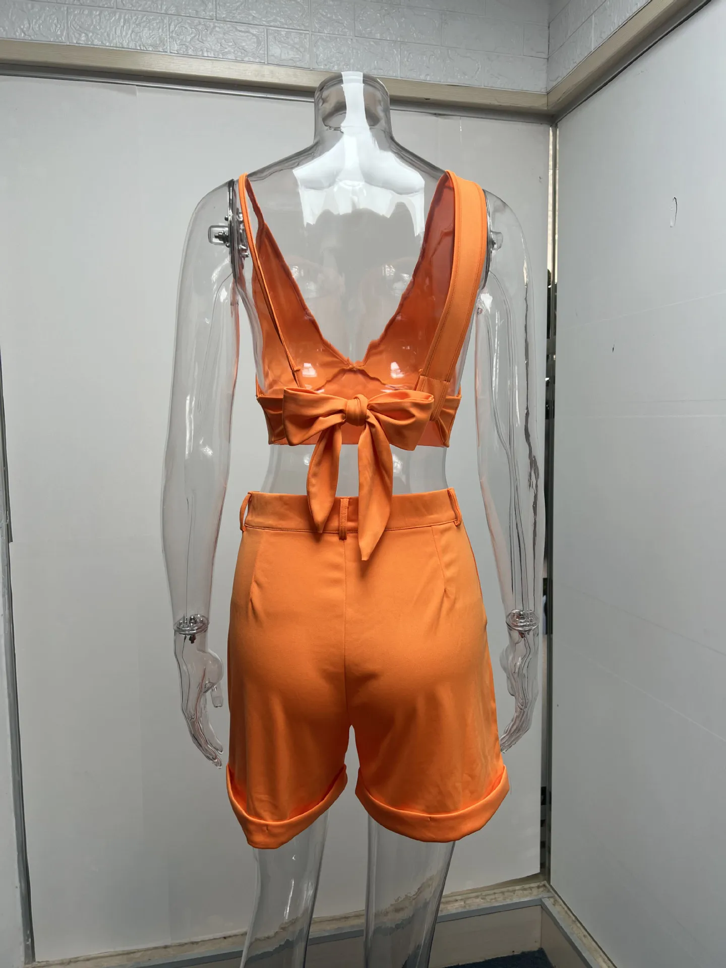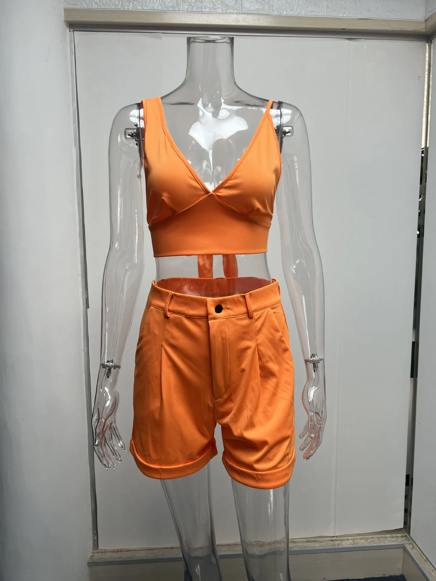 2022 Ladies Sexy Solid Color Two Piece Tube Top High Waist Shorts Women Summer Fashion 2 Pcs Set High Quanlity women's Clothing
