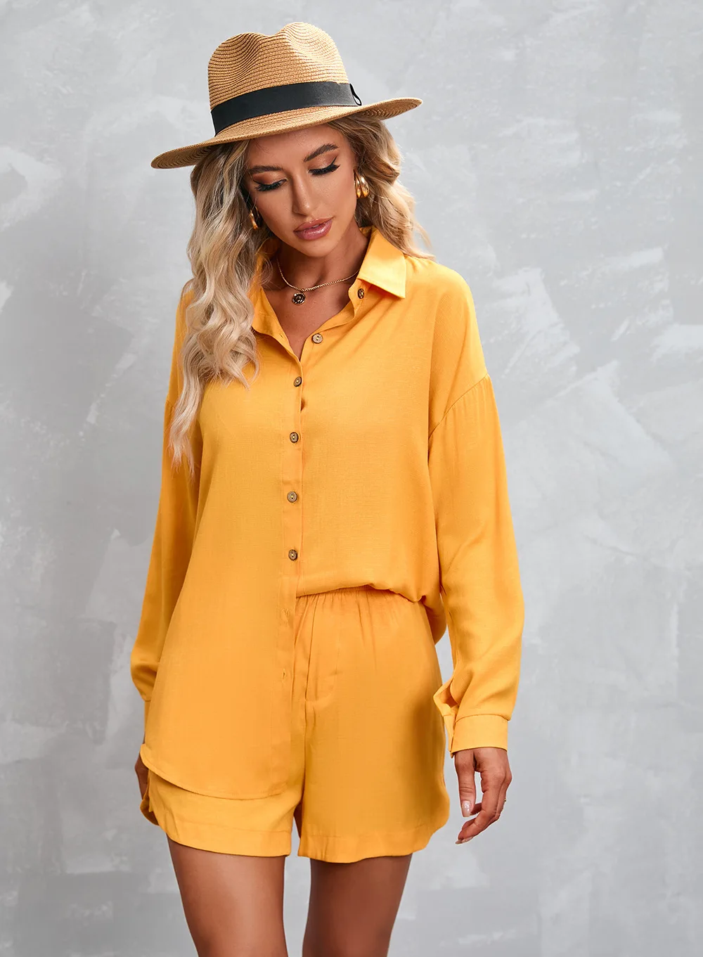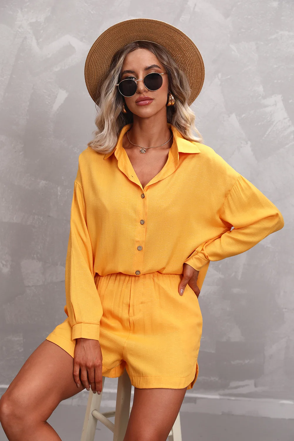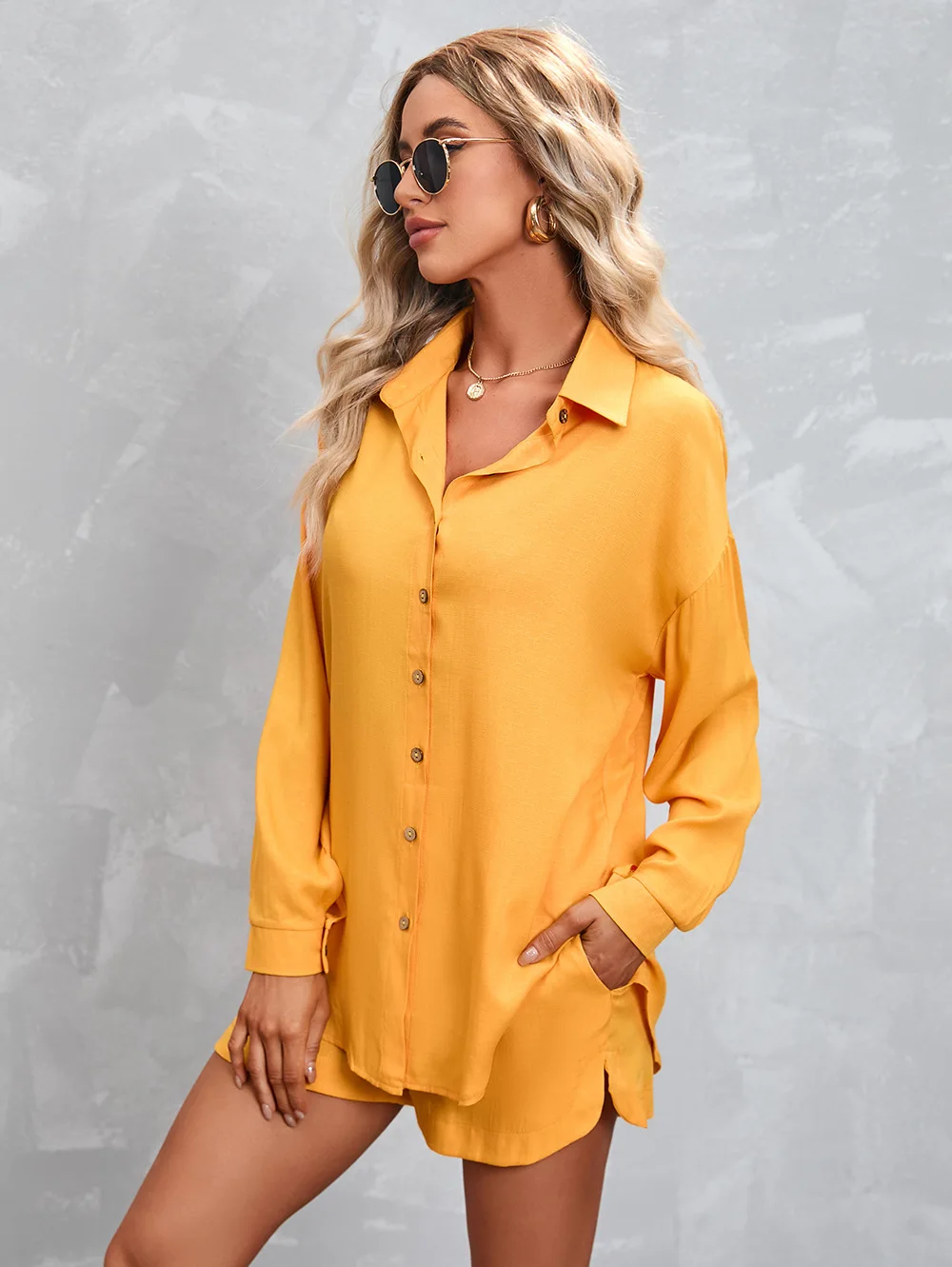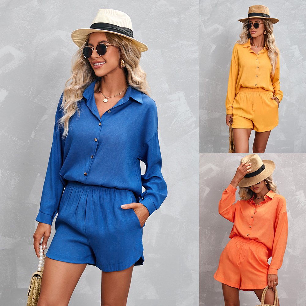 2022 Leisure Suit Women Long Sleeve Shirt Shorts 2-piece Fashion Street Women's Two Piece Set Conjunto Feminino Short E Blusa