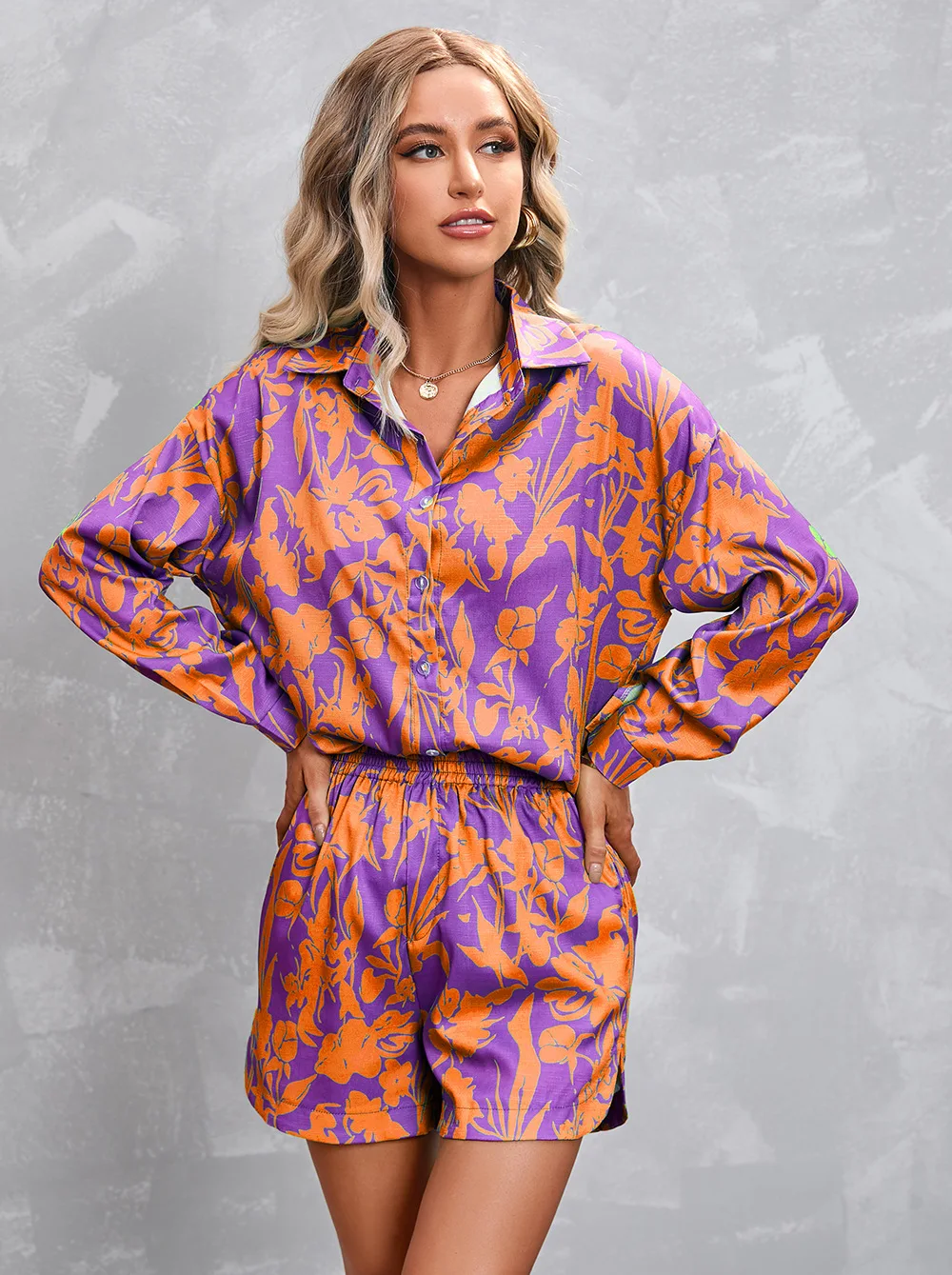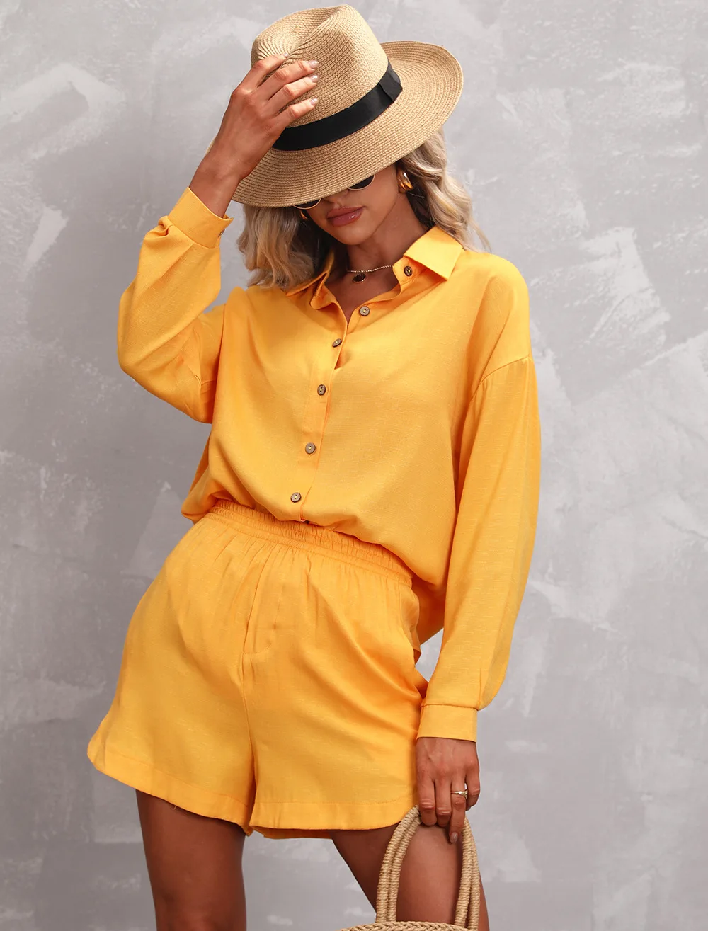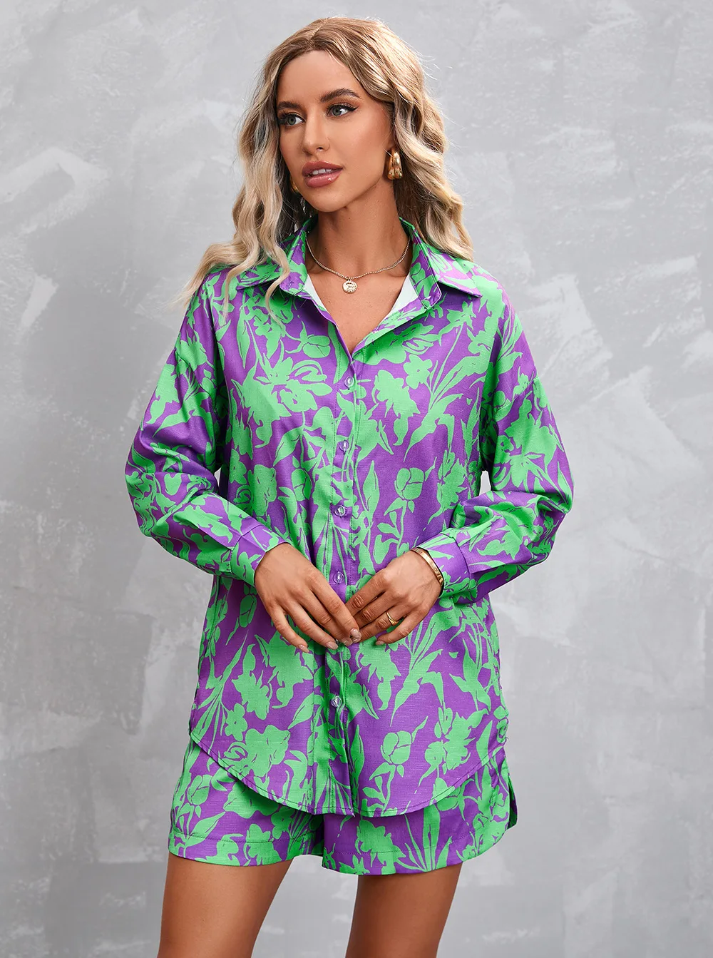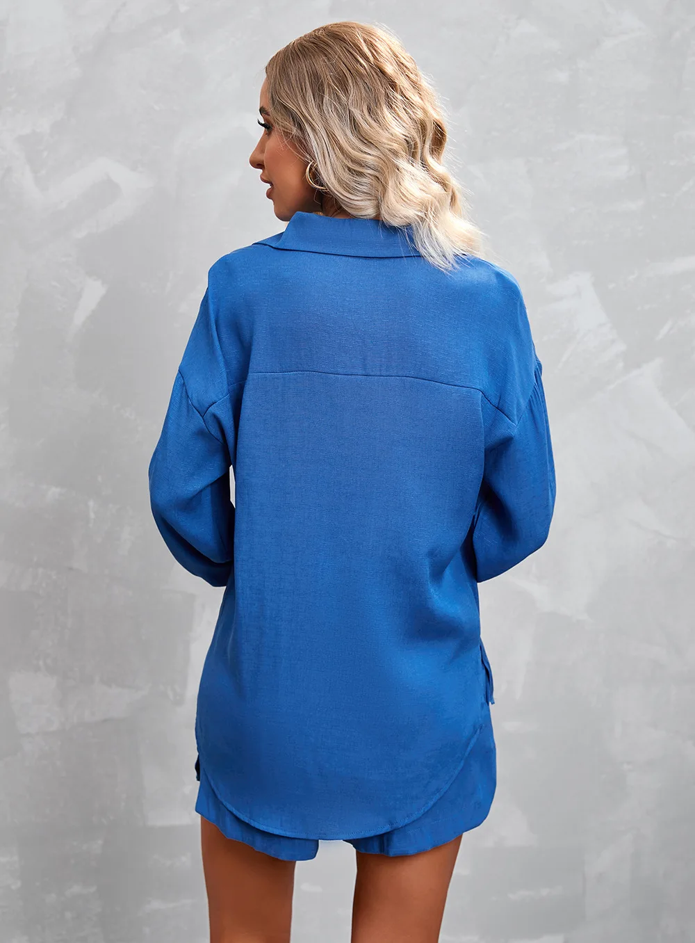 2022 Leisure Suit Women Long Sleeve Shirt Shorts 2-piece Fashion Street Women's Two Piece Set Conjunto Feminino Short E Blusa