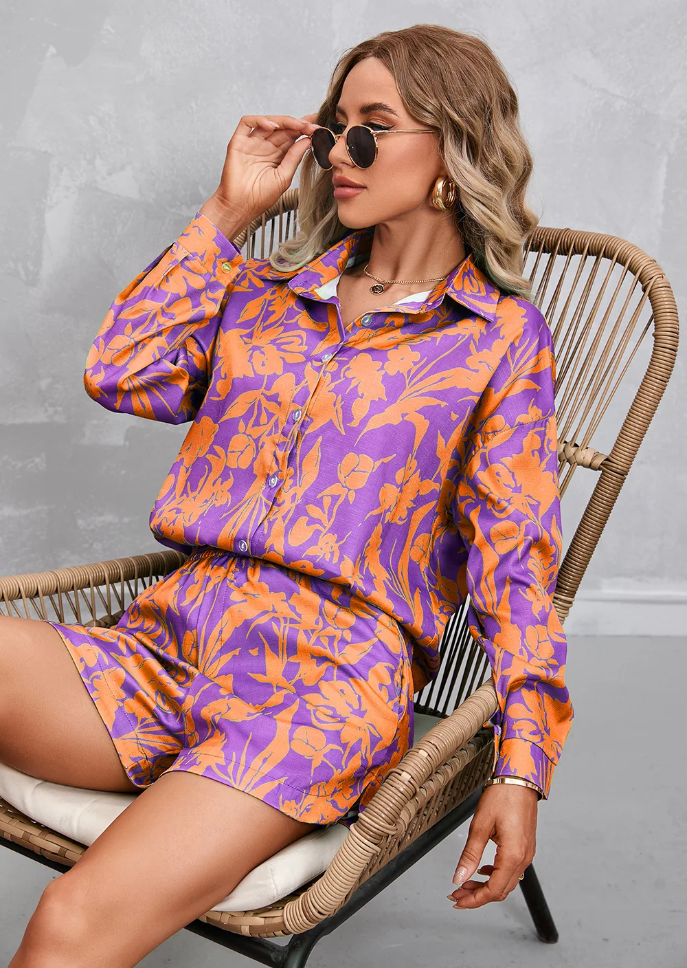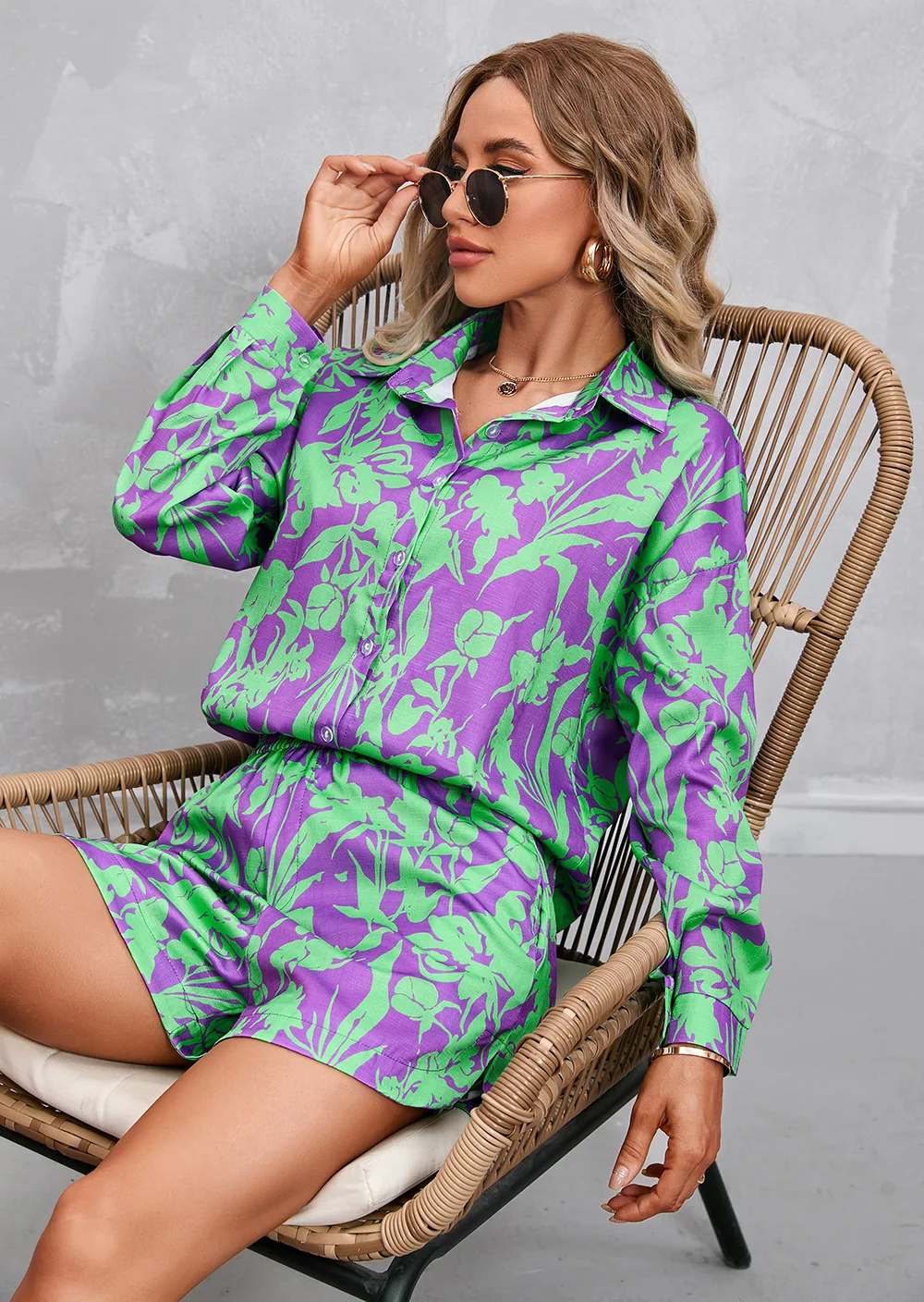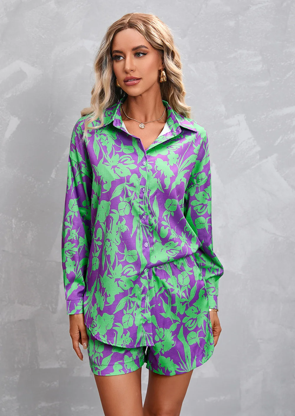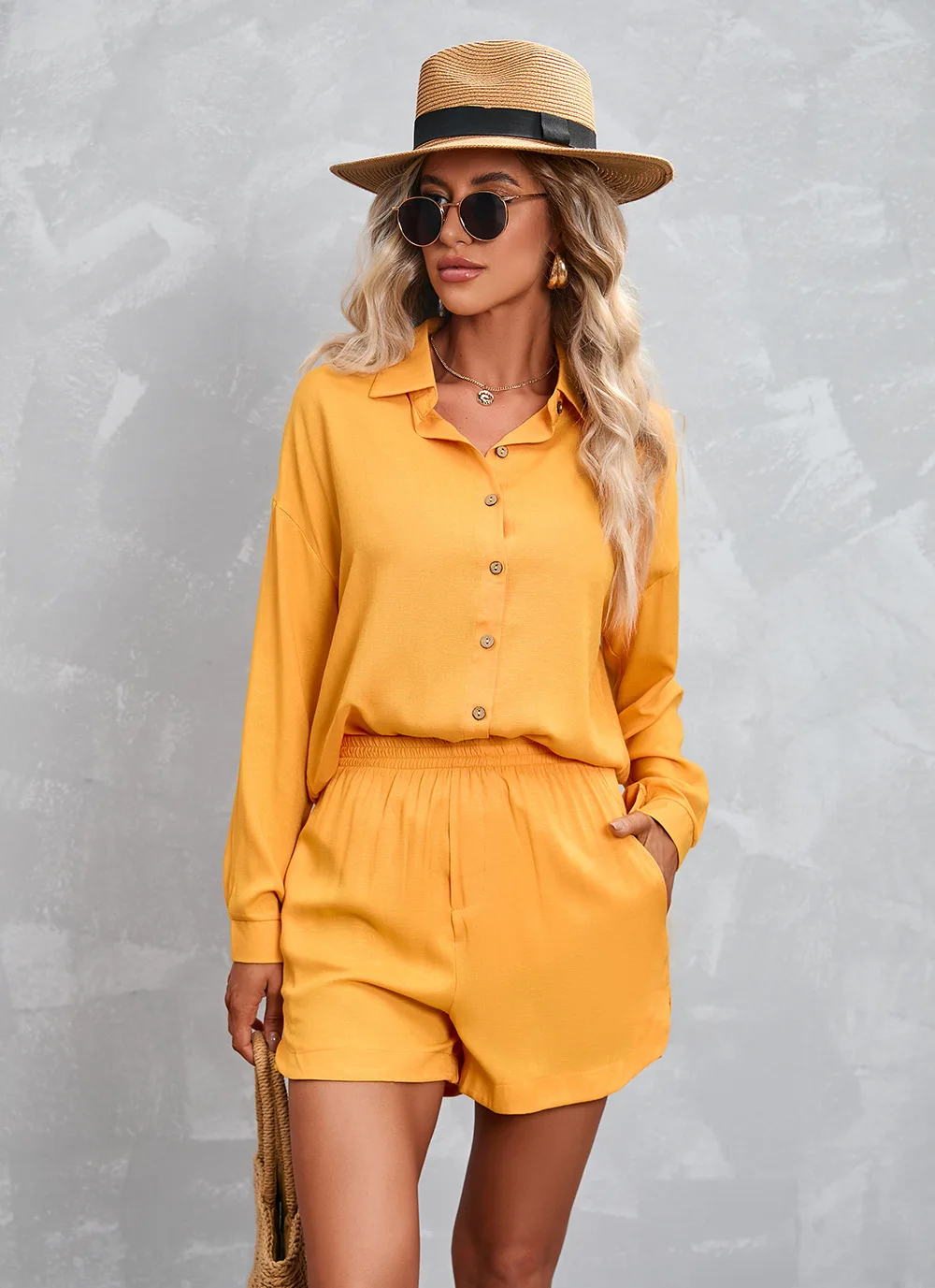 2022 Leisure Suit Women Long Sleeve Shirt Shorts 2-piece Fashion Street Women's Two Piece Set Conjunto Feminino Short E Blusa