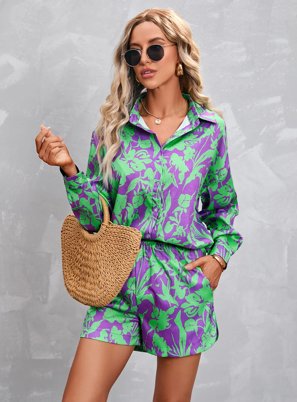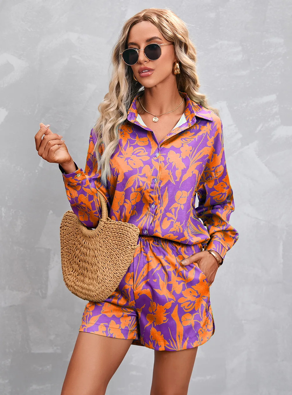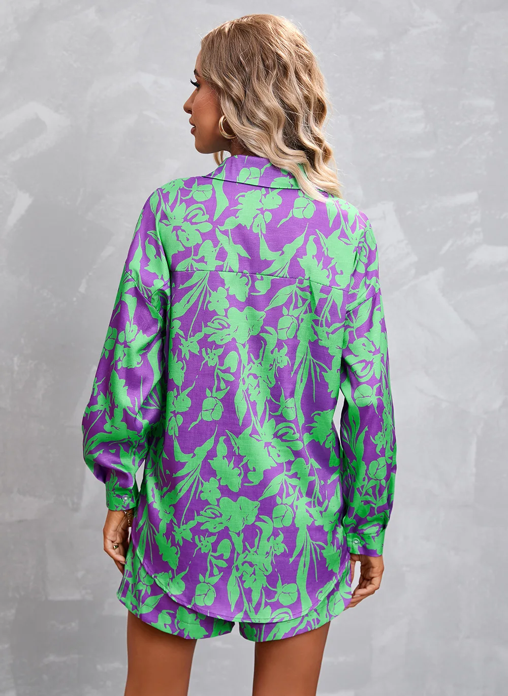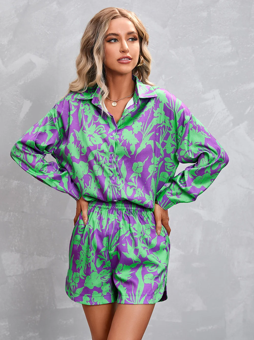 2022 Leisure Suit Women Long Sleeve Shirt Shorts 2-piece Fashion Street Women's Two Piece Set Conjunto Feminino Short E Blusa