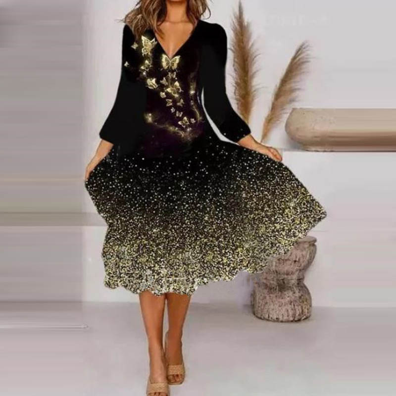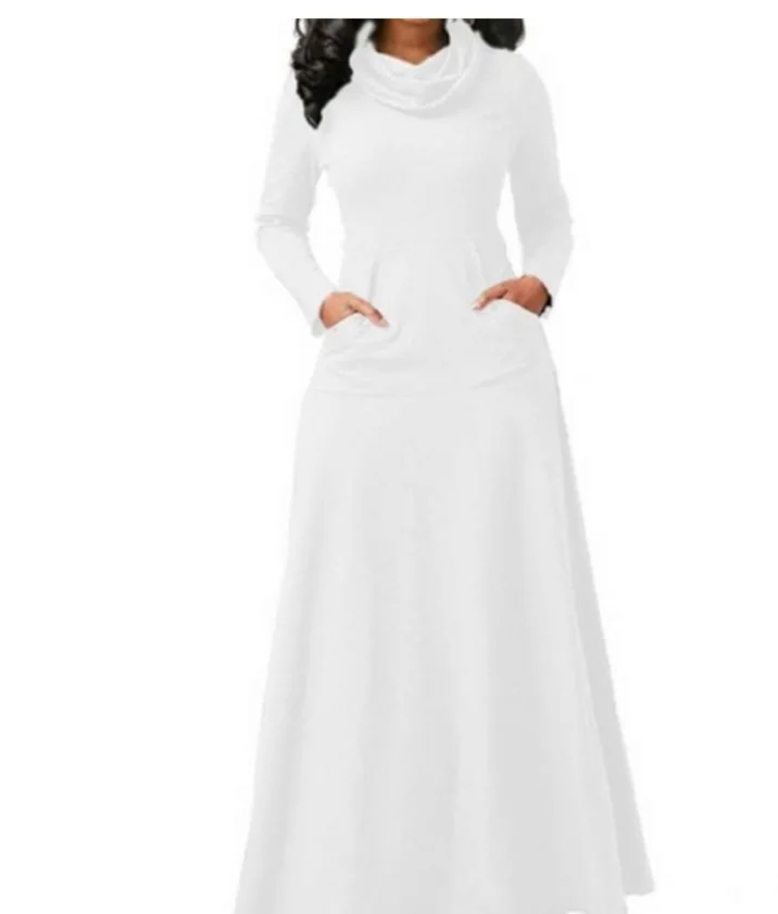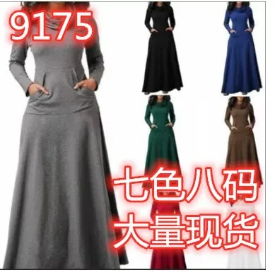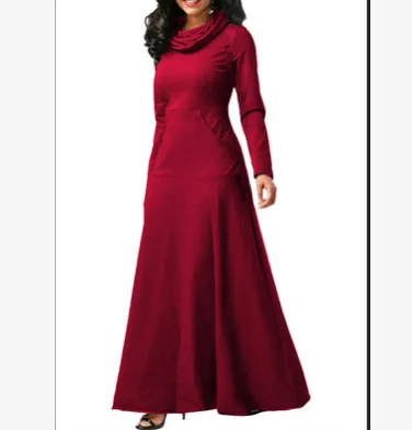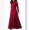 2022 New Autumn Winter Pocket Splice Pocket Neck Big Swing Long Dress Female Casual Pure Color High Waist Maxi Dress Robe Femme