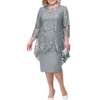 2022 New O-neck High-Waist Plus Size Midi Dress M-5XL Elegant Embroidery Lace 3/4 Sleeve Lady Evening Dress Female Clothing