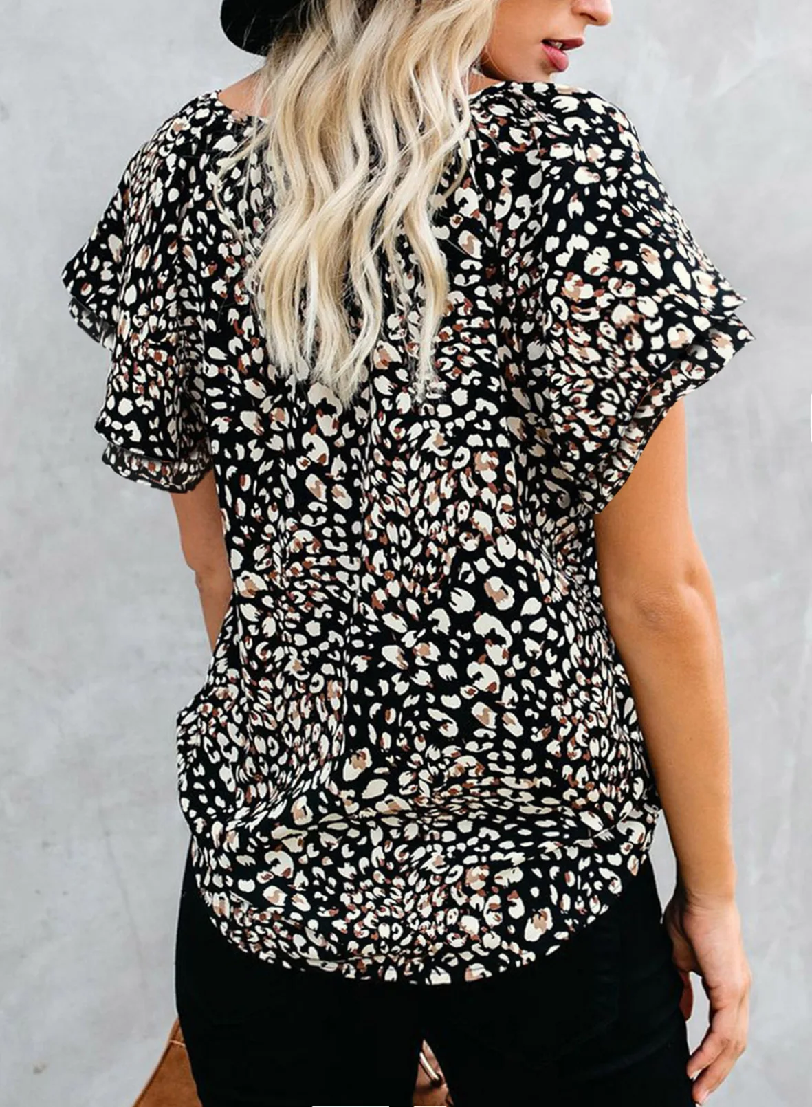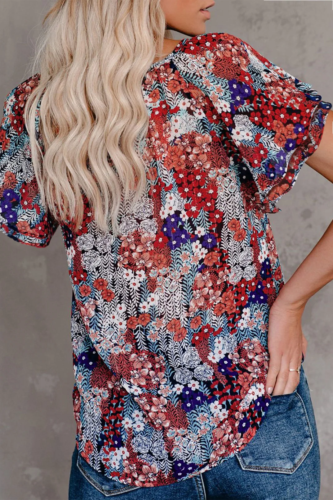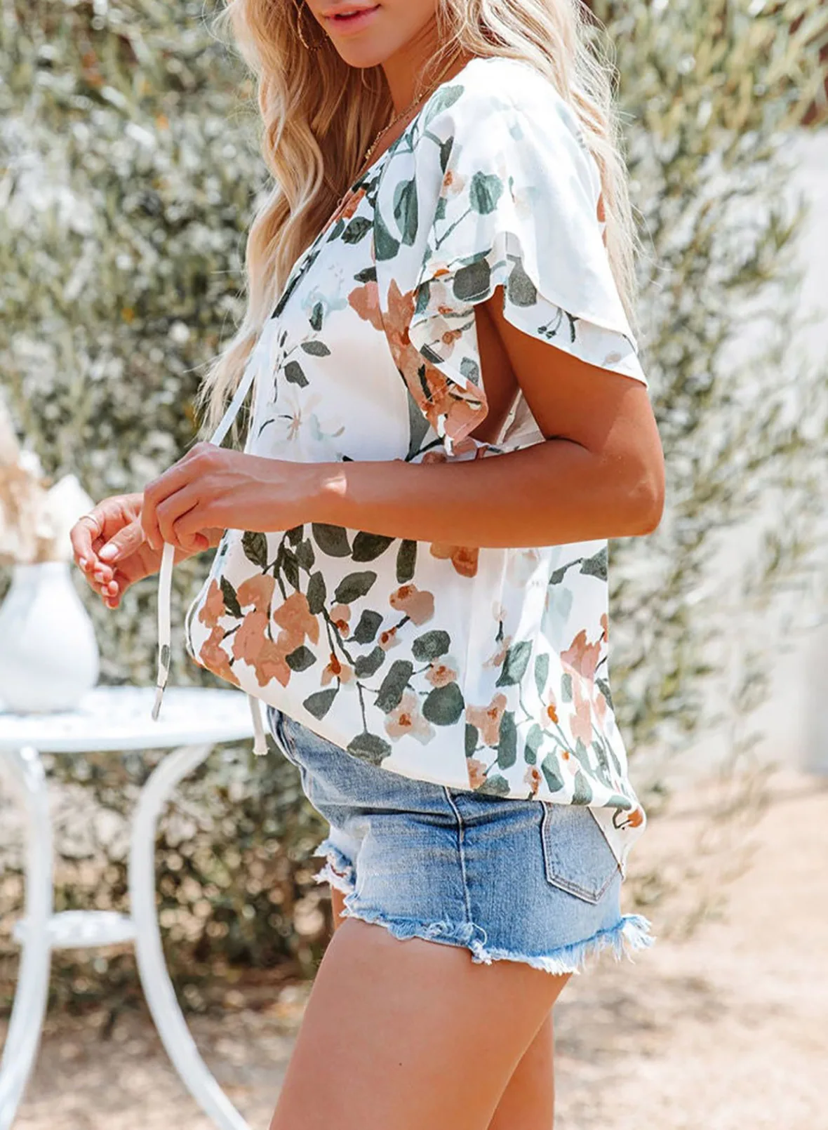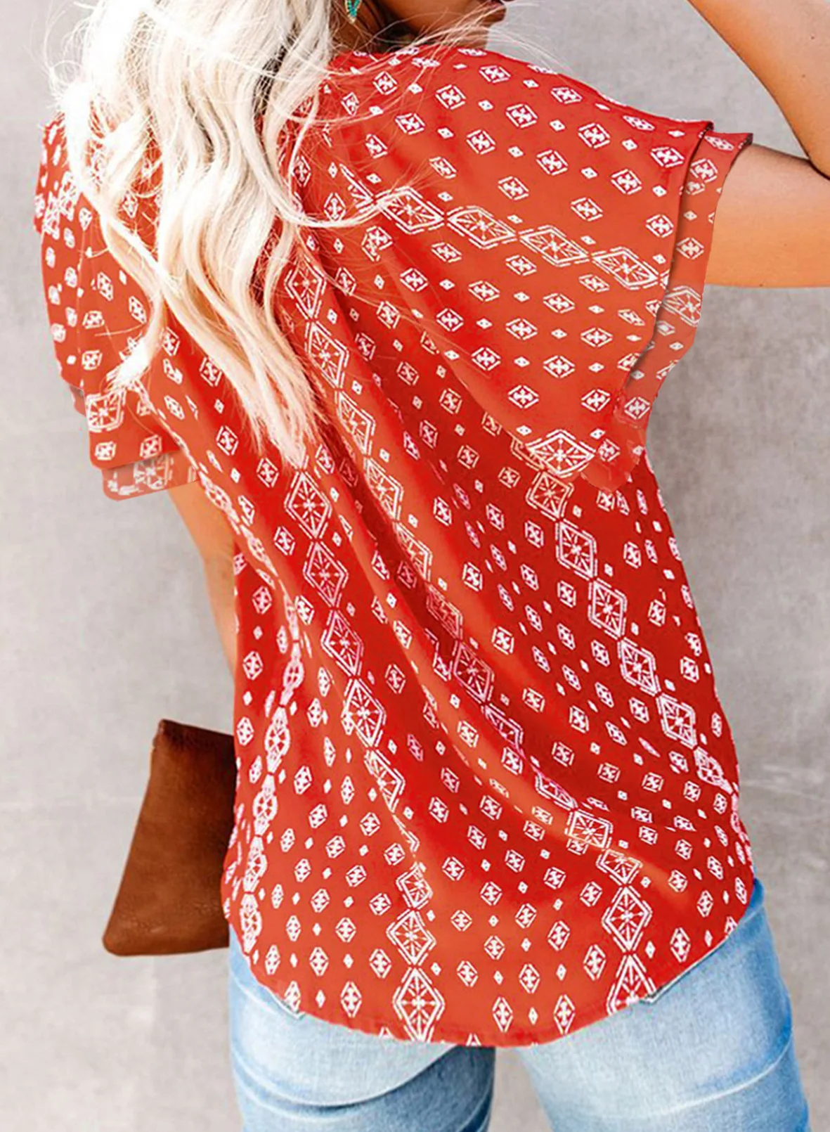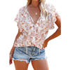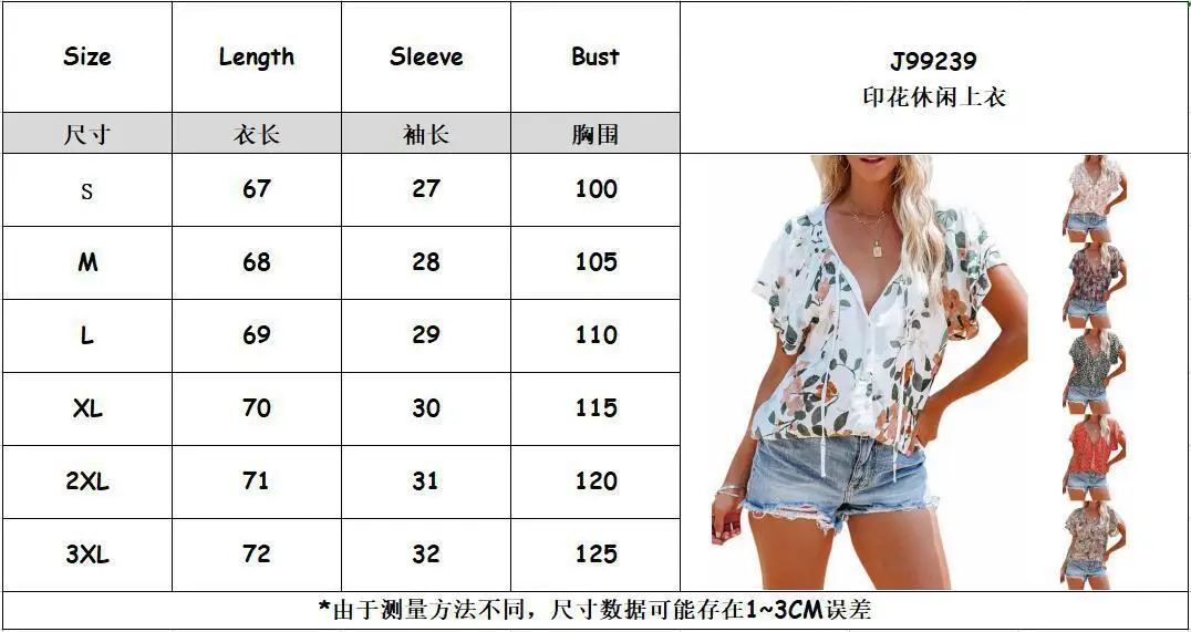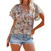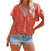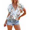 2022 New Printed Top Women's Summer Lace-Up V-neck Short-sleeved Loose Casual Single-breasted Shirt Women Blouse Femme Blusas