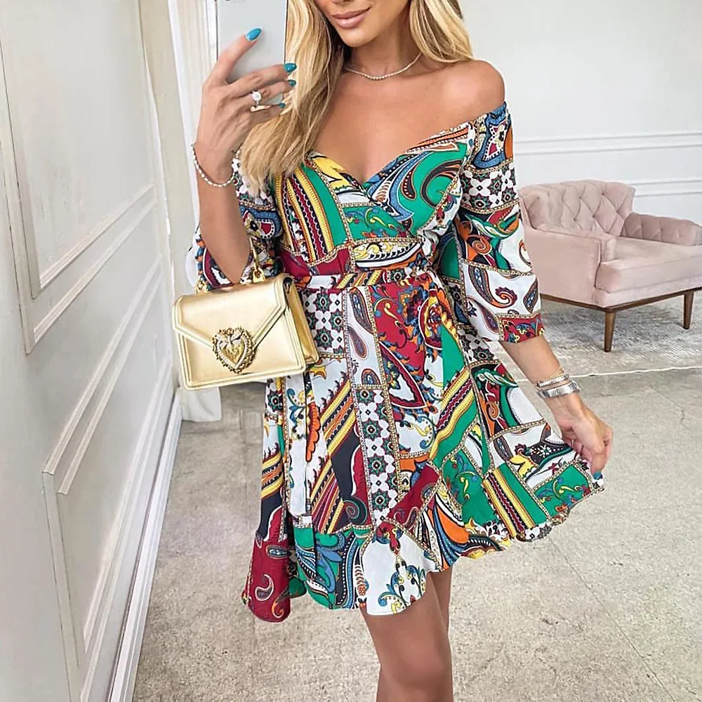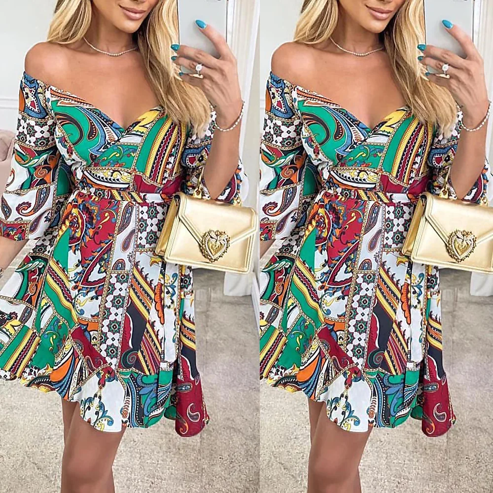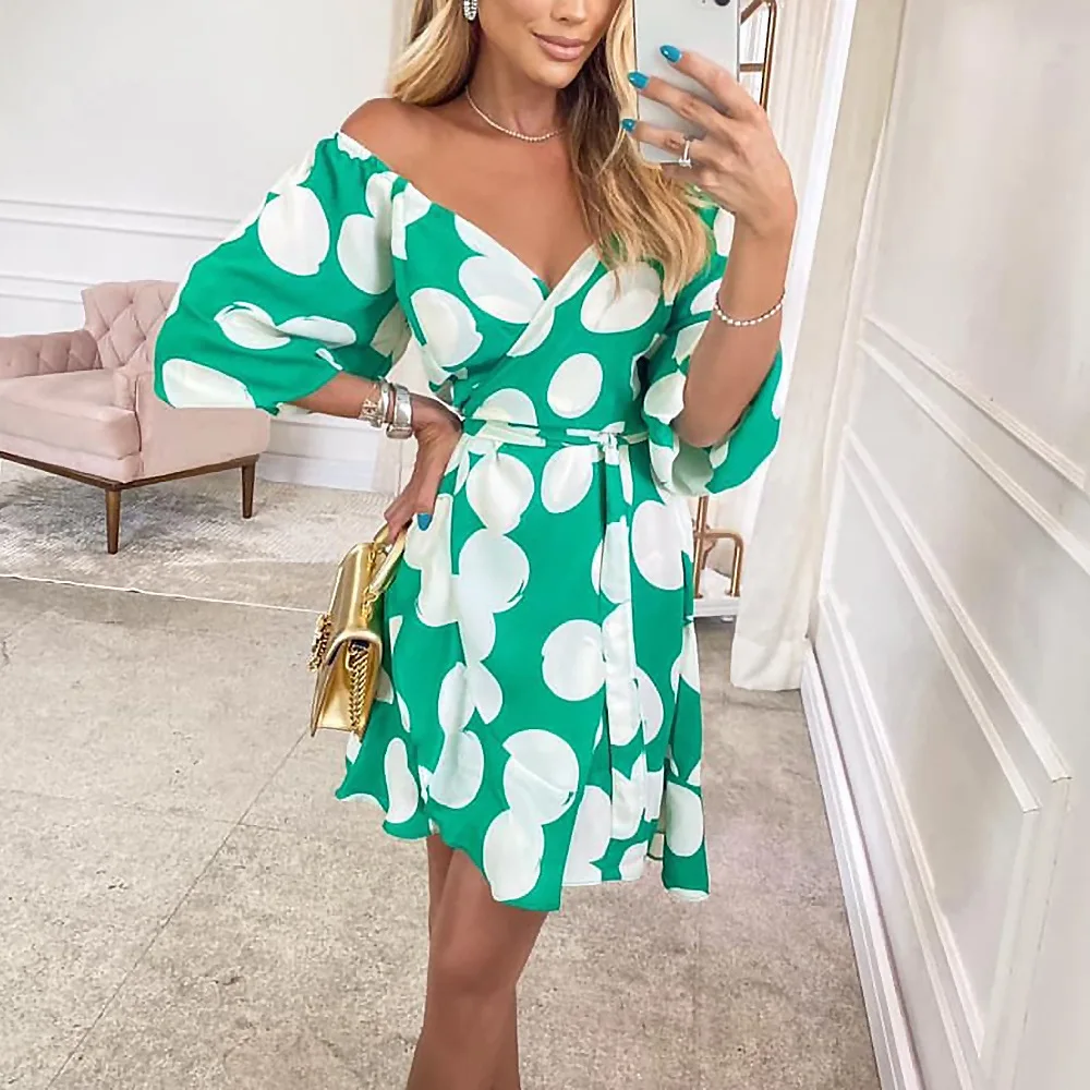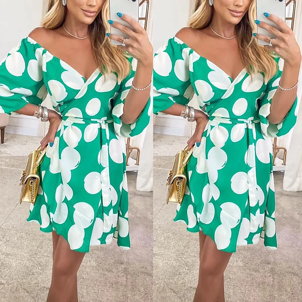 2022 New Spring And Summer Street Half Sleeve Ladies Dress Printed Loose V-Neck Party Dresses Fashion Women's Clothes