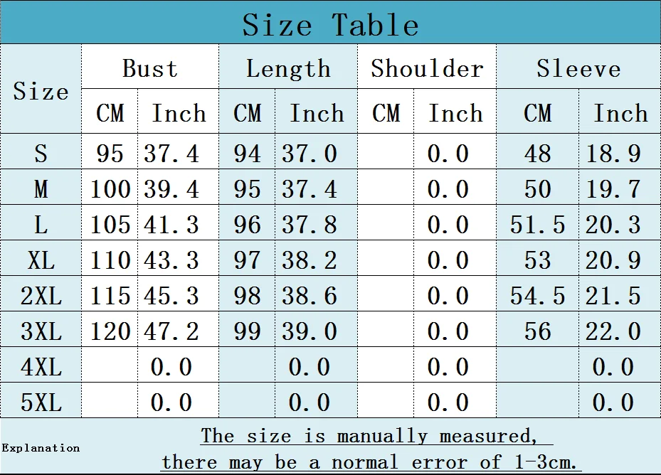 SizeBustLengthSleeve Length