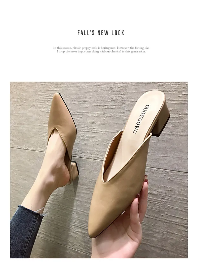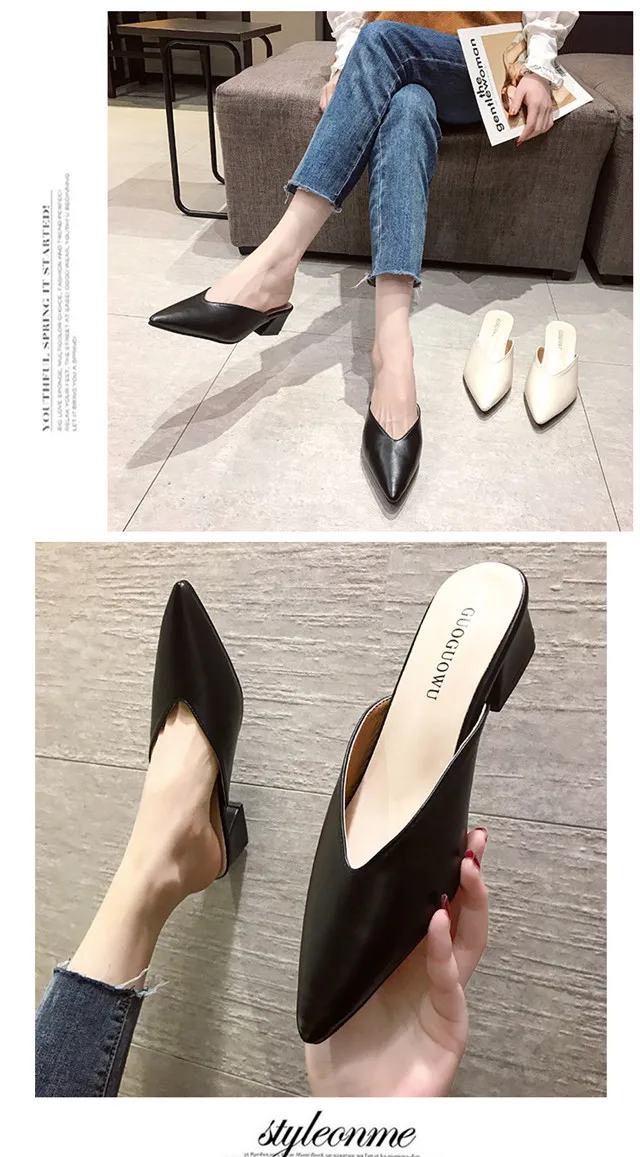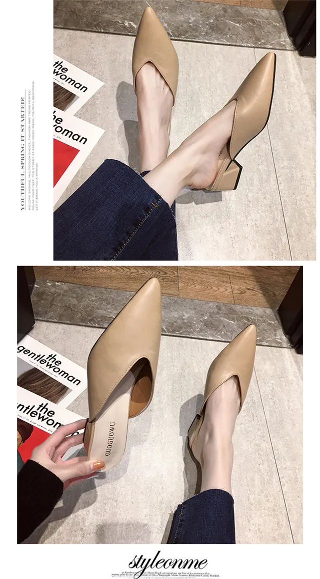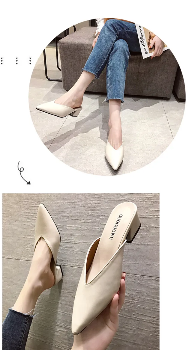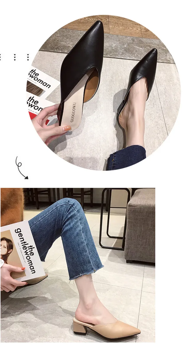2022 New Summer Slippers Slip On 5 CM Square heel Shoes High heels Women Pumps Slides Sandals size 34-42