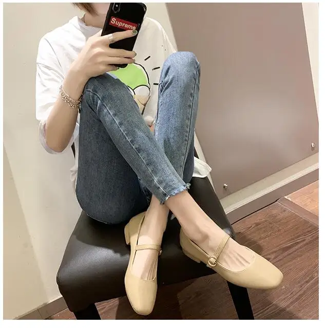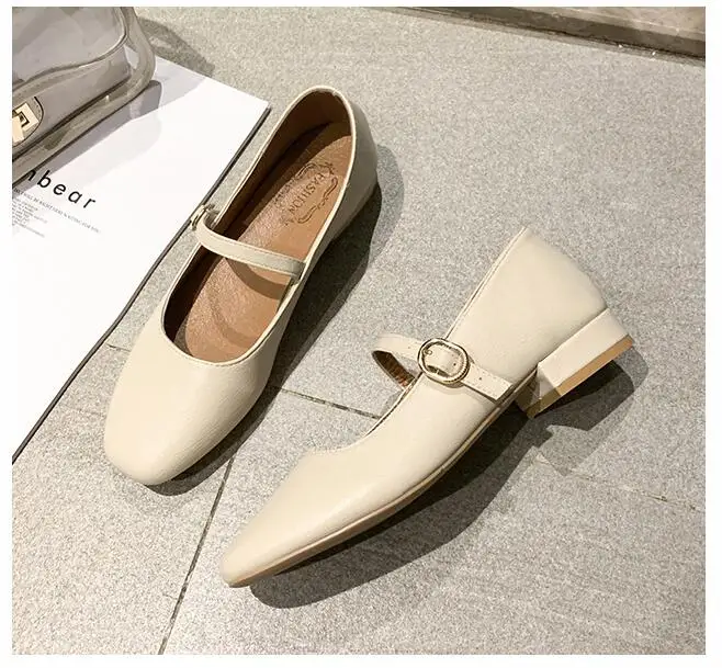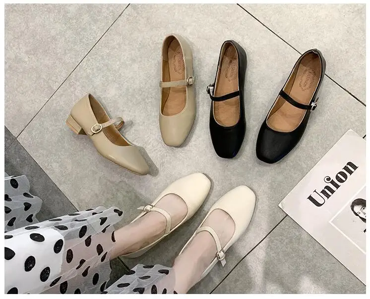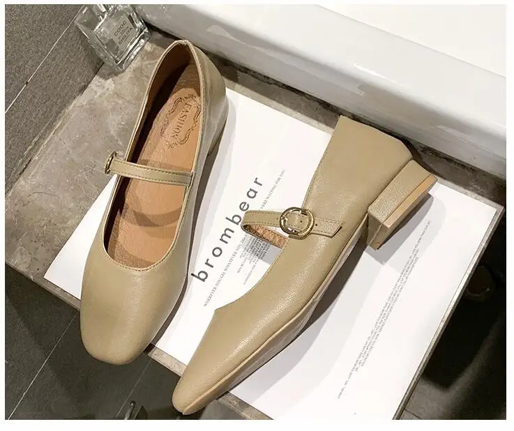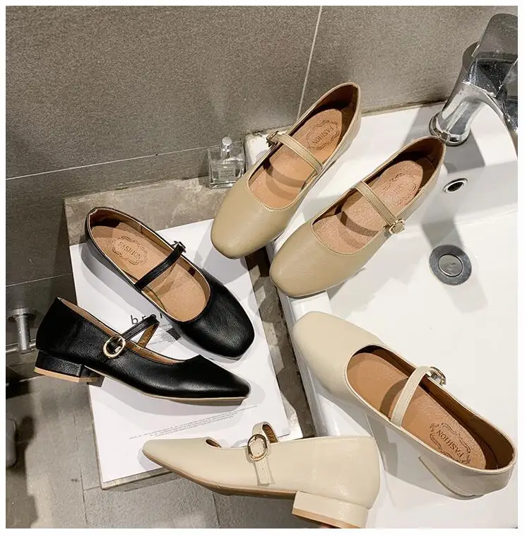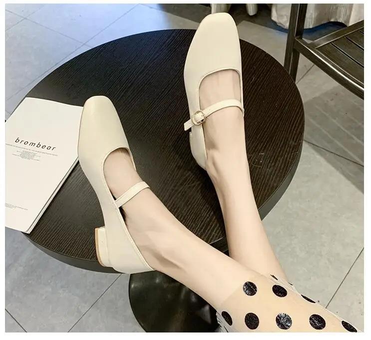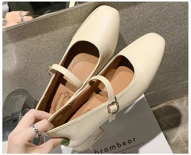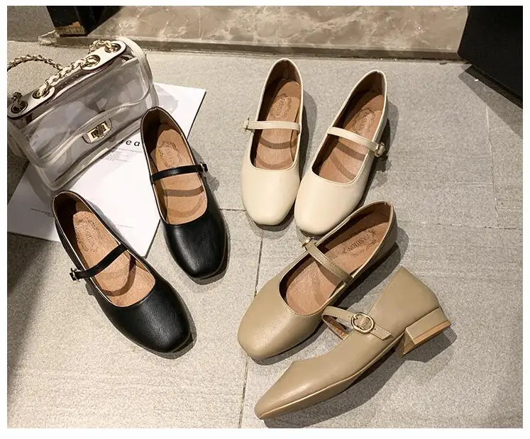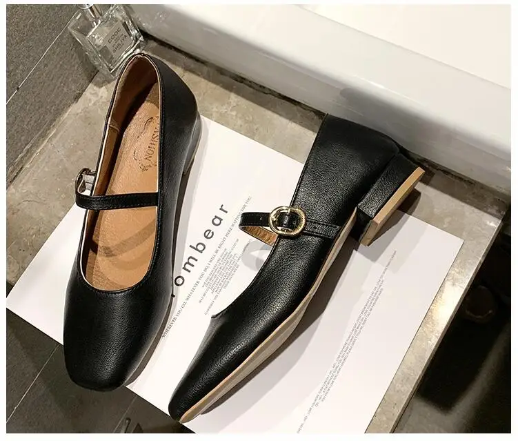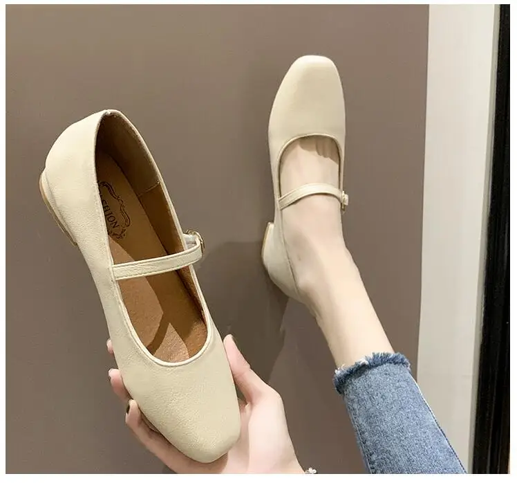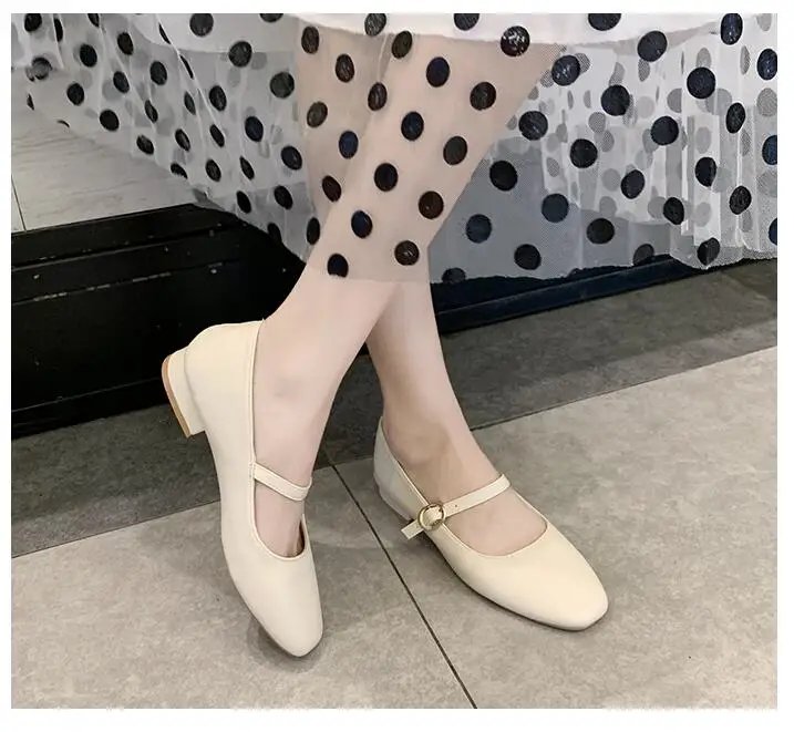 2022 New Women Low Heel Shoes Square Toe Retro Mary Janes Pumps Casual Spring Autumn Lady Weekly Shoes Size 35-40