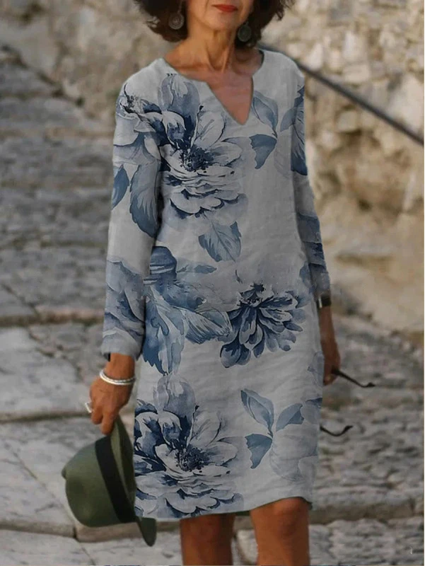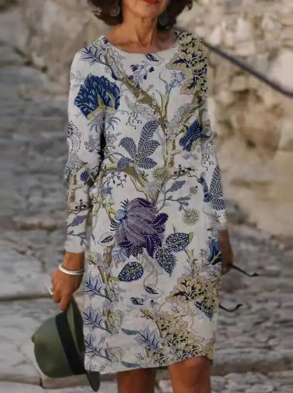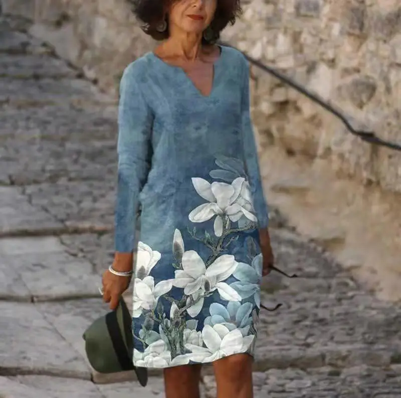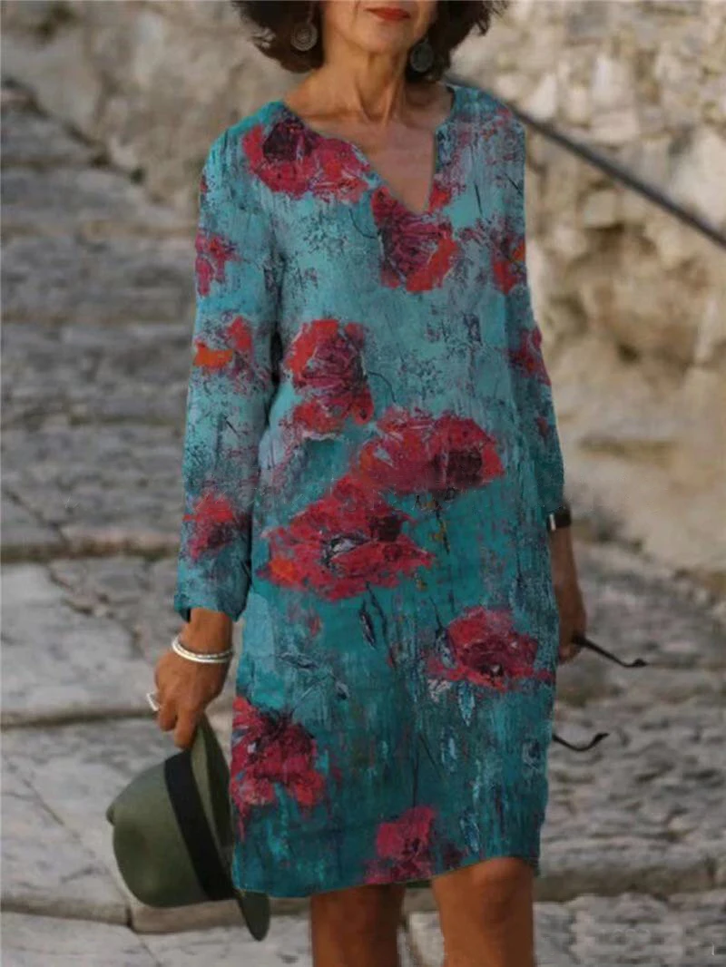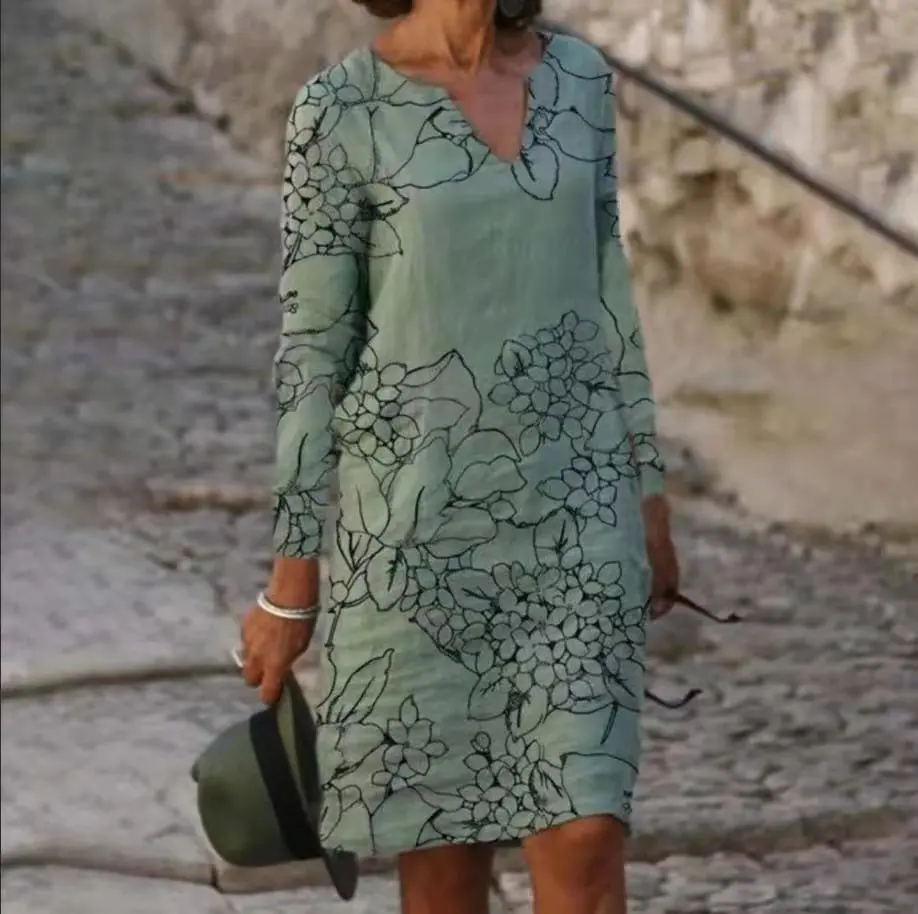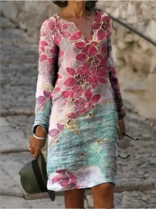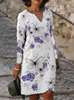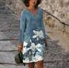 2022 New Women Printing Dress Summer V-Neck Half Sleeve A-Line Dresses Female Retro litera Vintage Loose Dress Vestidos