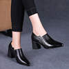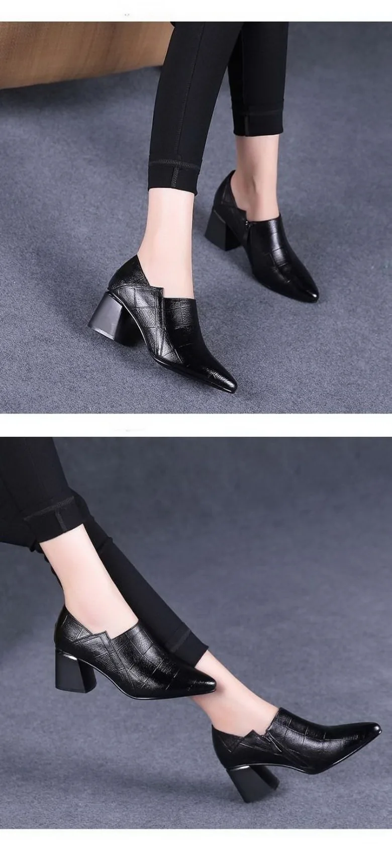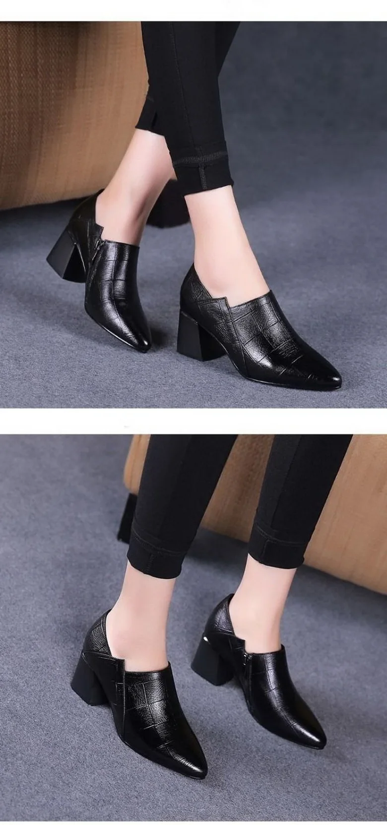 2022 New Women Pumps,Square High Heels,Soft PU Leather Work Shoes For Office Lady,Pointed Toe,Side Zip,Black,Dropship
