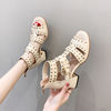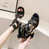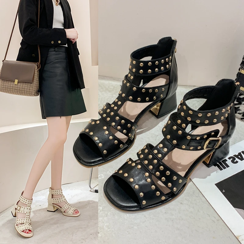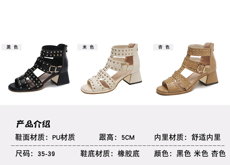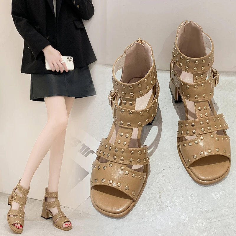 2022 New Women Square Heel Sandals,Rivets Platforms Shoes,Summer Heels,Korea Style,Female Footwear Black,BLUE,BEIGE,Dropshipping