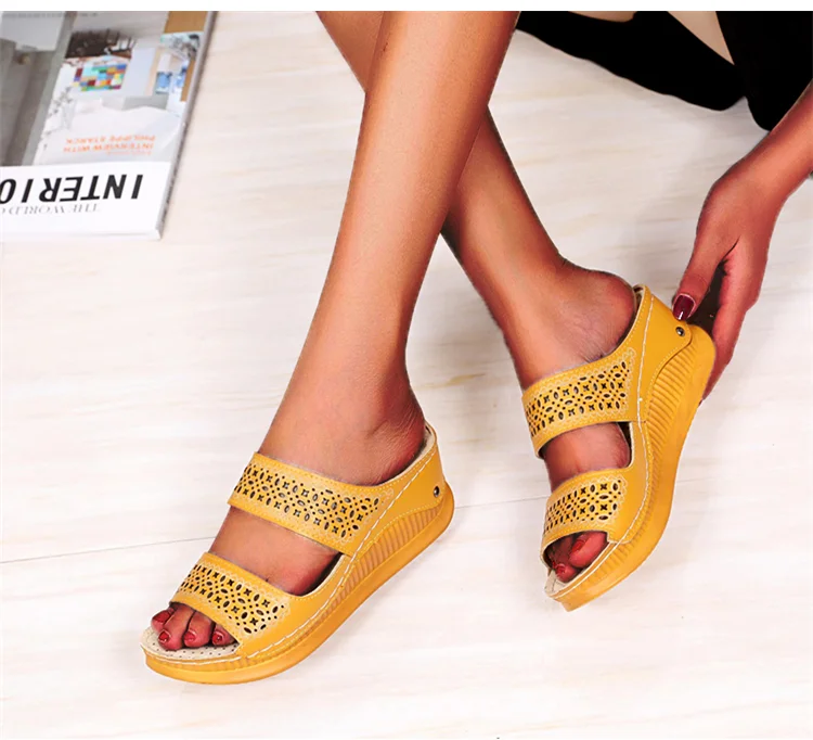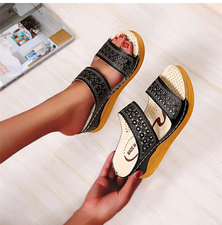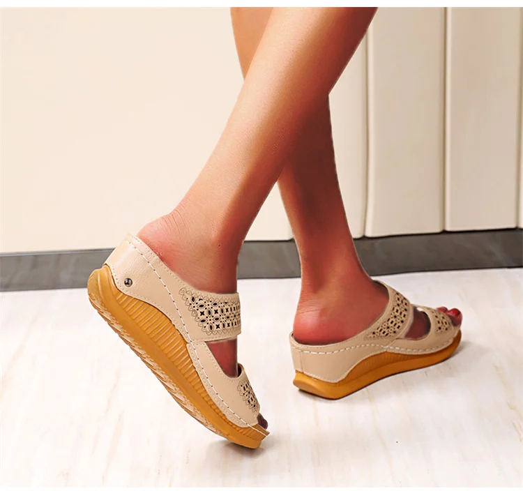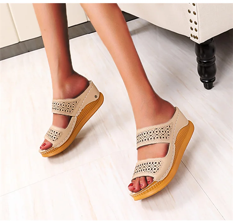 2022 Sandals Women Comfortable Open Toe Beach Sandals Women Shoes Outdoor Female Slippers Slip On Wedge Sandals Footwear Slides