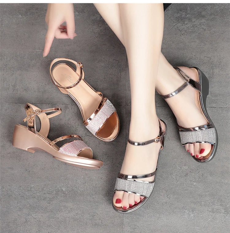 2022 Sandals Women Shoe Summer Peep Toe Ladies Shoes Comfortable Sandals Woman Solid Color Wedge Shoes Non-Slip Zapatillas Mujer