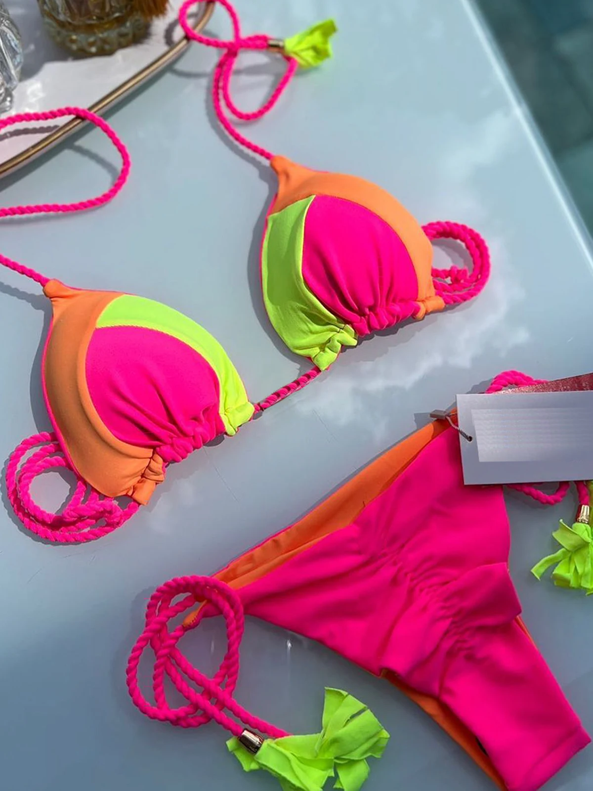 2022 Sexy Thong Micro Bikini Women Swimsuits Solid Push up Swimwear Female Bikini set Brazilian Bathing Suit
