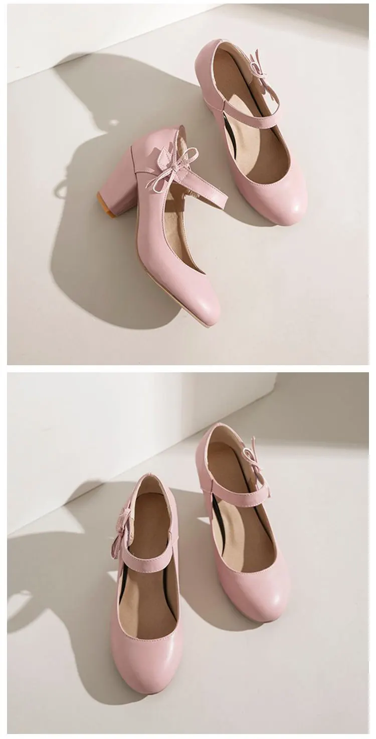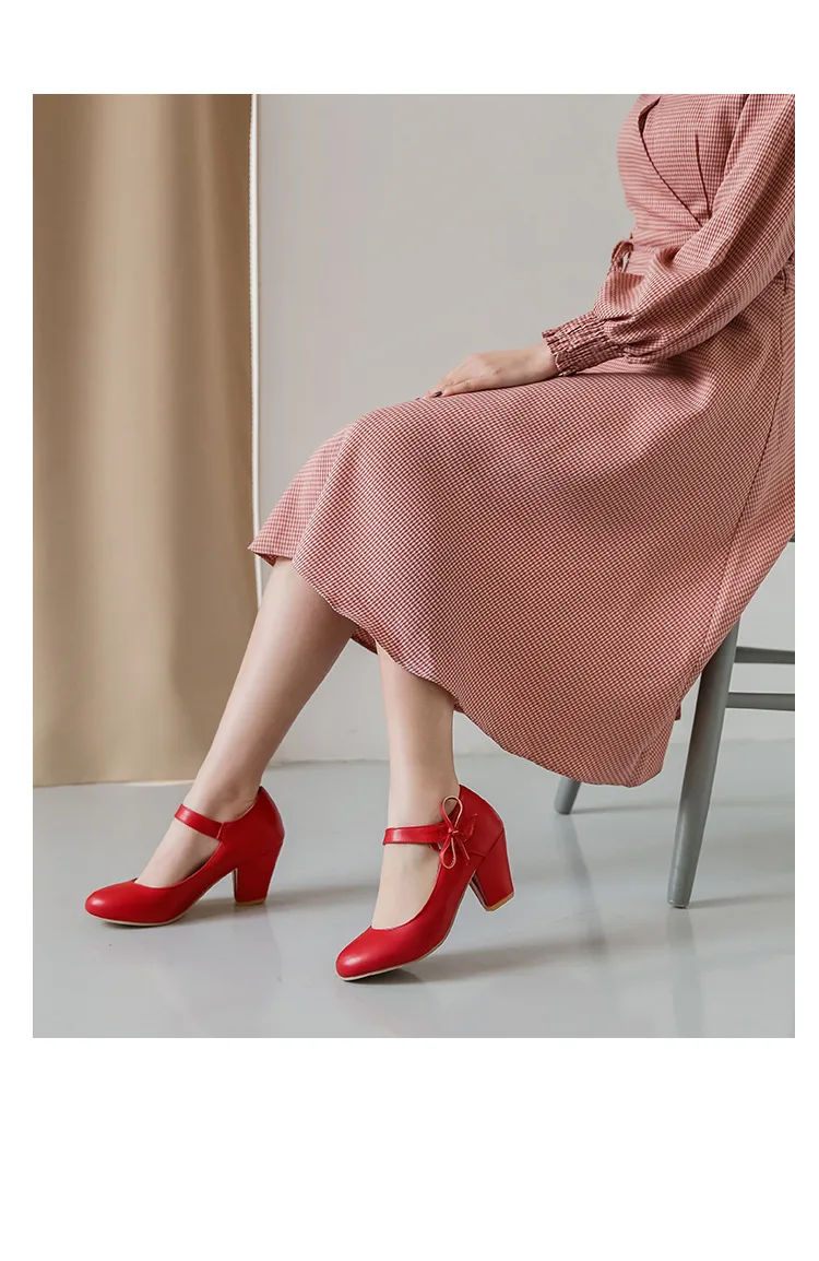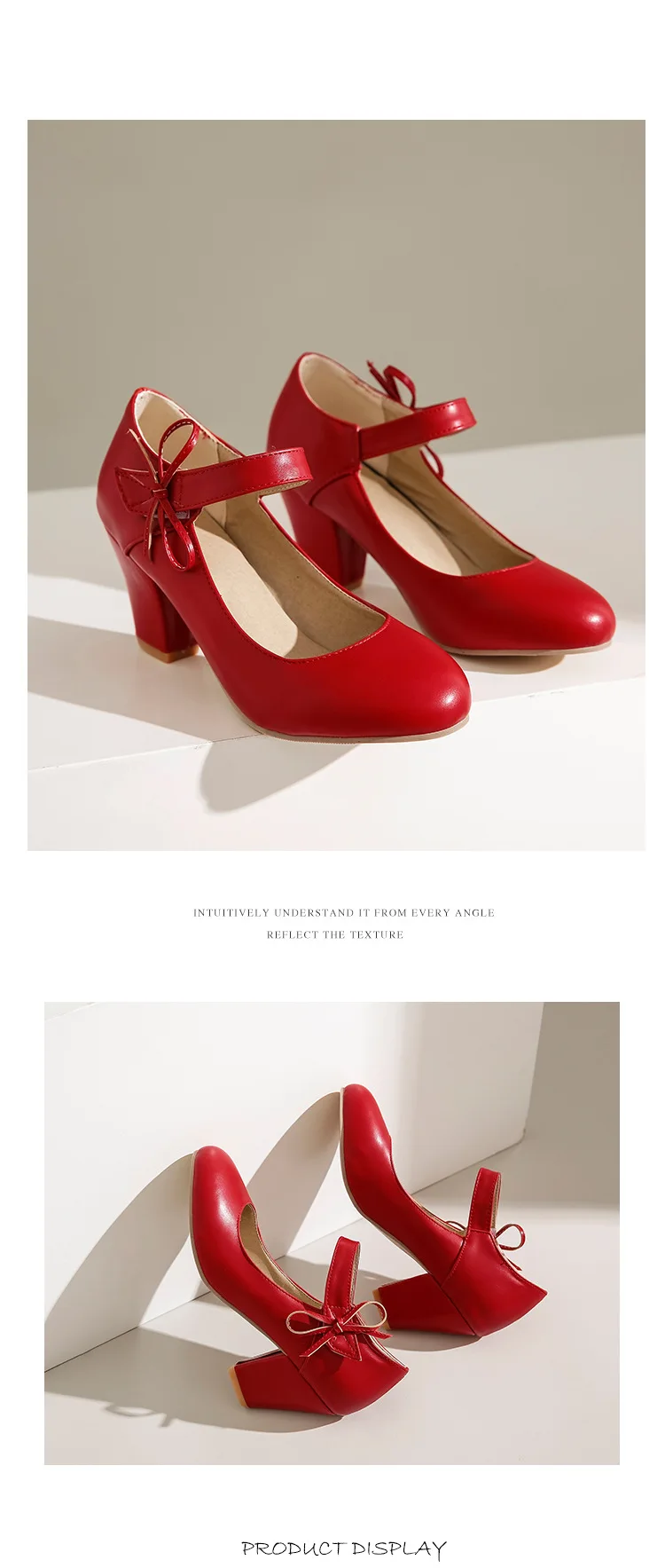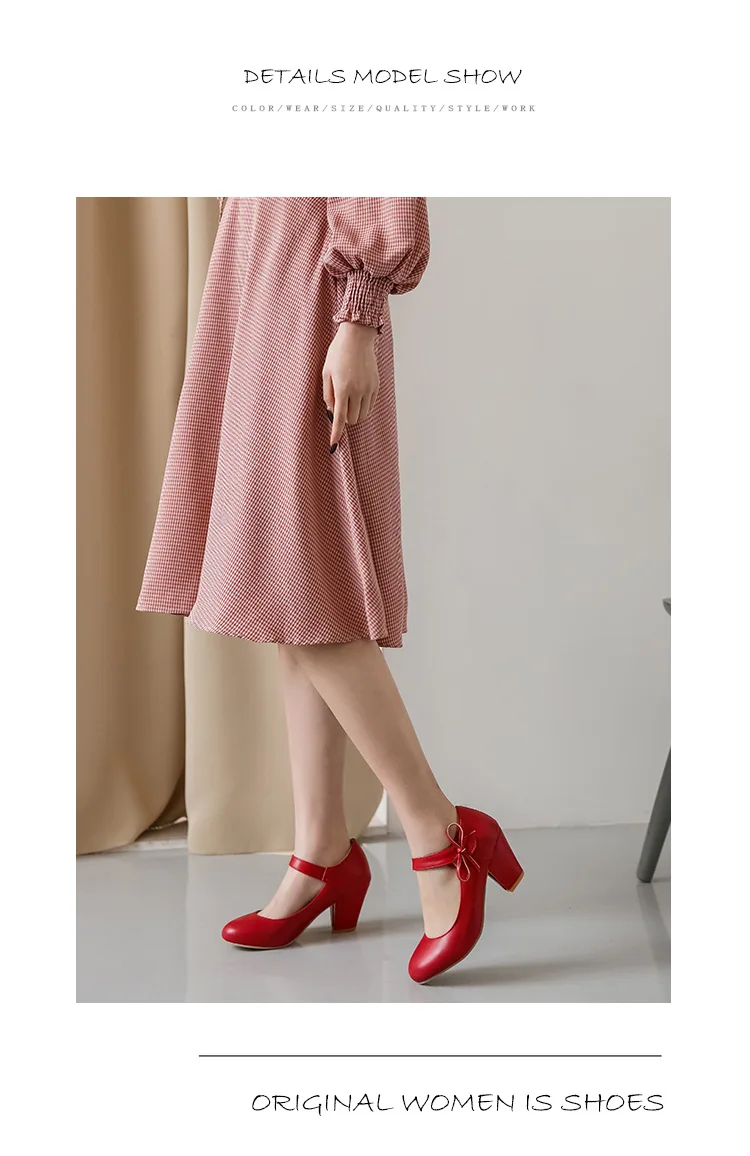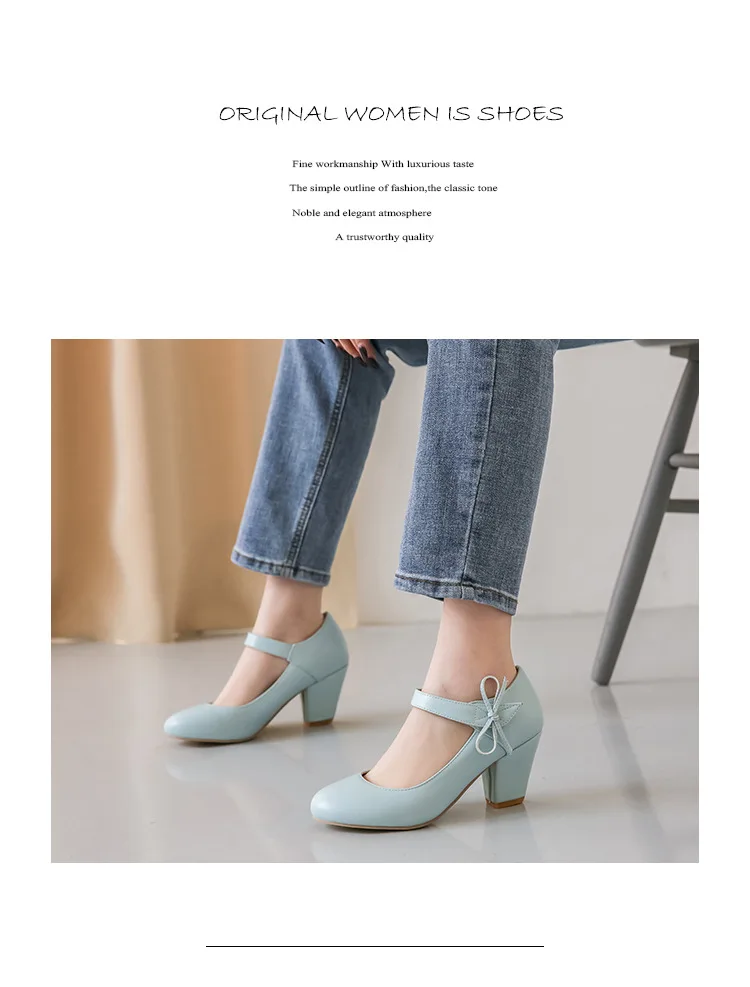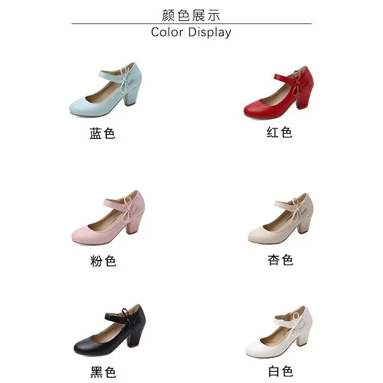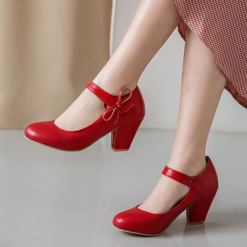 2022 Single Shoes Women's Thick Heels High Heels Foreign Trade Large Size Women's Shoes One Word Buckle Shoes One Piece Delivery