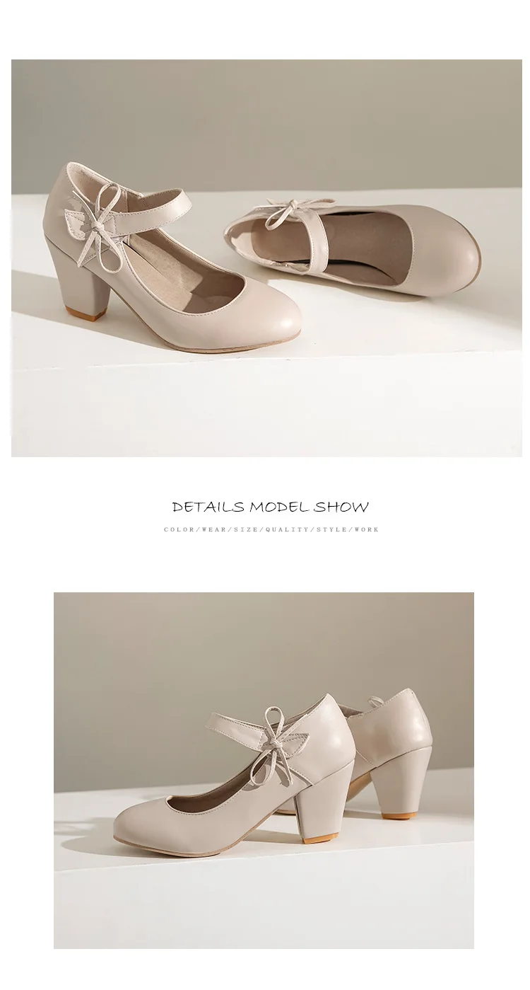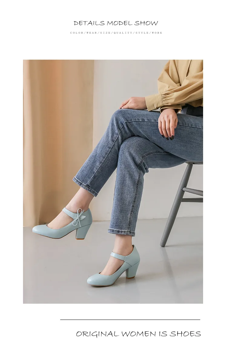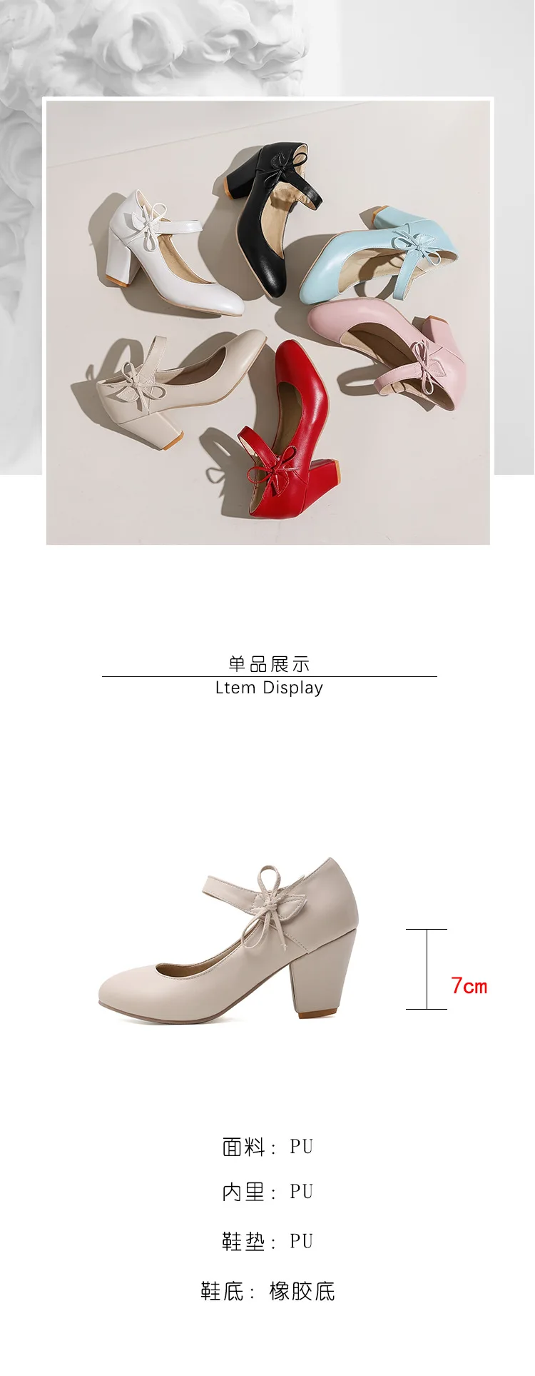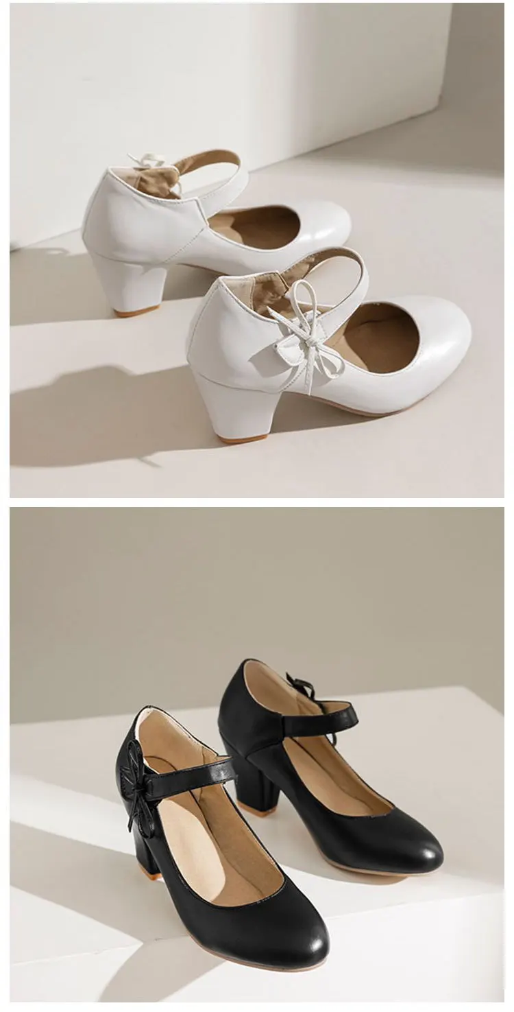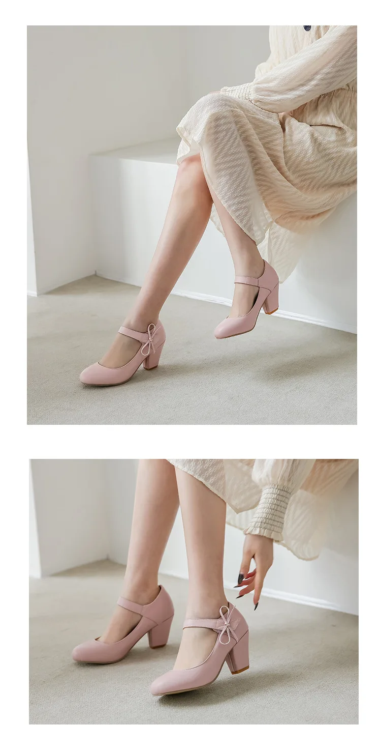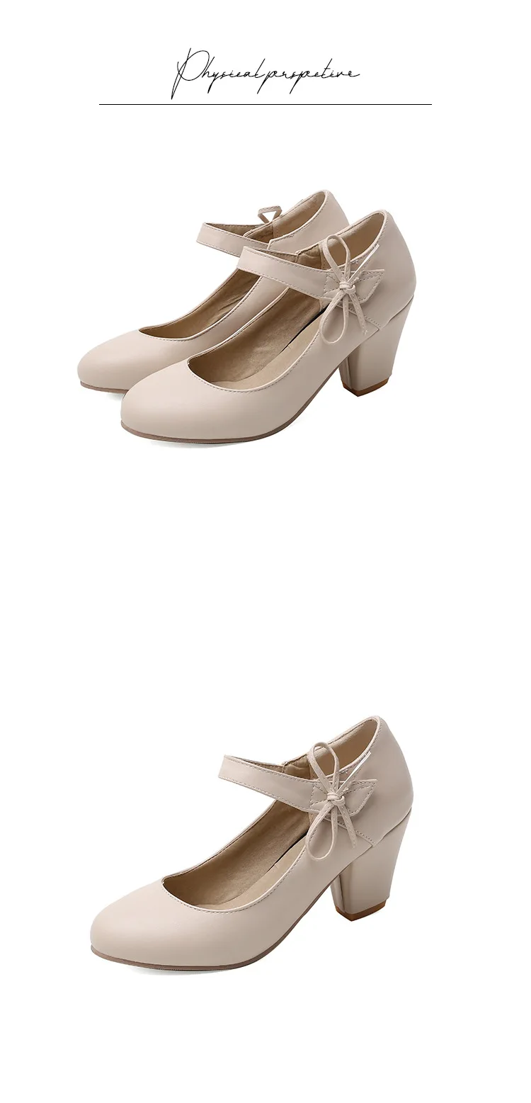 2022 Single Shoes Women's Thick Heels High Heels Foreign Trade Large Size Women's Shoes One Word Buckle Shoes One Piece Delivery