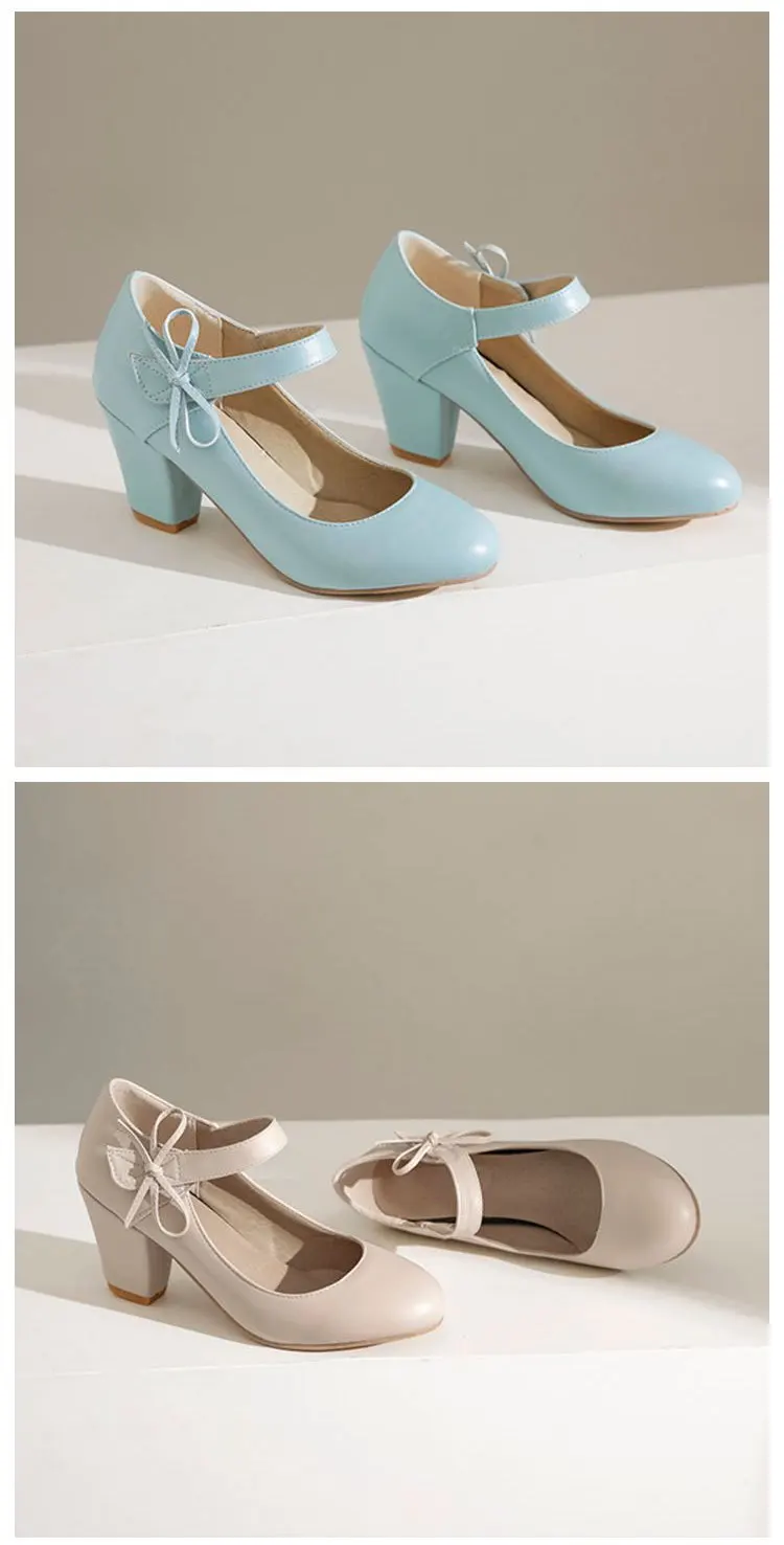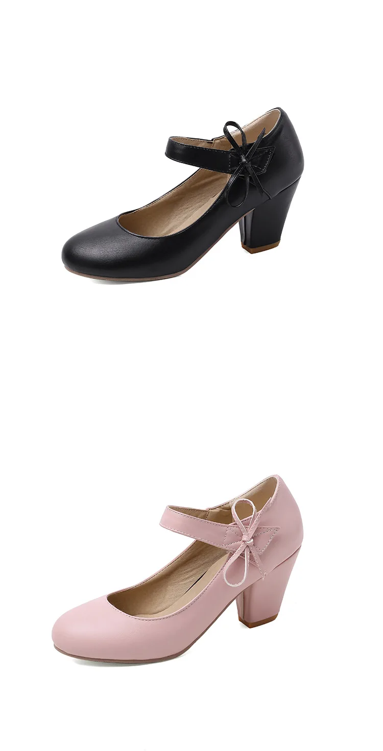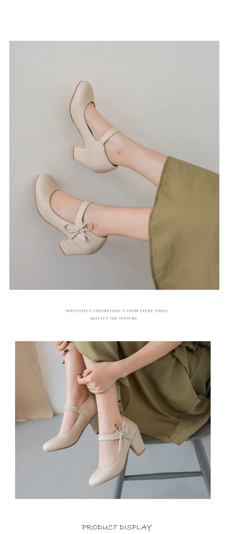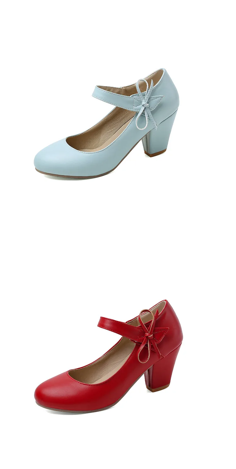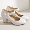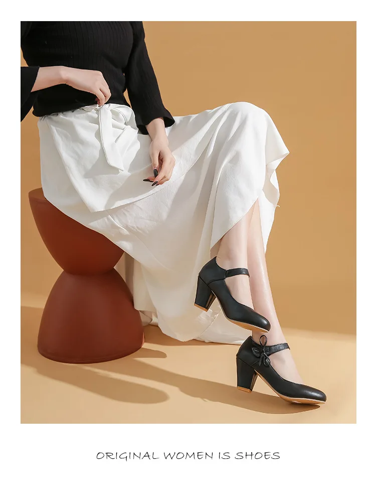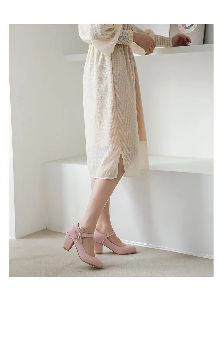 2022 Single Shoes Women's Thick Heels High Heels Foreign Trade Large Size Women's Shoes One Word Buckle Shoes One Piece Delivery
