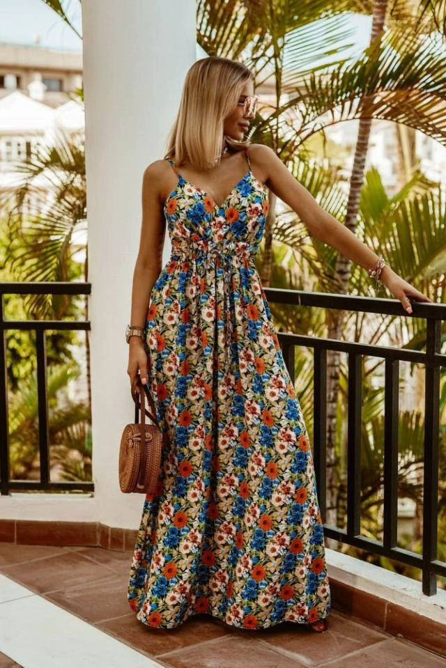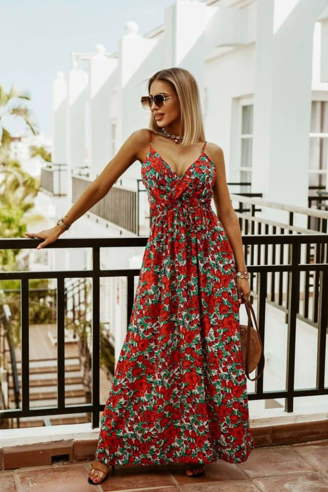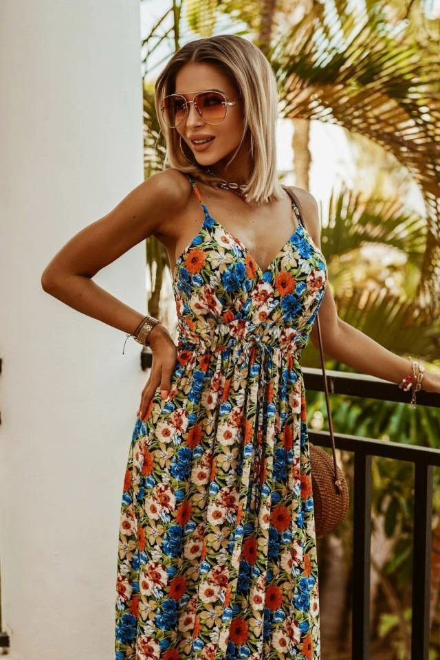 2022 Spring And Summer New Women's Dress V-neck Sleeveless Suspender Print Ladies Long Dress Multicolor Boho Ladies Sexy Dress