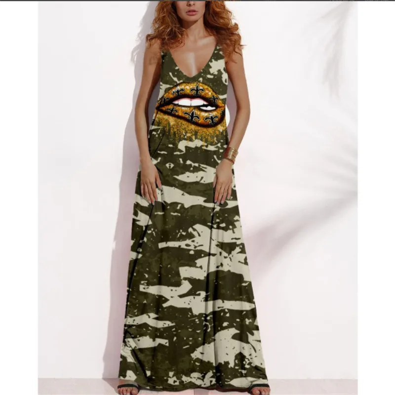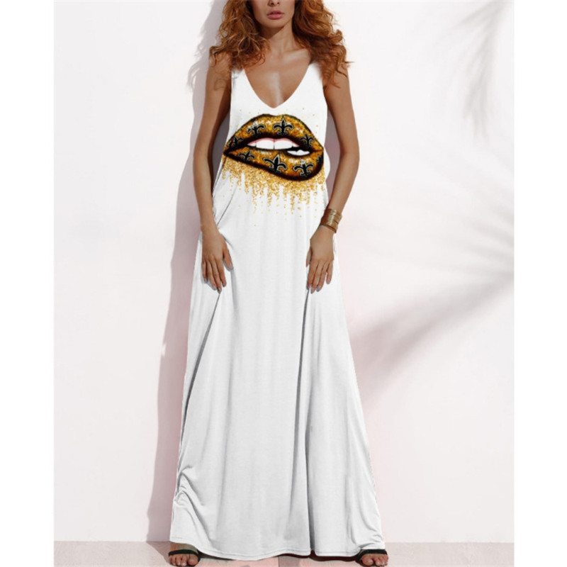 2022 Summer Fashion Ladies Sling Dress 3D Printed Lips Baseball Finger Letter Print Long Dress Casual Street Women Dress 5XL