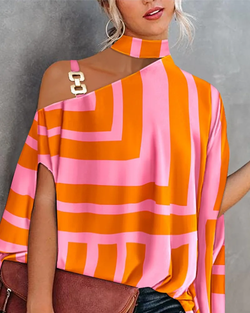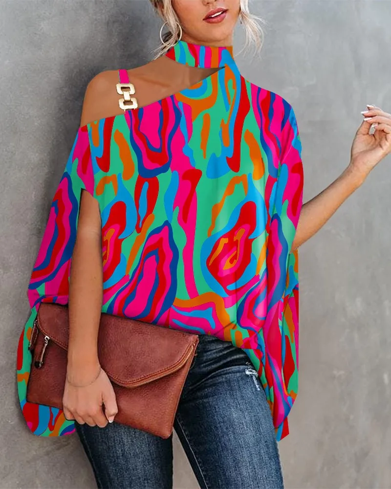 2022 Summer Halter Doll Sleeve Printed Shirt Ladies Shirts Women Casual Loose Off Shoulder Pullover Blouse Tops Femme Blusas