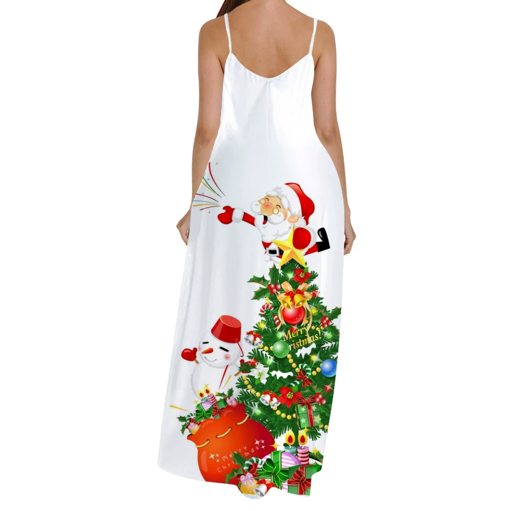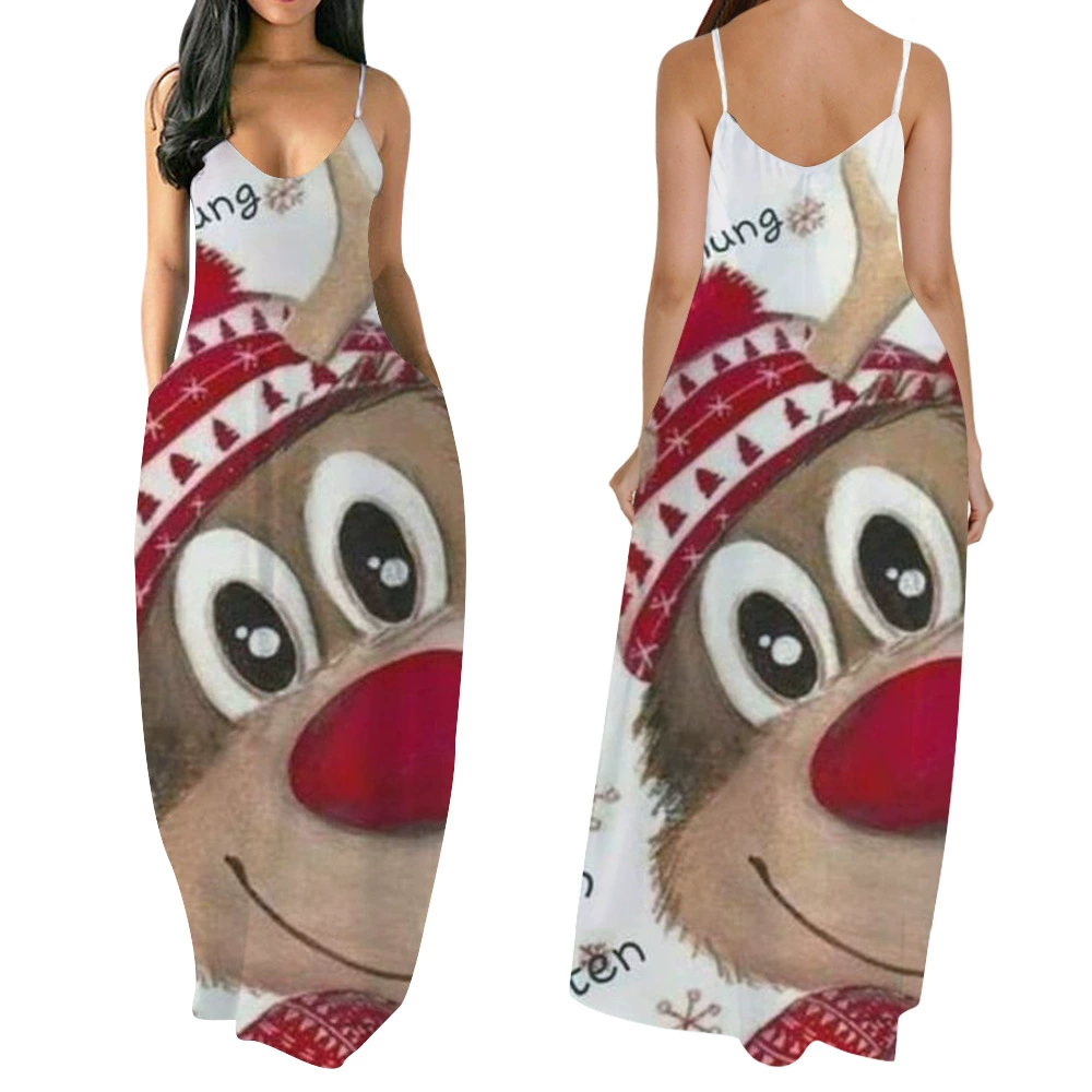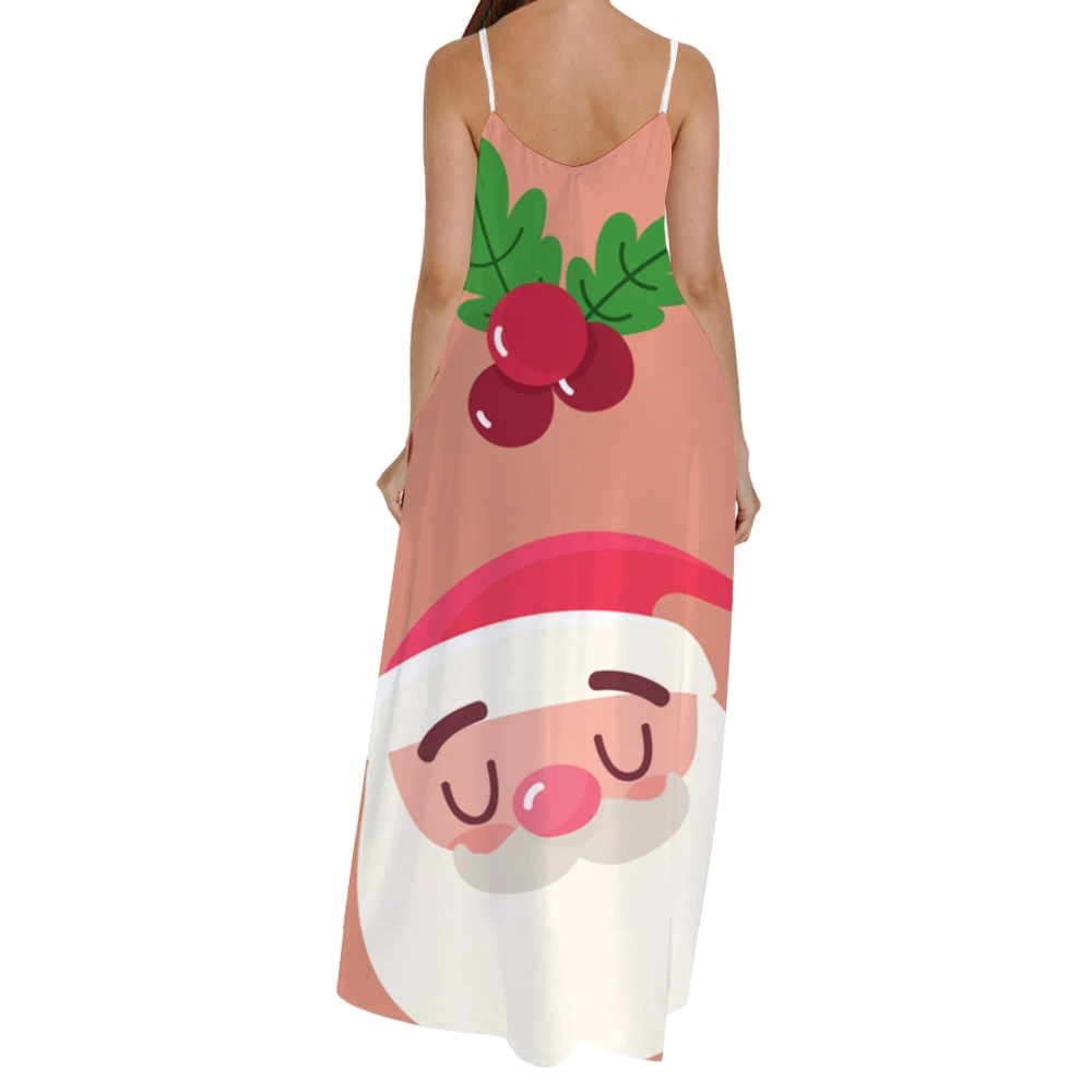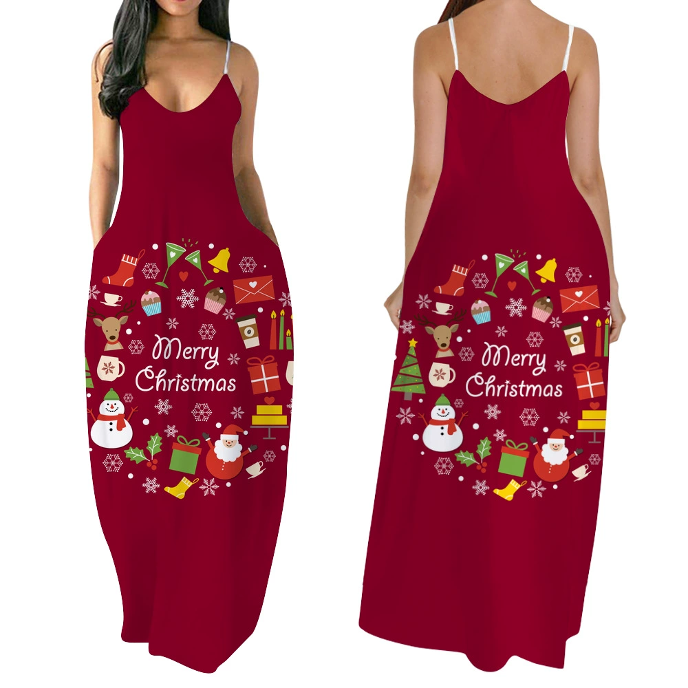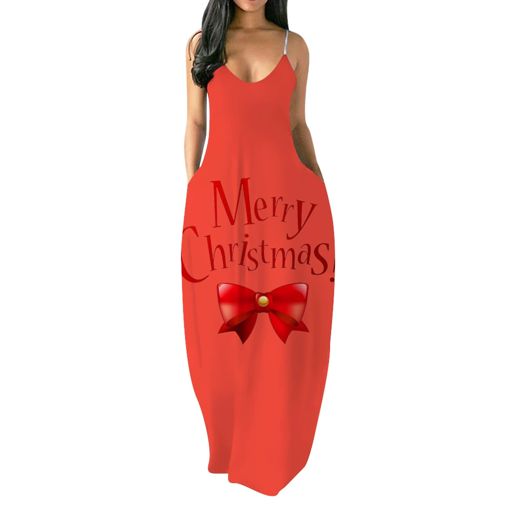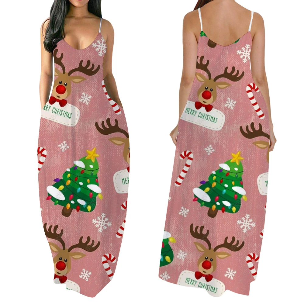 2022 Summer New Ladies Robe Dress Sexy Sling Santa Claus 3D Digital Printing O Neck Insert Pocket Multicolor Casual Long Dress