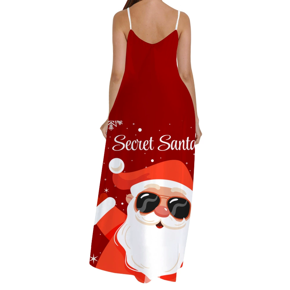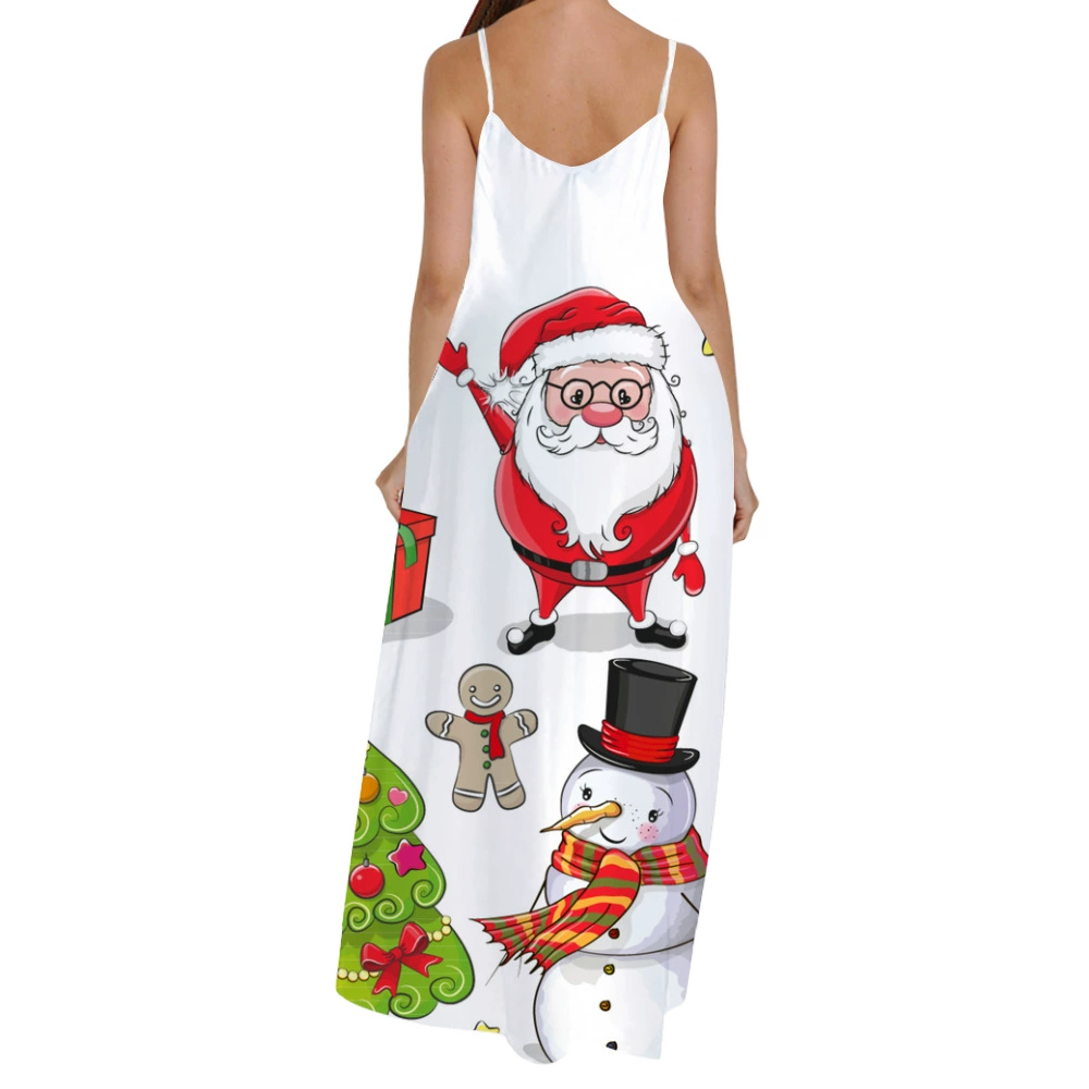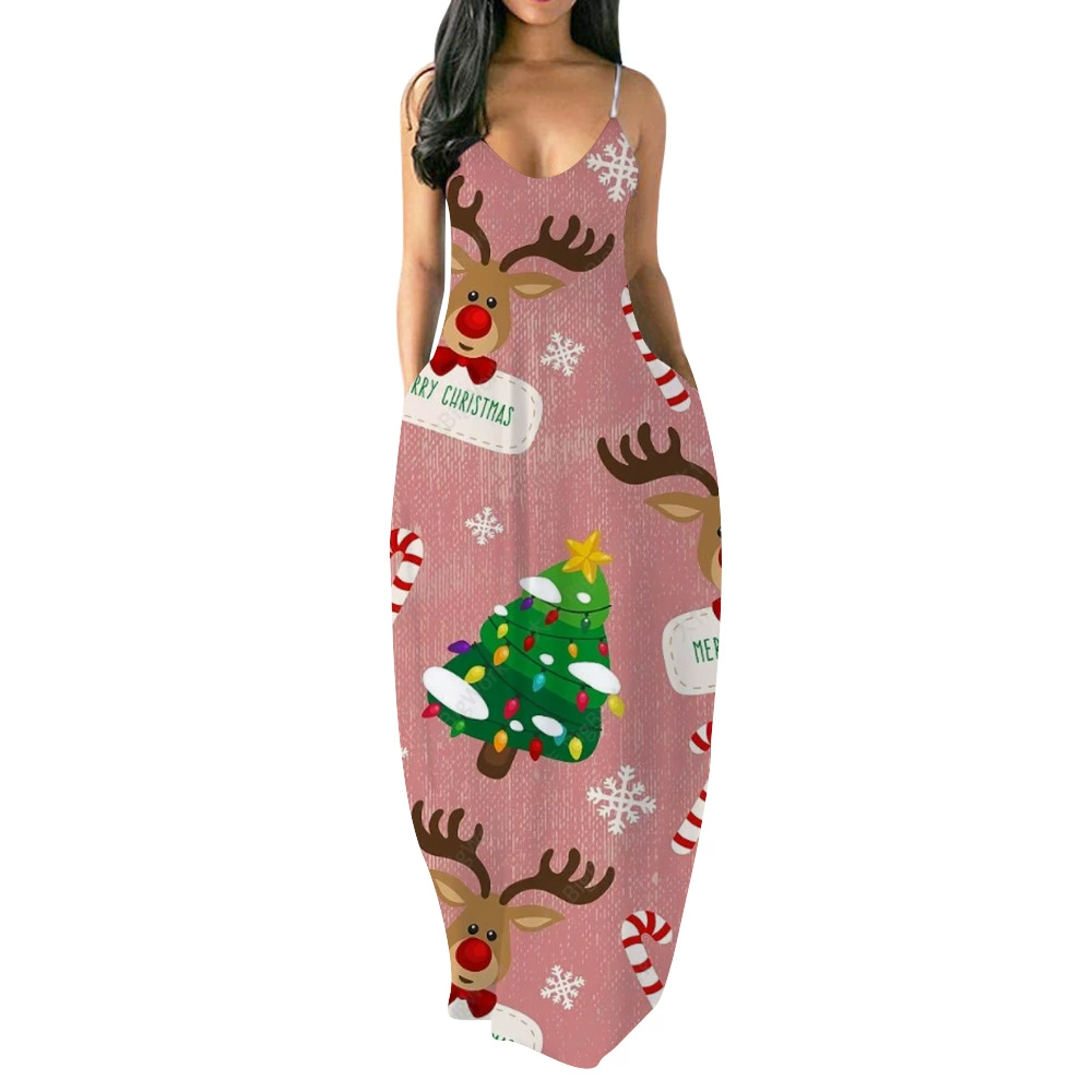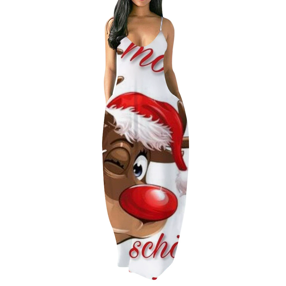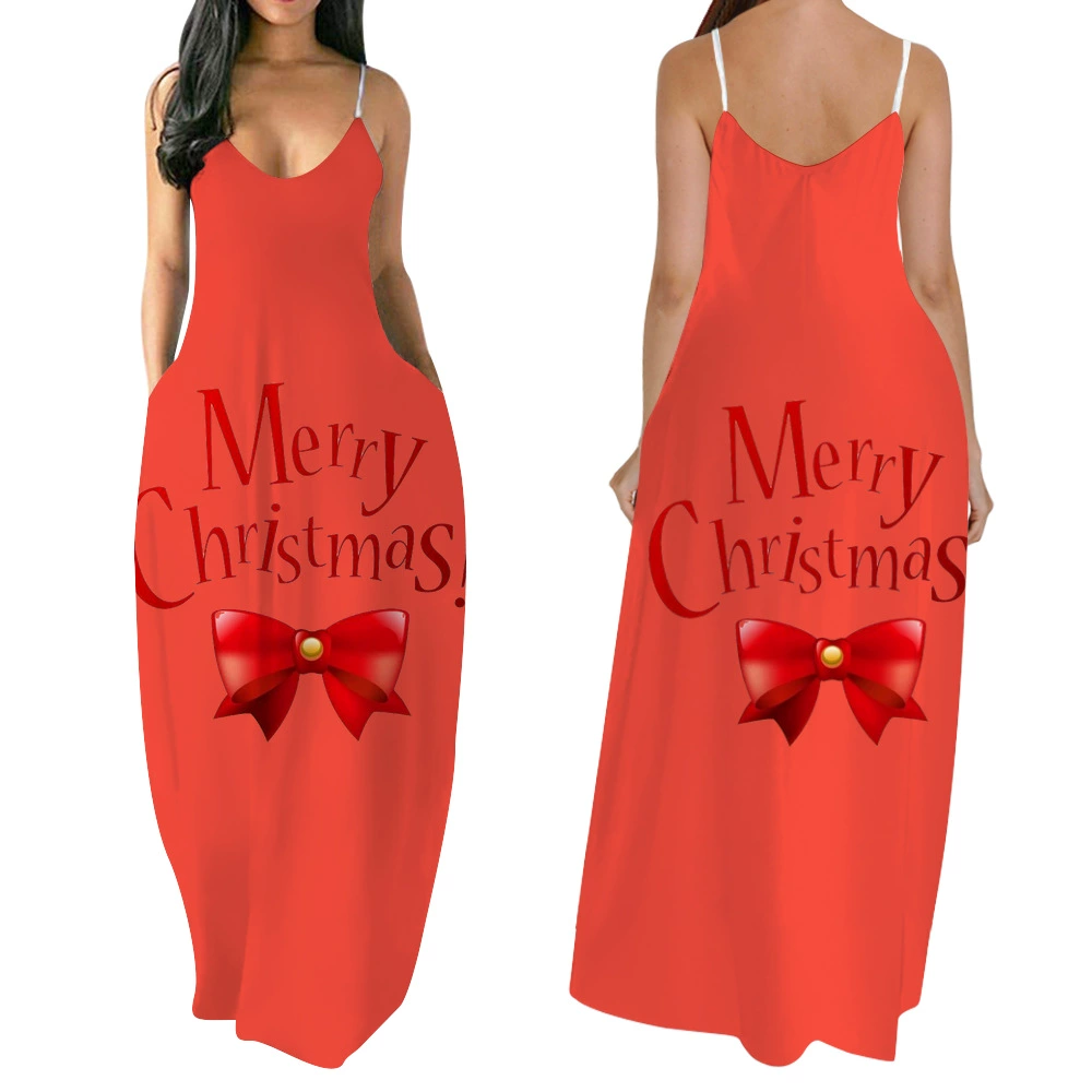 2022 Summer New Ladies Robe Dress Sexy Sling Santa Claus 3D Digital Printing O Neck Insert Pocket Multicolor Casual Long Dress