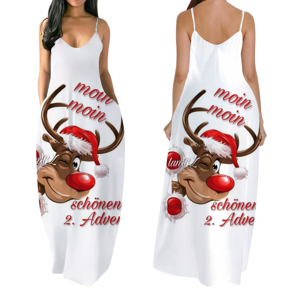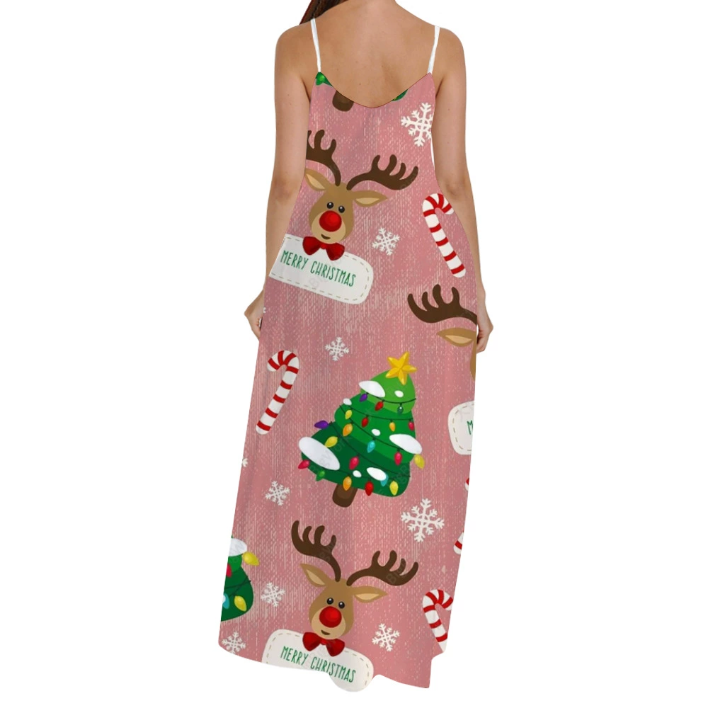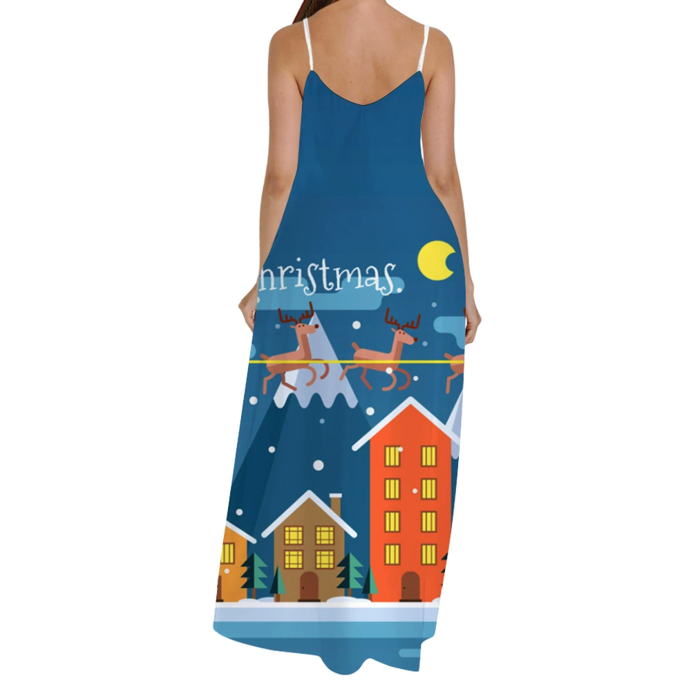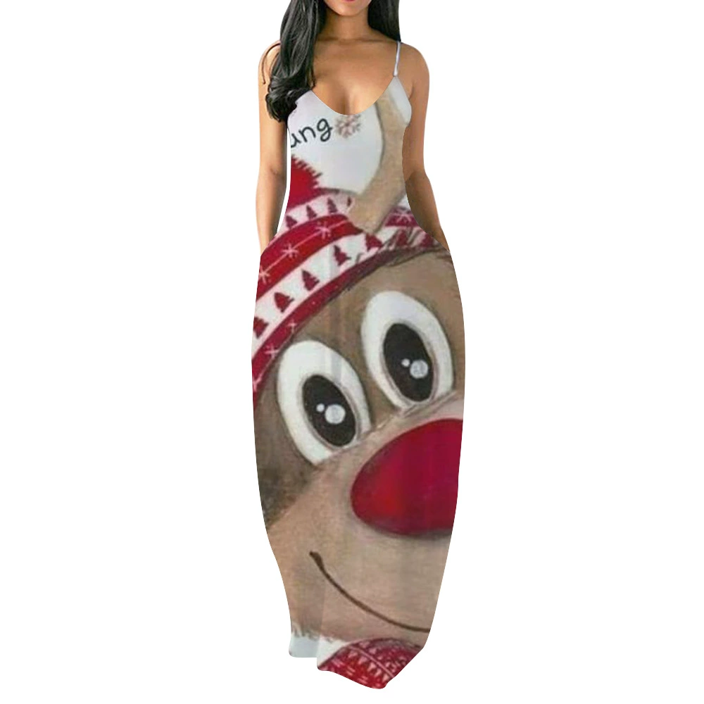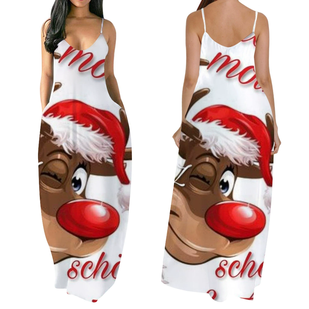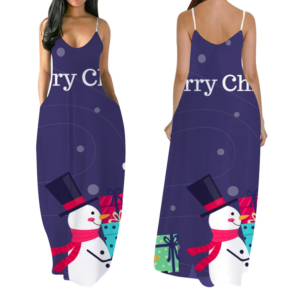 2022 Summer New Ladies Robe Dress Sexy Sling Santa Claus 3D Digital Printing O Neck Insert Pocket Multicolor Casual Long Dress