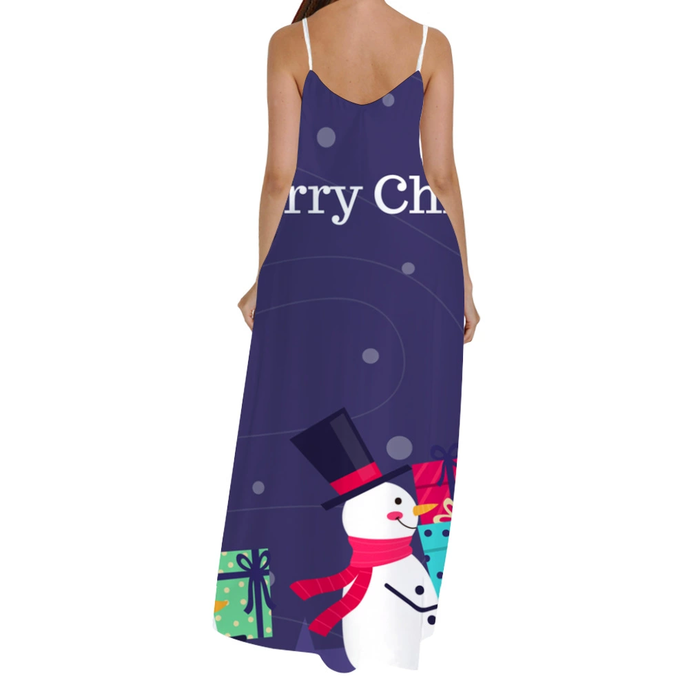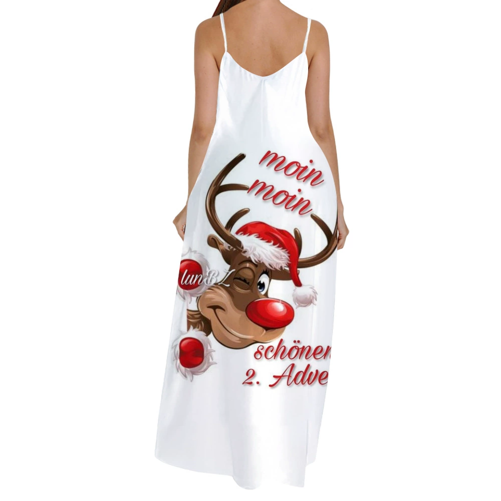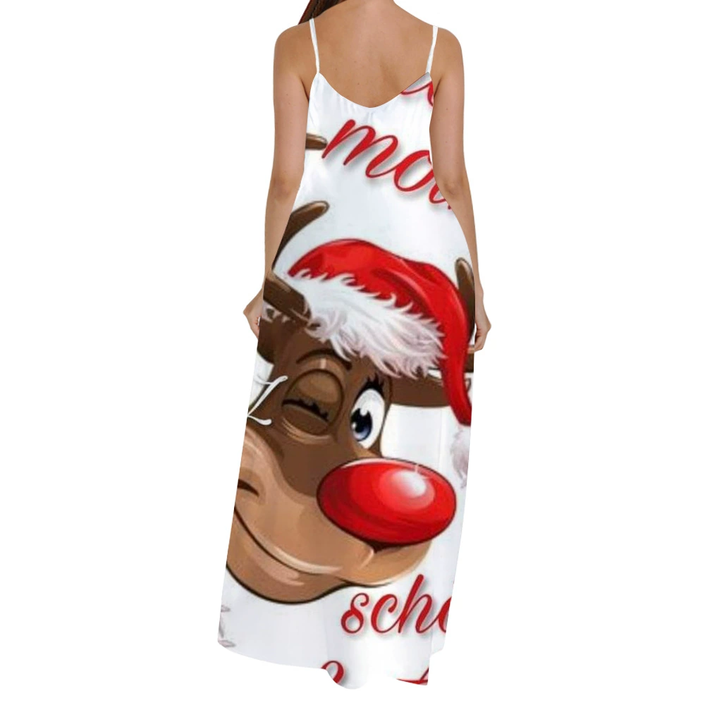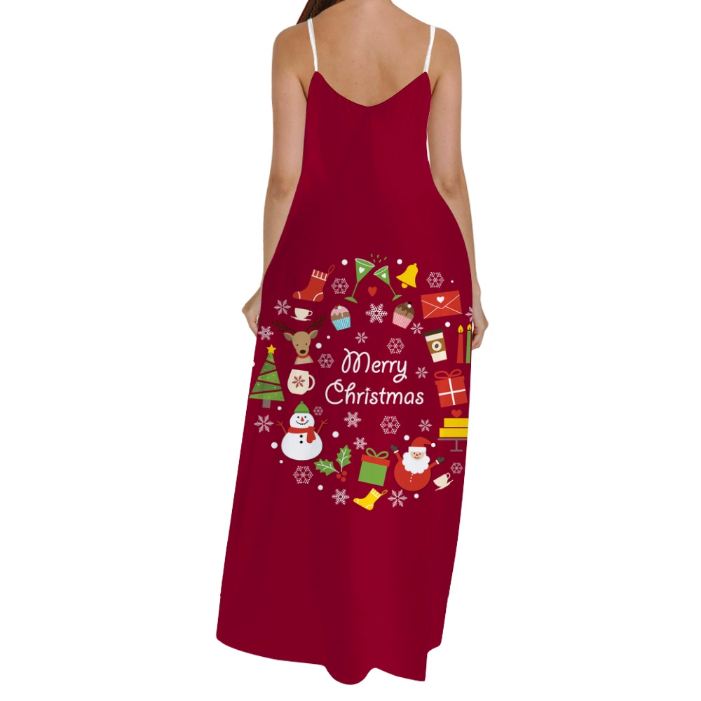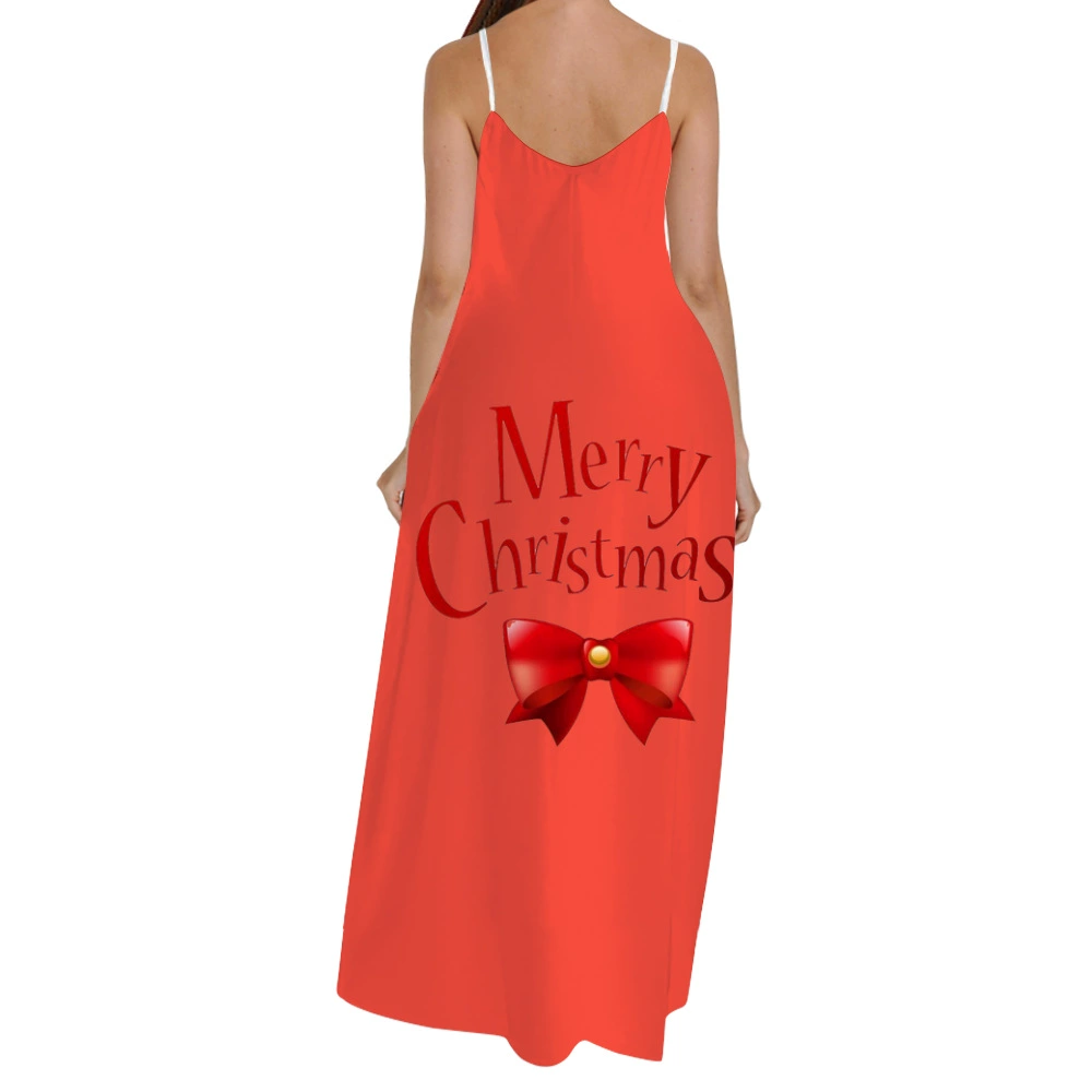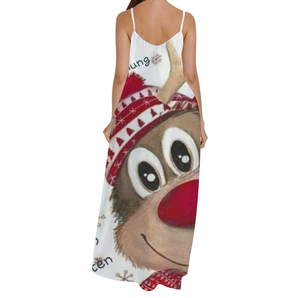 2022 Summer New Ladies Robe Dress Sexy Sling Santa Claus 3D Digital Printing O Neck Insert Pocket Multicolor Casual Long Dress