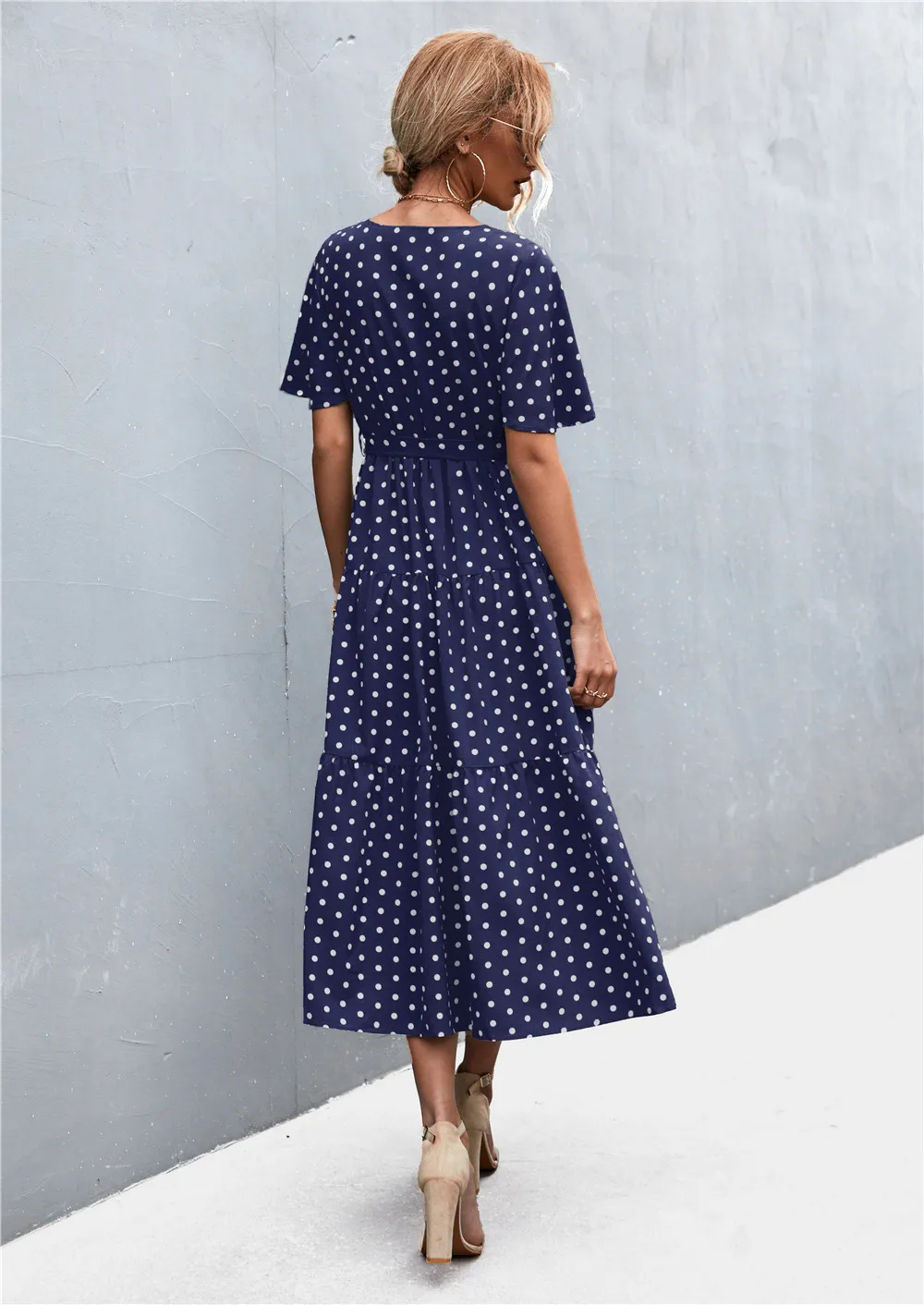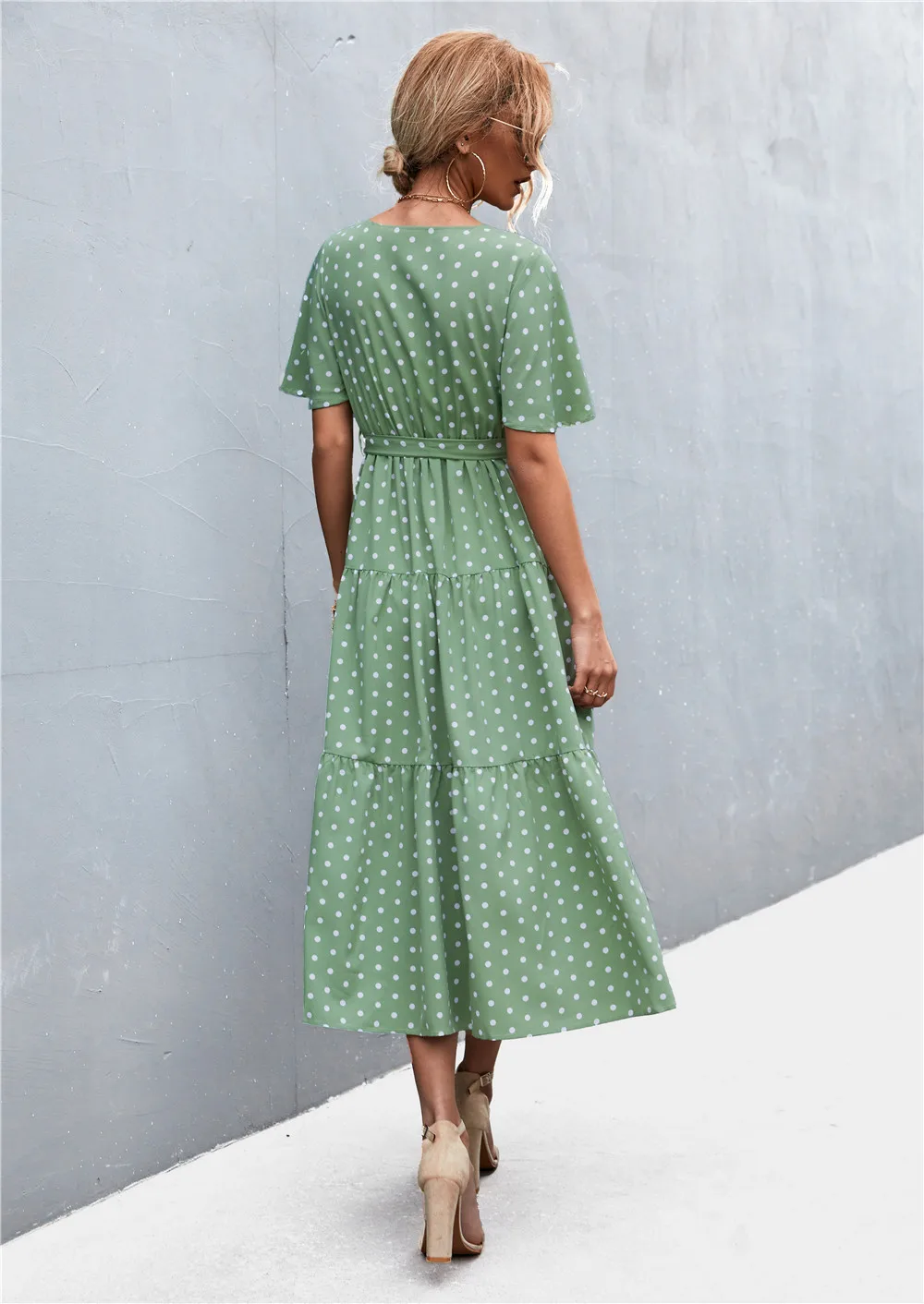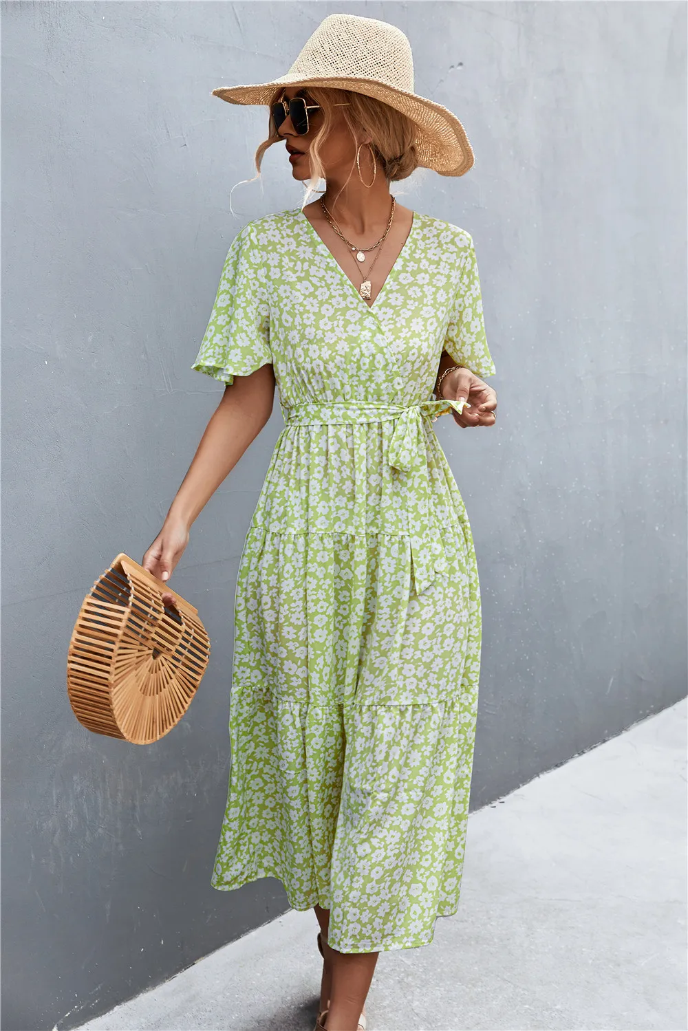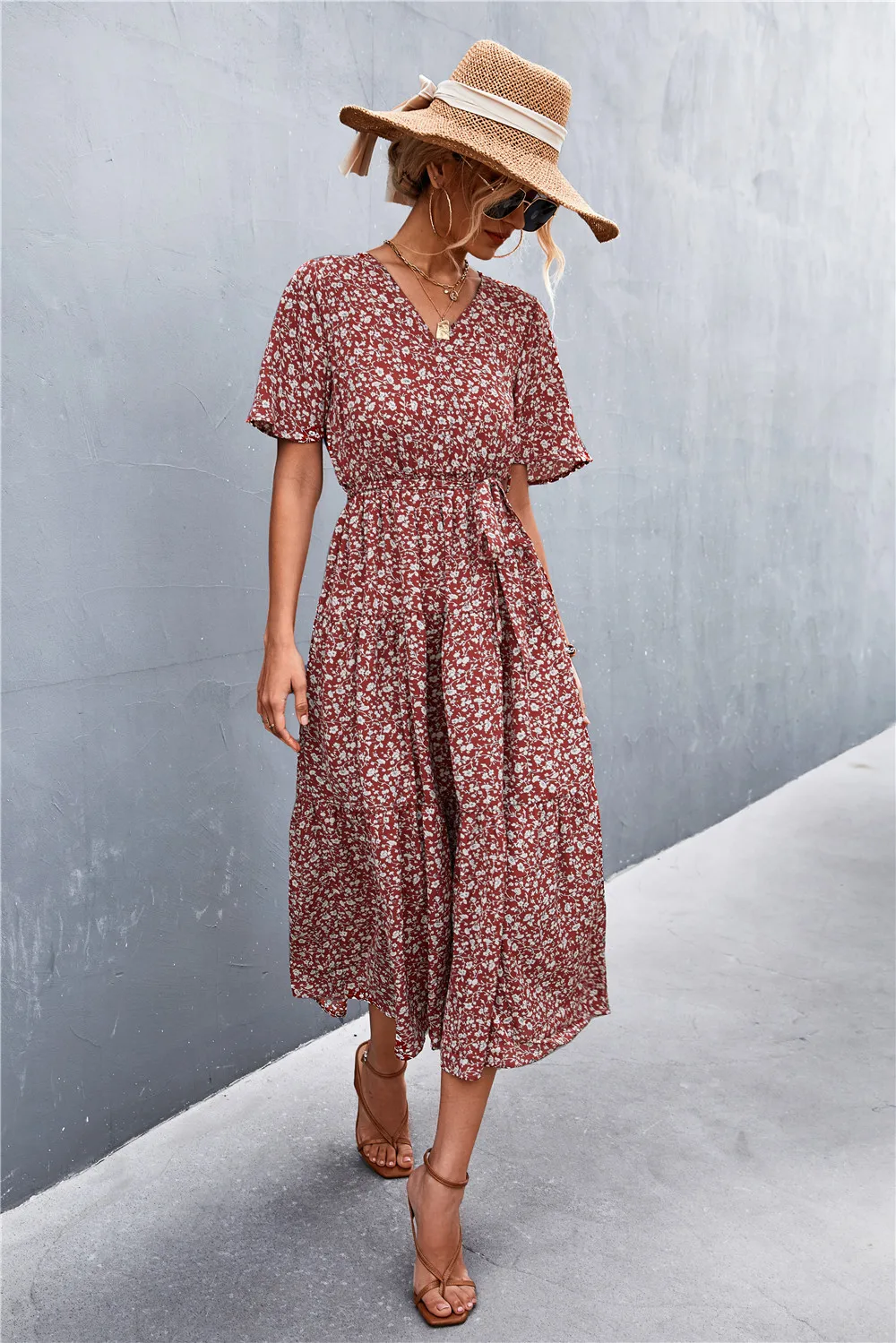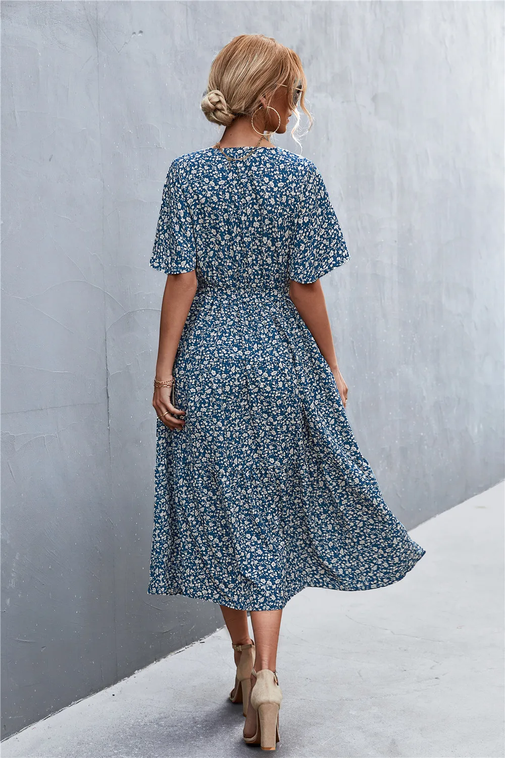 2022 Summer New Women V-neck Cross Polka Dot Floral Dress Strappy Long Dress Fashion Boho Pullover High Waist Maxi Dresses Robe