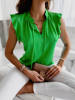 2022 Summer Ruffled Lace-up V-neck Women's Shirt Office Lady Slim Ruffled Paneled Short Sleeves Pullover Blouse Femme Blusas