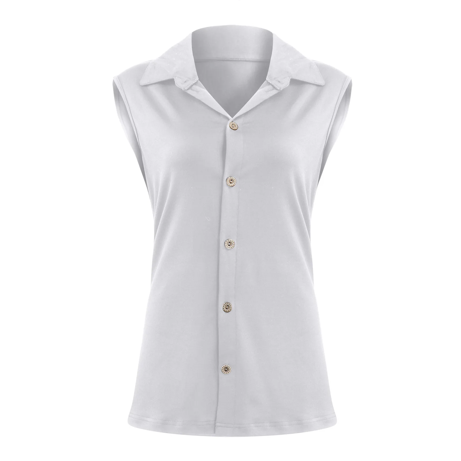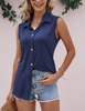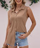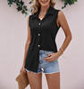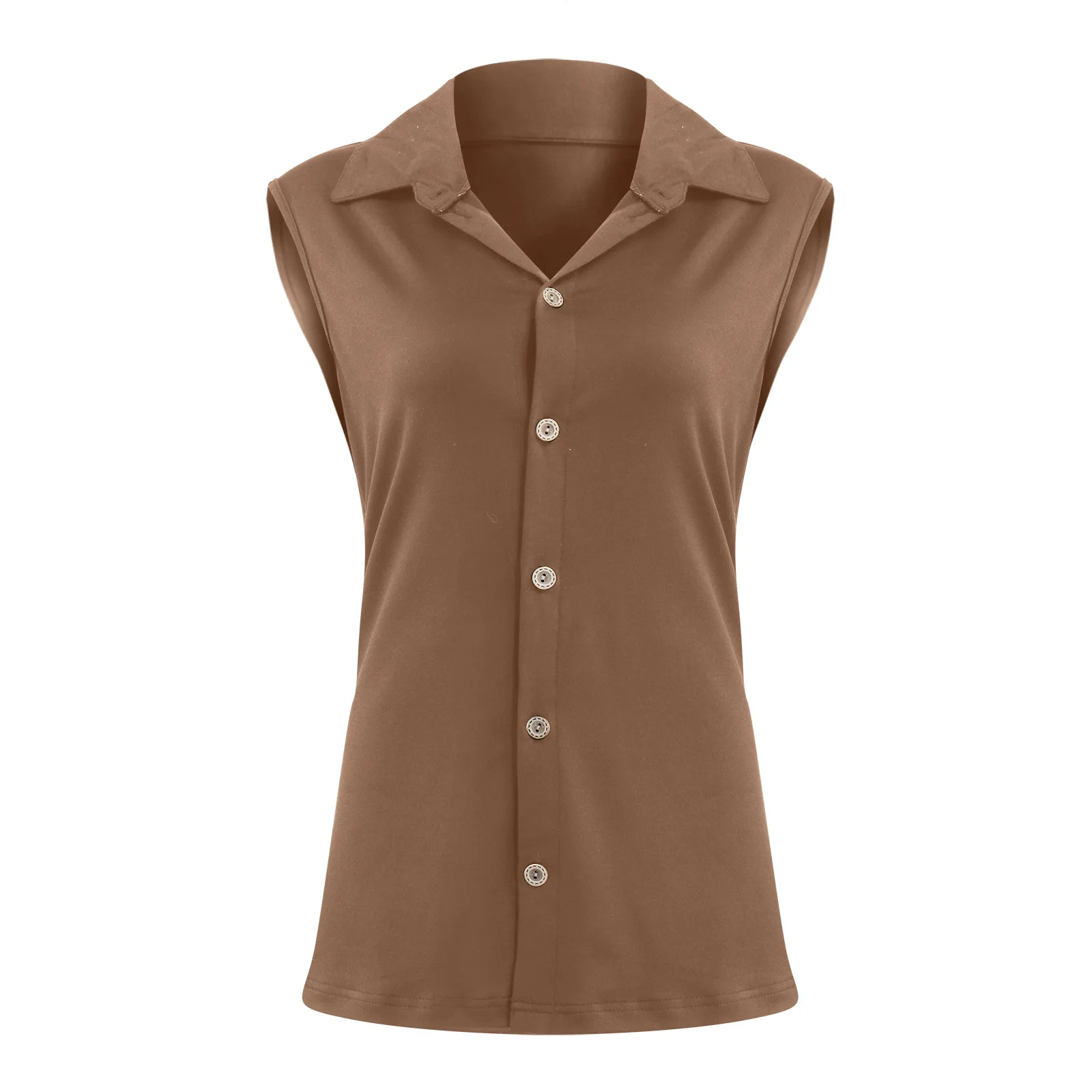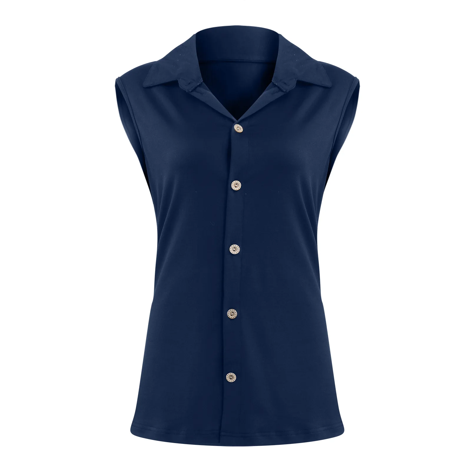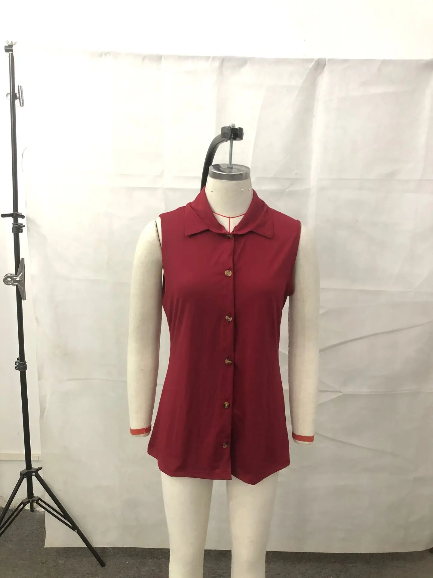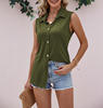 2022 Summer Sleeveless Shirts Casual Stand Collar Single Breasted Loose Cardigan Tops Women Solid Color Blouse Femme Blusas