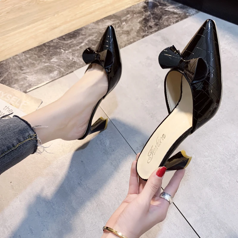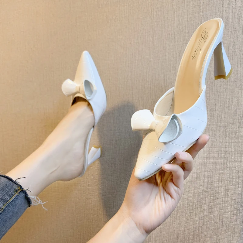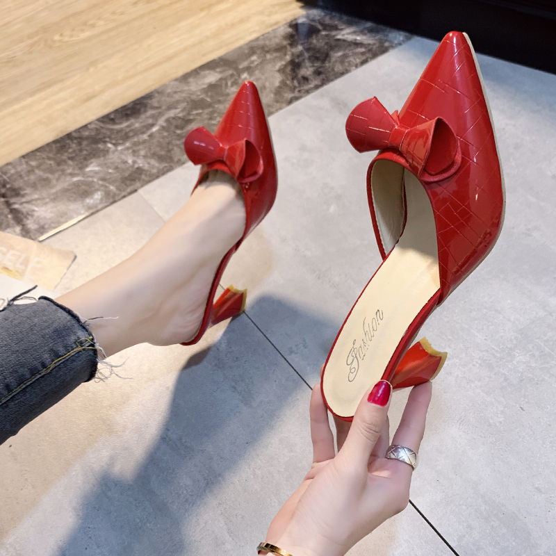 2022 Summer Women Slipper Fashion Candy Colors Chain Ladies Slip on Mules Shoes Thin Low Heel Pointed Toe Slides Flip