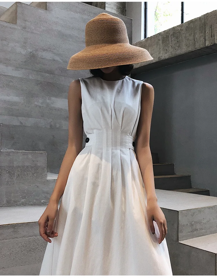 2022 Summer Women Solid White Black Fashion Elegant Casual Party Dress O Neck Sleeveless Tank Sundress Female Vestido