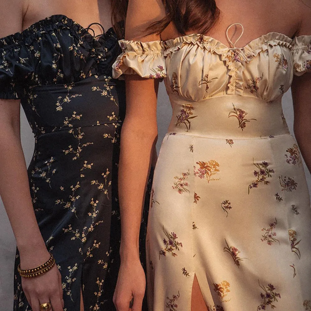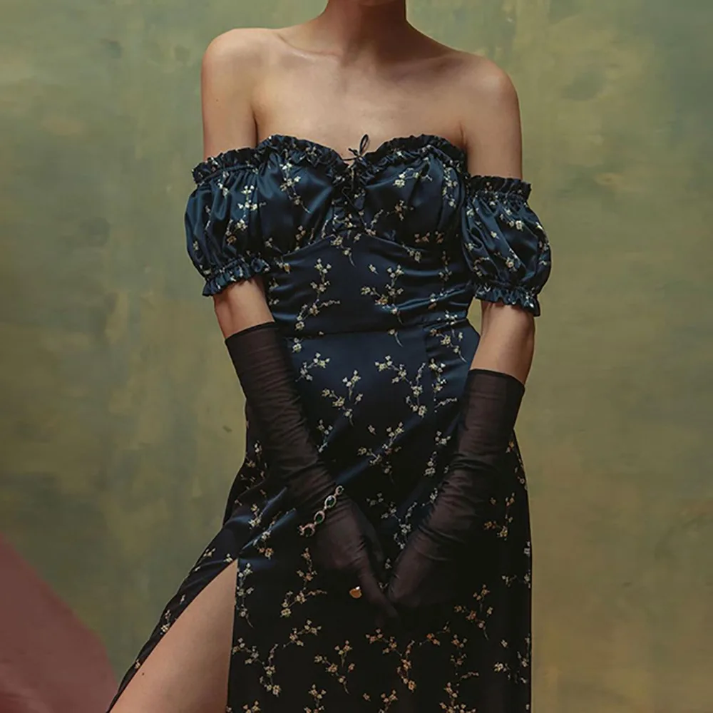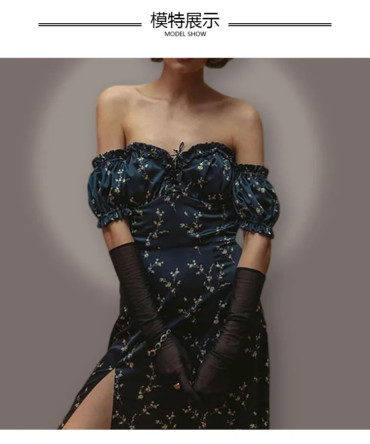 2022 Summer Women's New Off The Shoulder High Waist Split Agaric Fringed Floral Dress Ladies Elegant Short Sleeve Dress Femme
