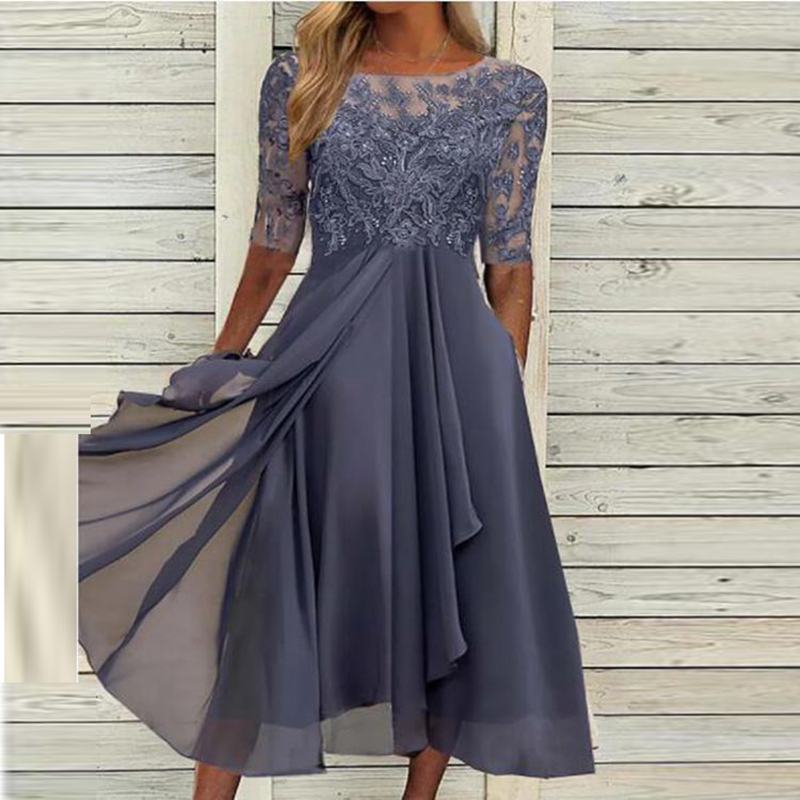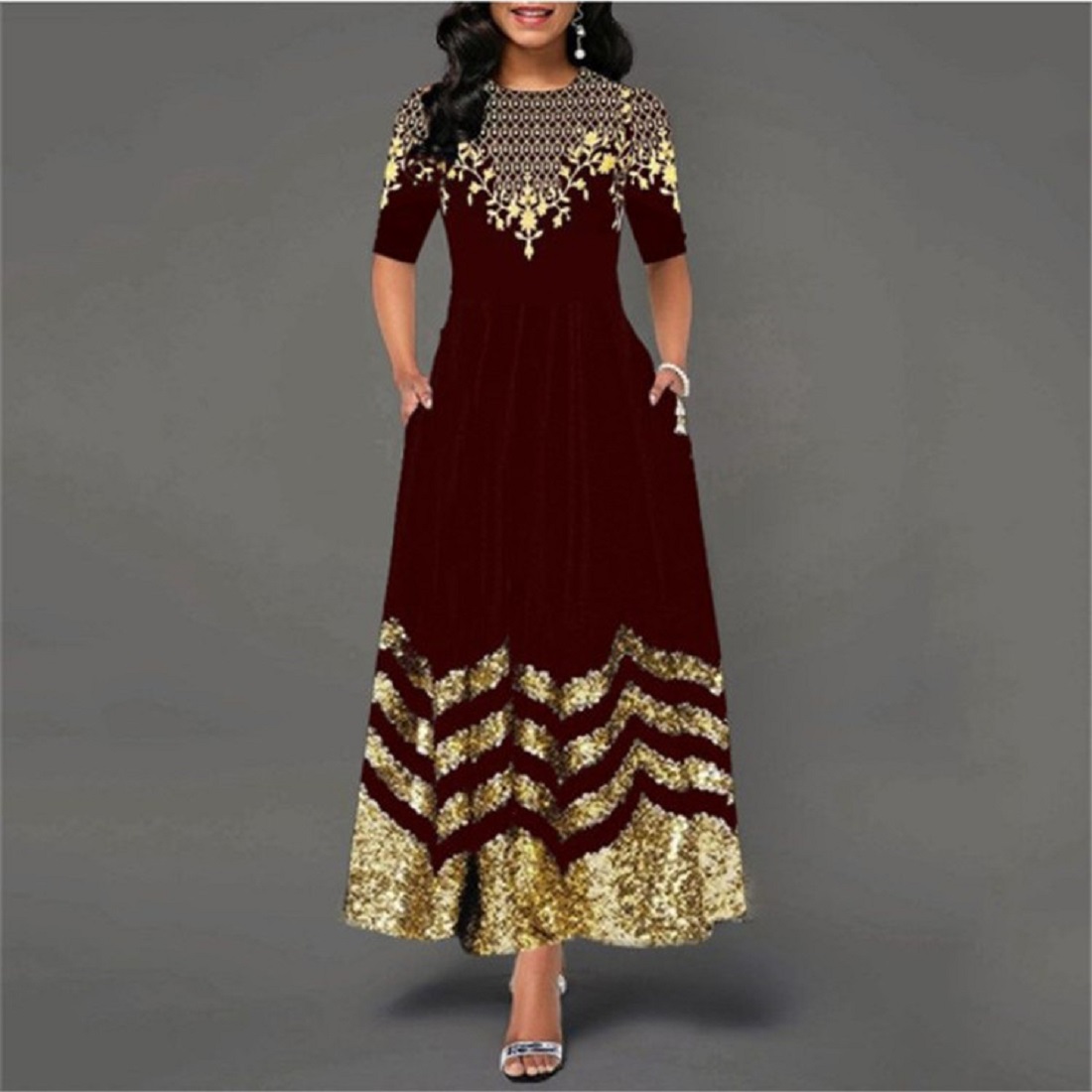 2022 Summer Women's Wavy Neck Print Short-sleeve Dress Elegant Casual Floral Theme Printed Female Fashionable Knee Length Dress