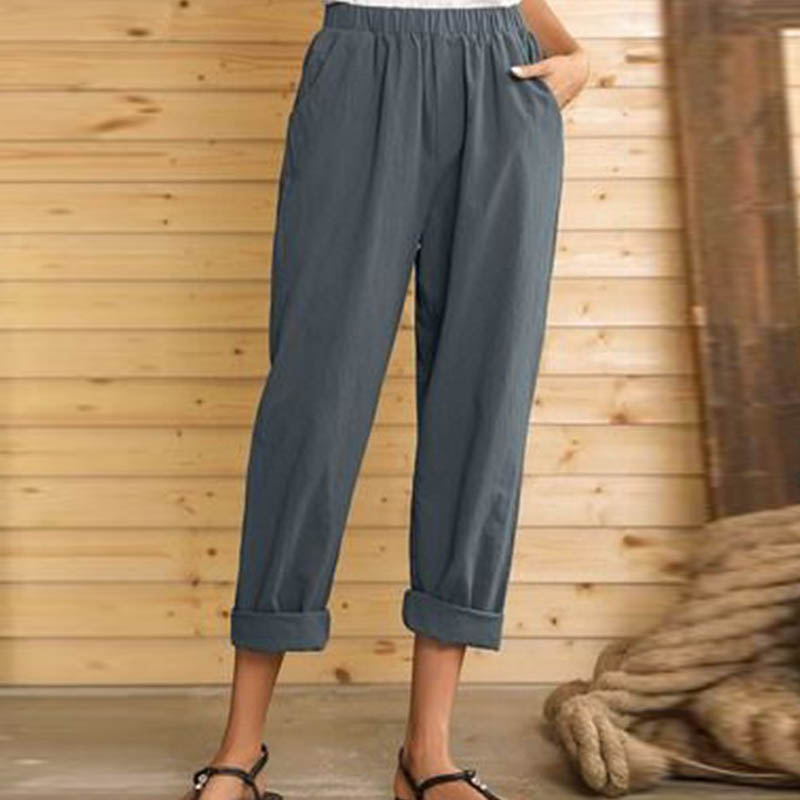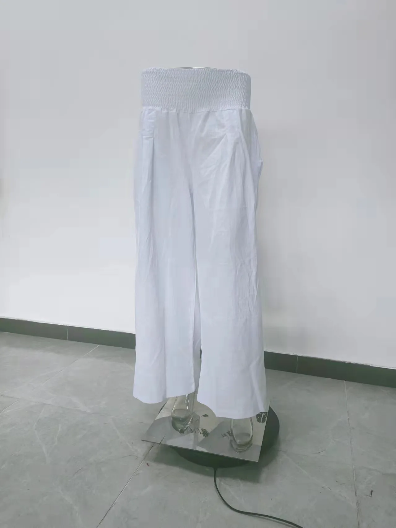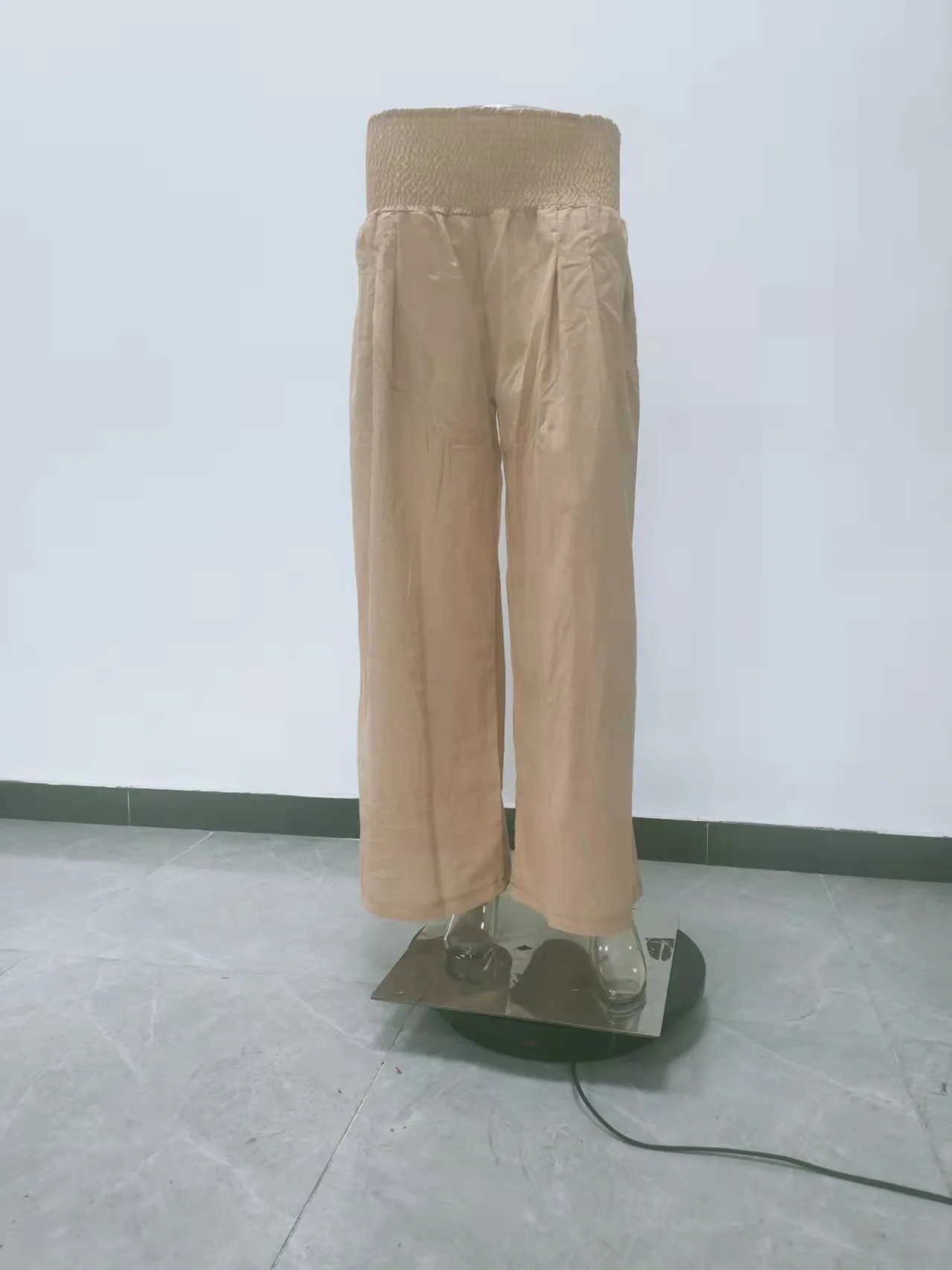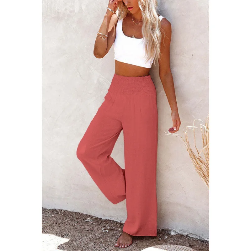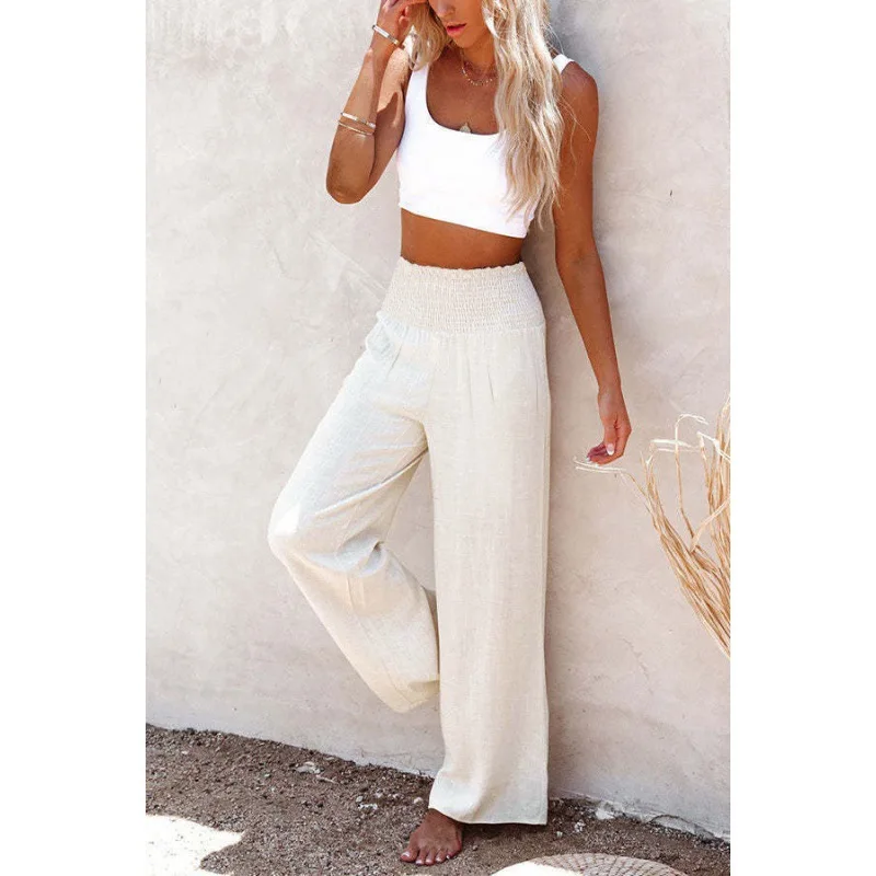 2022 Summer Women's Wide Leg Pants Vintage Cotton Linen Fashion Trousers Casual Elastic Waist Solid Solid Color Trousers 3XL