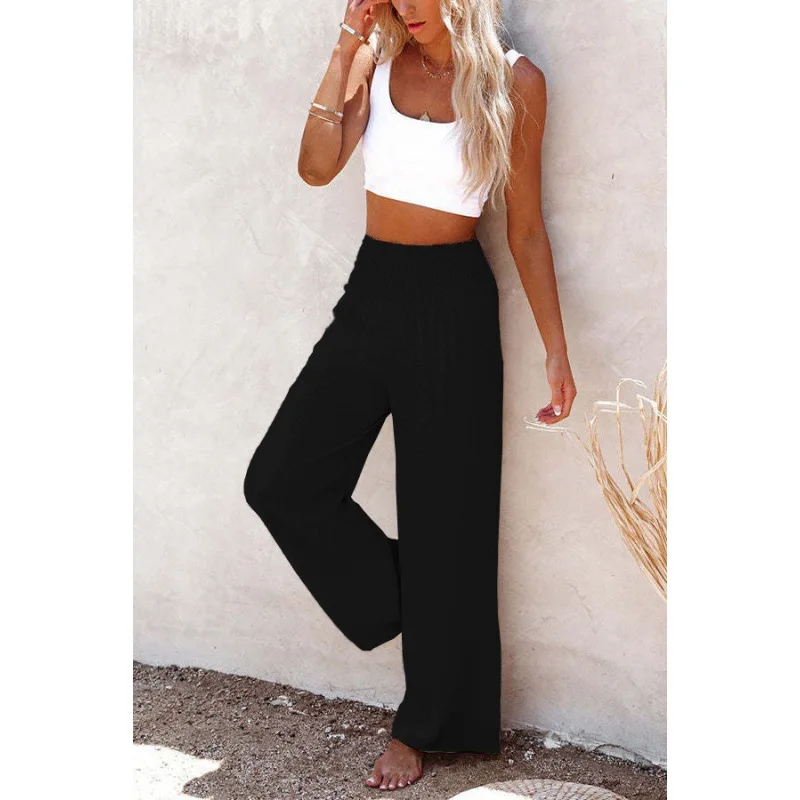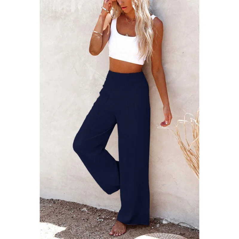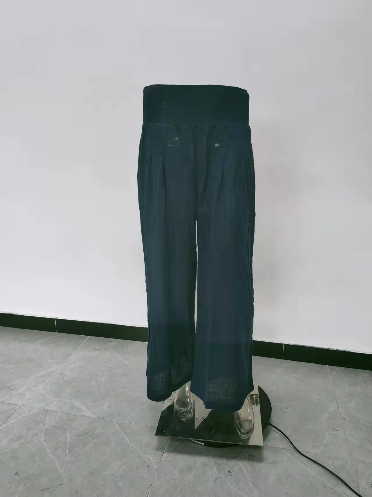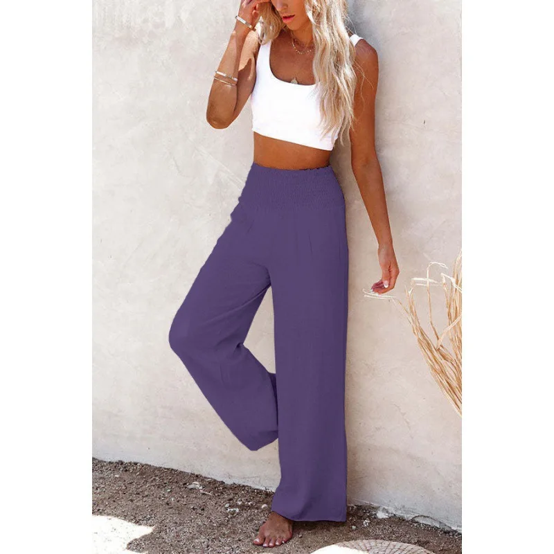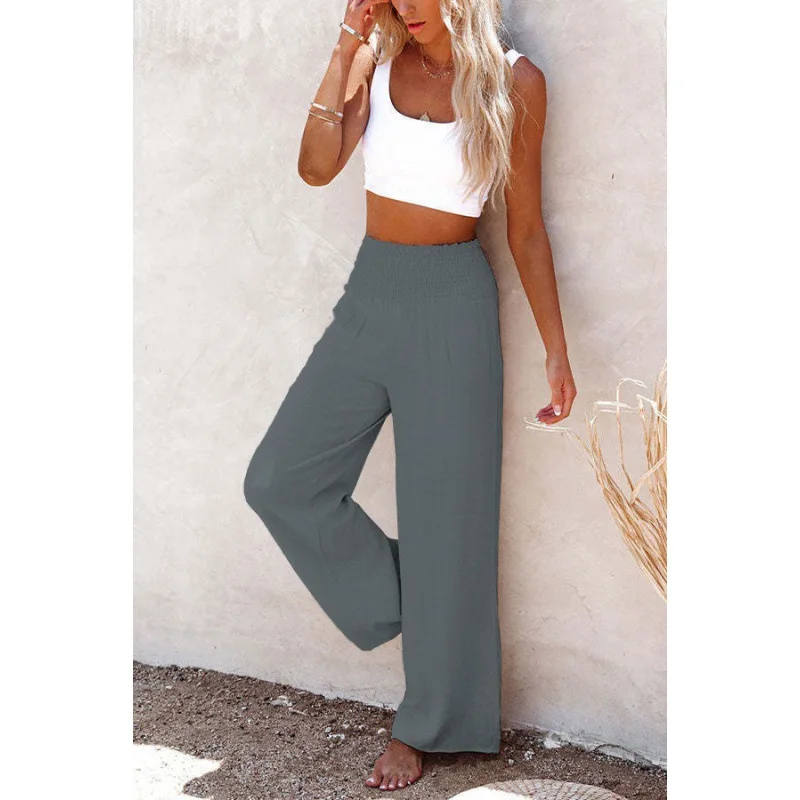 2022 Summer Women's Wide Leg Pants Vintage Cotton Linen Fashion Trousers Casual Elastic Waist Solid Solid Color Trousers 3XL