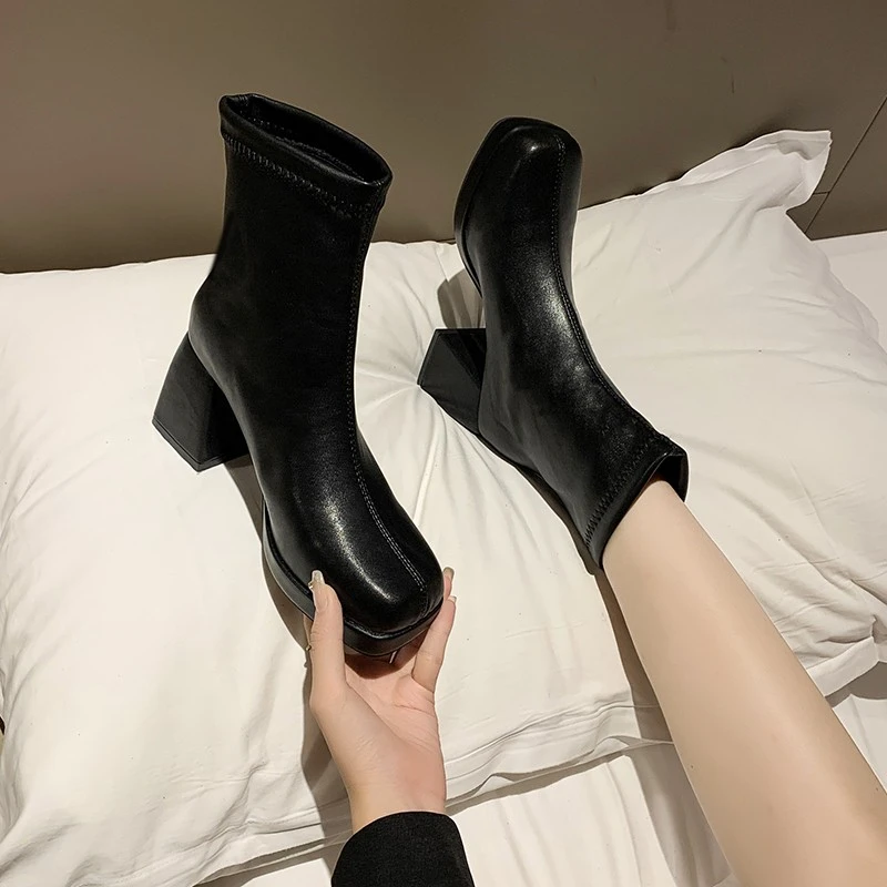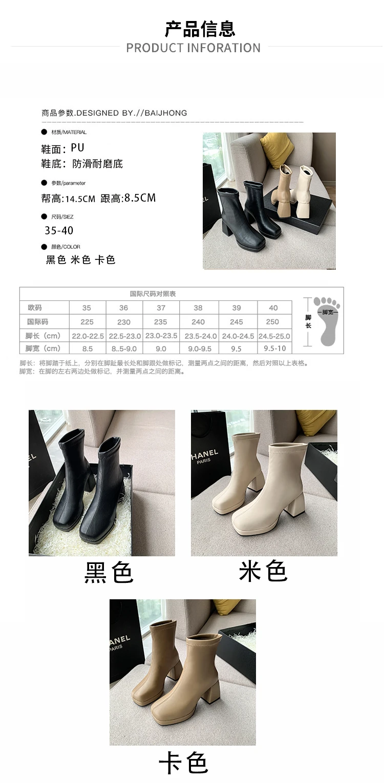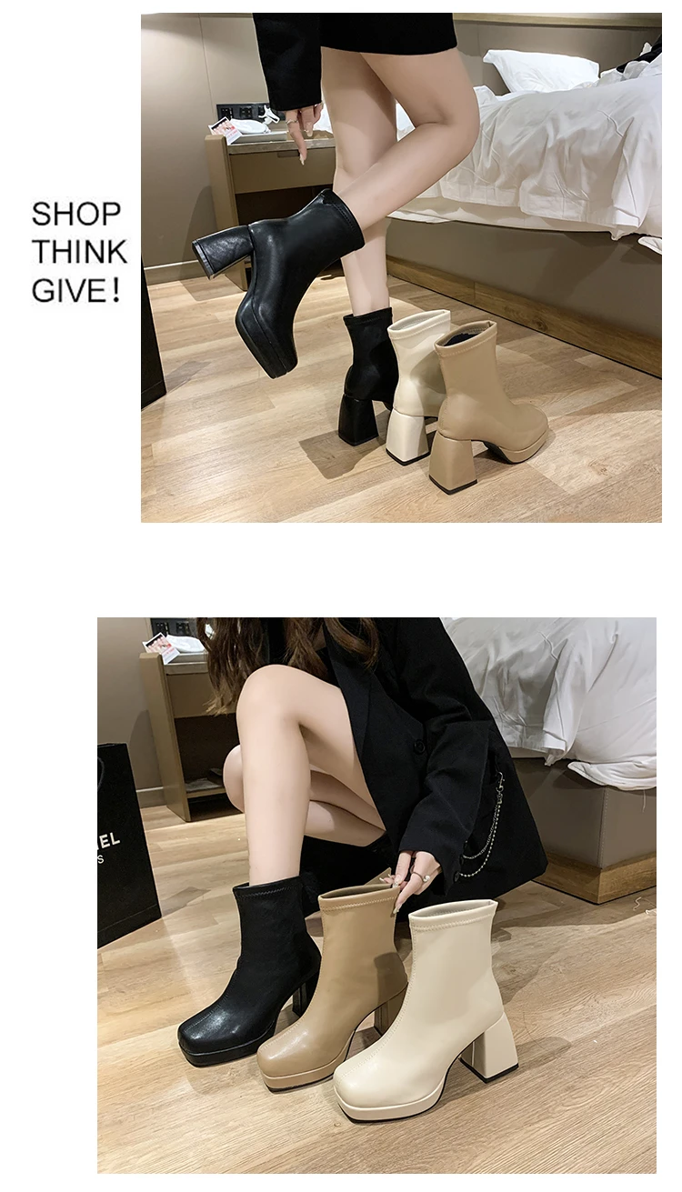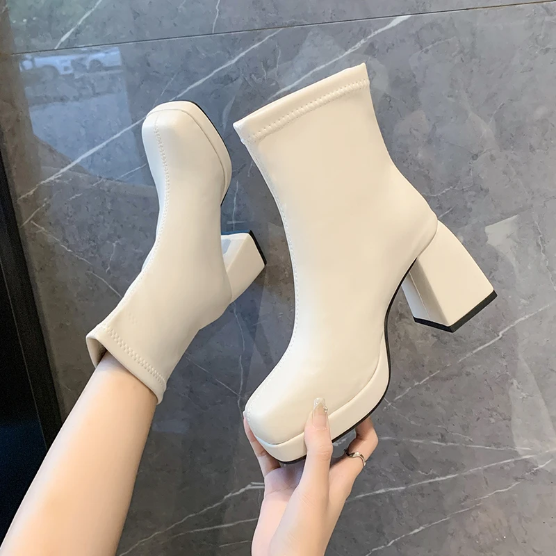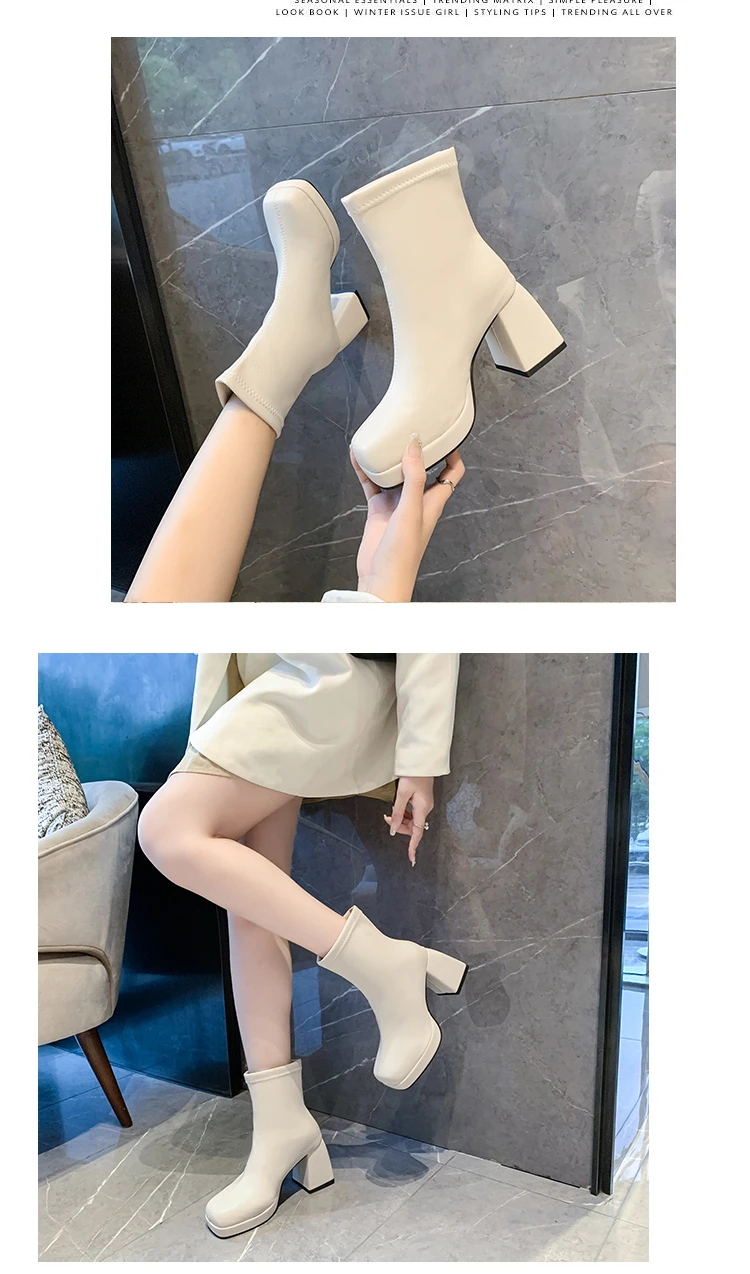 2022 Winter New Women Chunky High Heel Ankle Boots Warm Fur Platform Boots Western Cowboy Boots White Motorcycle Boots Plus Size