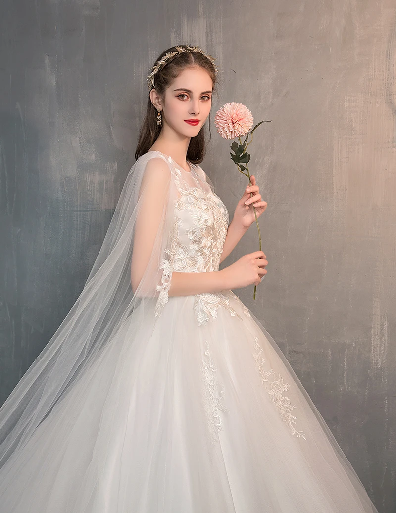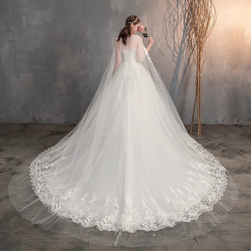 2023 Chinese Wedding Dress With Long Cap Lace Wedding Gown With Long Train Embroidery Princess Plus Szie Bridal Dress