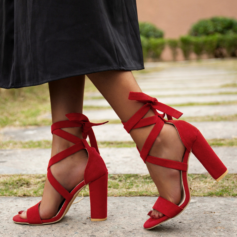 2023 Elegant Women Pumps High Heels Open Toe Sexy Women Sandals Soft Women Shoes for Lady High Heel Shoes Red Black Size 35-43