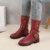 2023 Mid-Calf Boots Plus Size 43 Women Buckle Goth Boots Female Low Square Heel Zipper Leather Flat Shoes Red Black Grey Boots