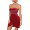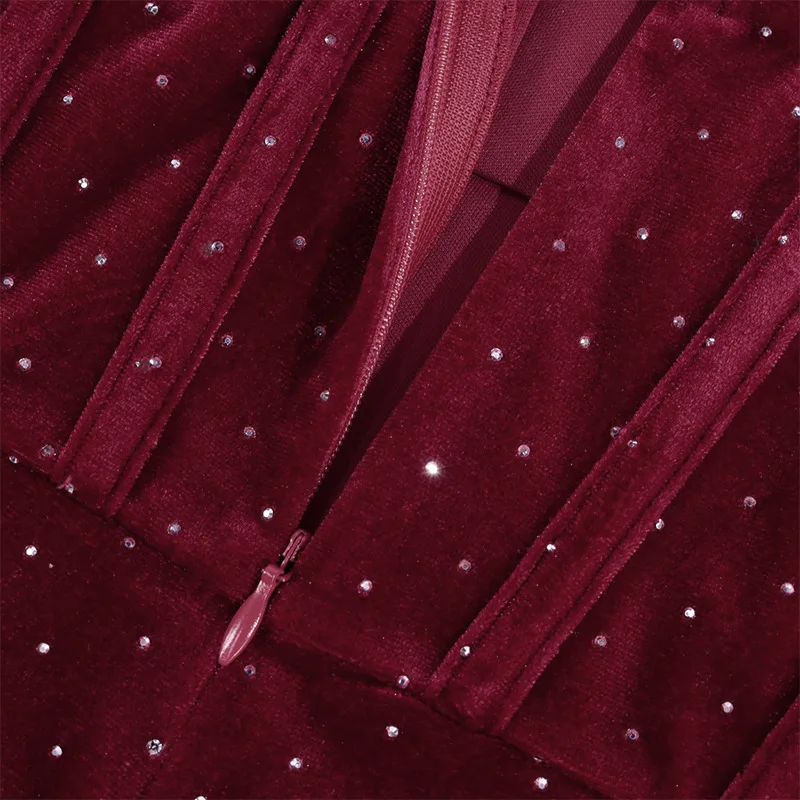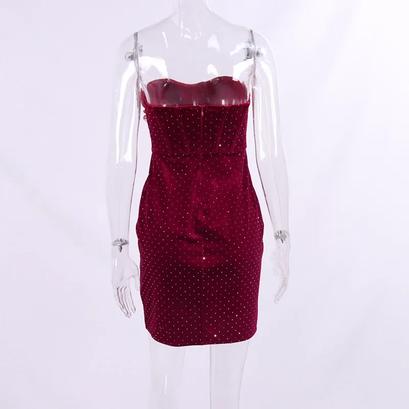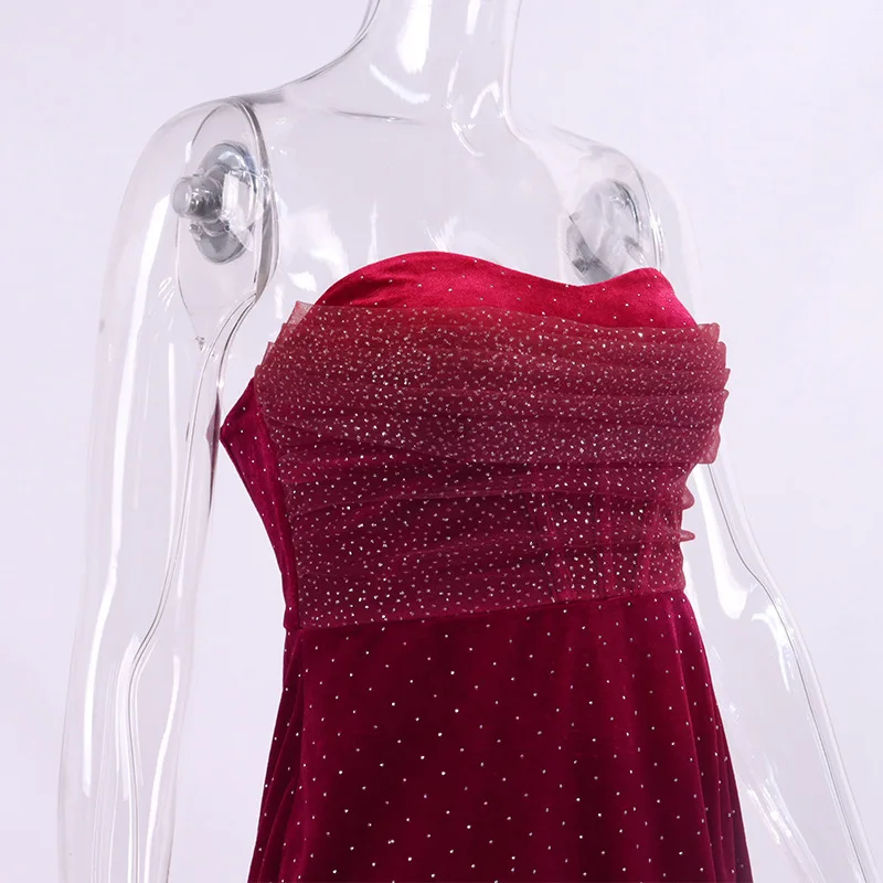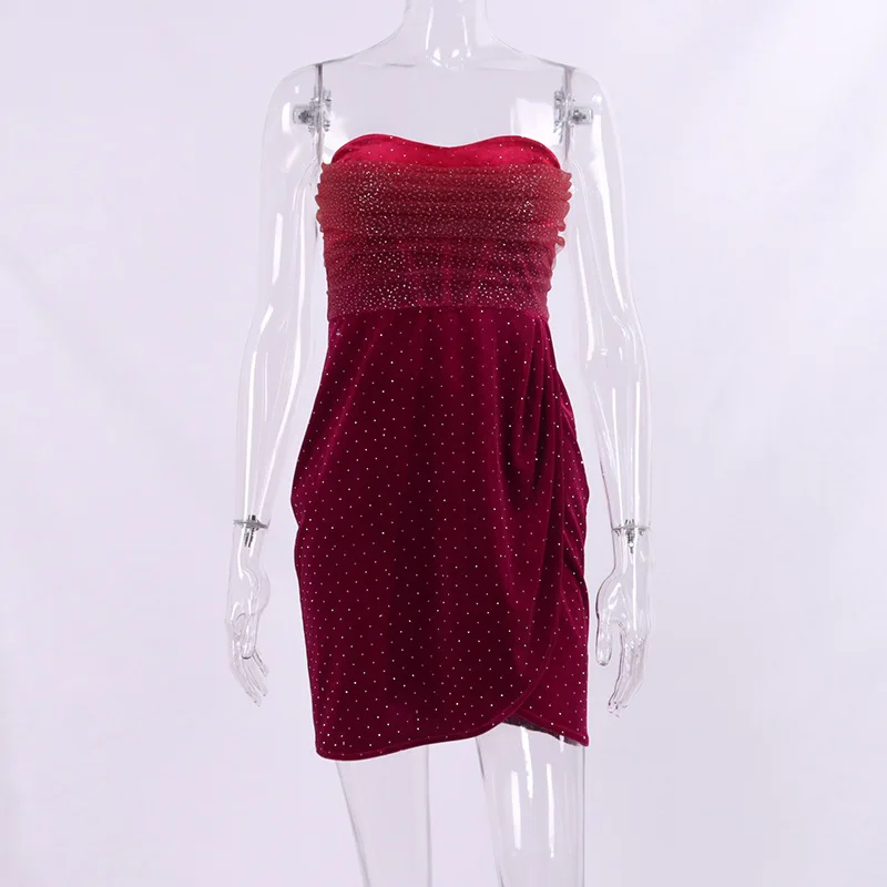 2023 New Fashion Sexy Velvet Dress Women's Sleeveless Tube Backless Off Shoulder Mesh Pleated Rhinestone Decor Mini Dresses