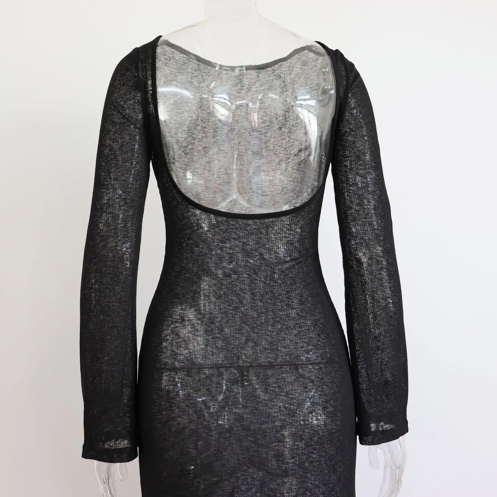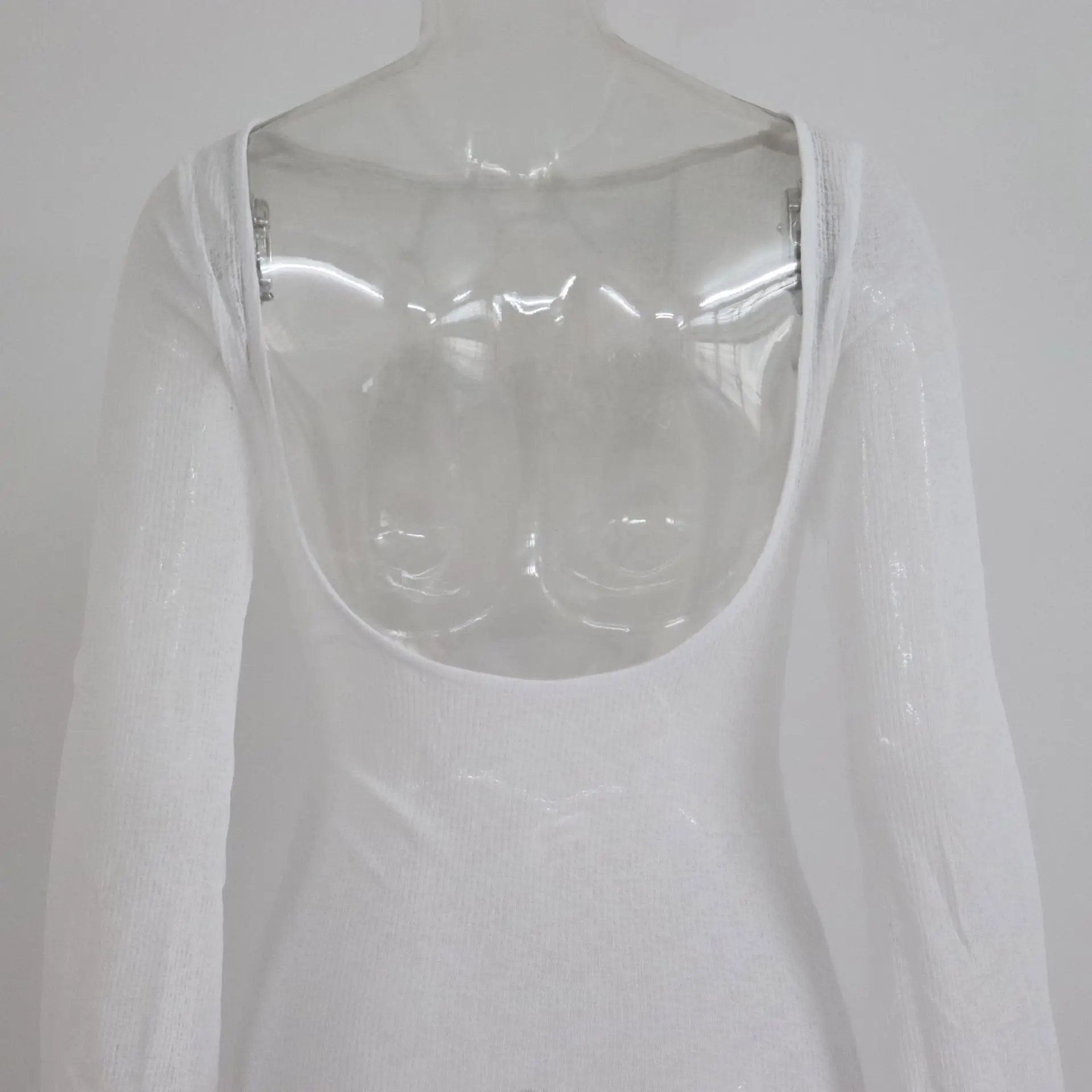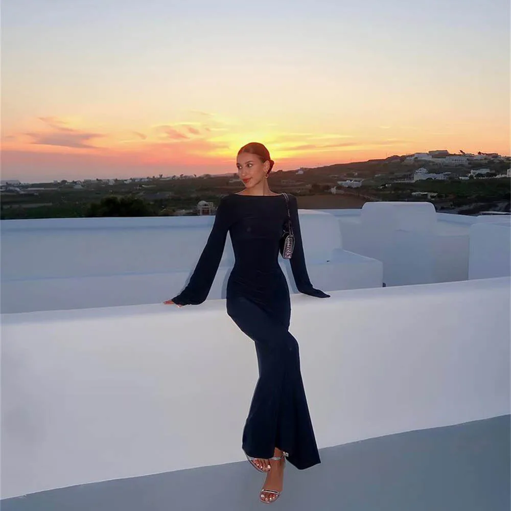 2023 New Sexy Ladies Slim Fit Long Sleeve Round Neck Backless Wrapped Dress Women Casual Solid Color Slim Fit Beach Long Dress
