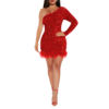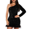Solid color, feather hem, one shoulder long sleeves, length above the knee, women’s sequin dress, casual party dress, slim fit design can perfectly show the body curve, making you more charming.