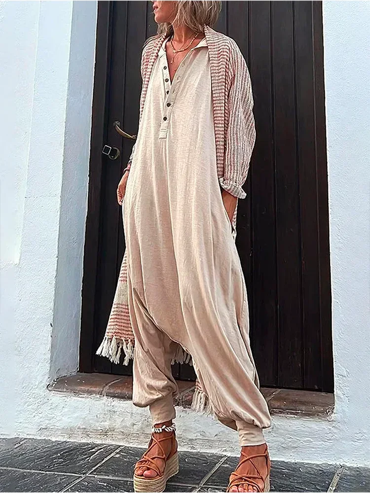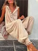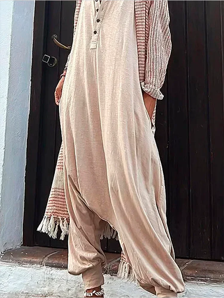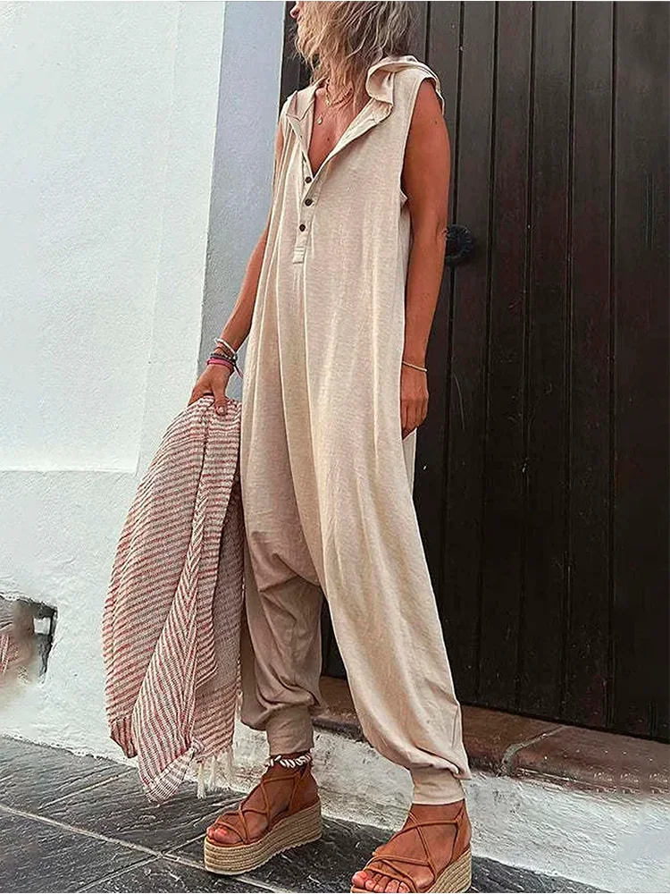 2023 Summer Fashion Women’s Jumpsuit Casual Henry Neck Sleeveless Hooded Harlem Pants Women’s Jumpsuit